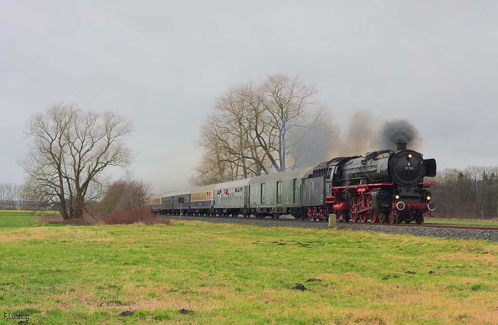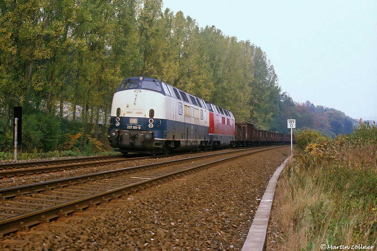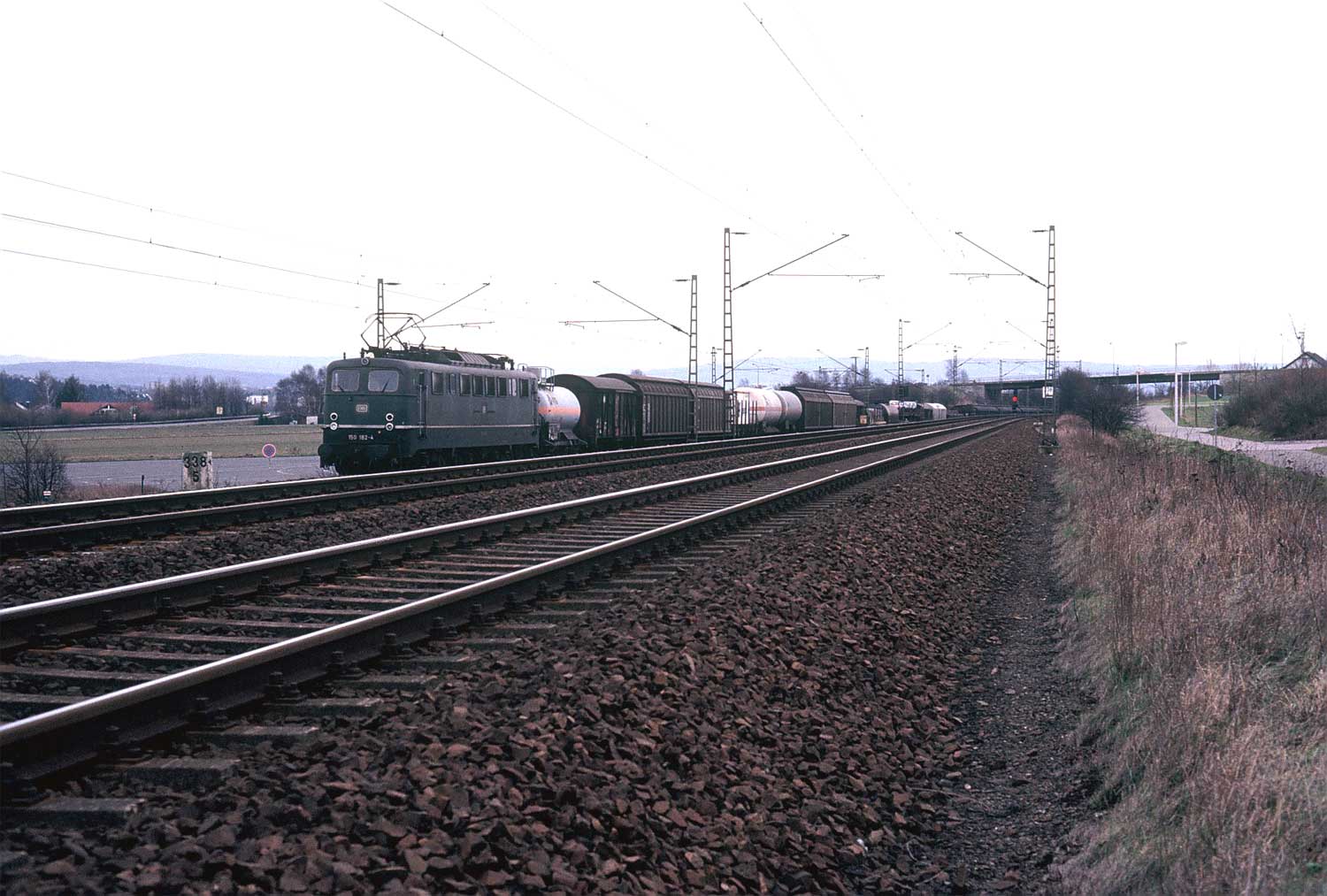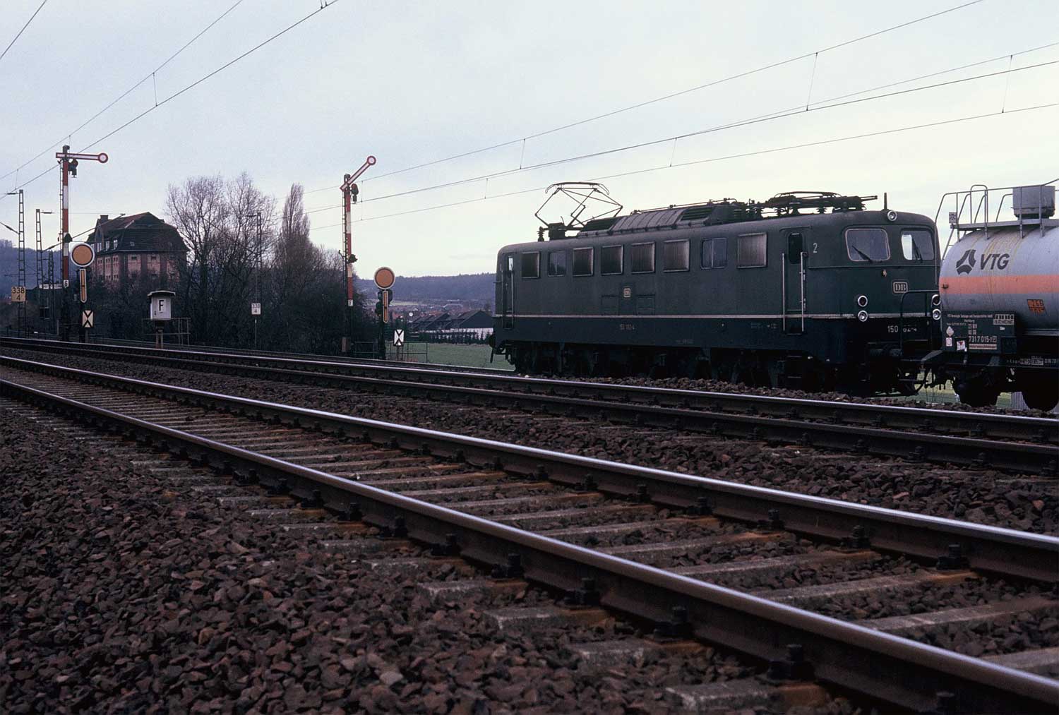 Rechts ein Güterzug mit einer 151