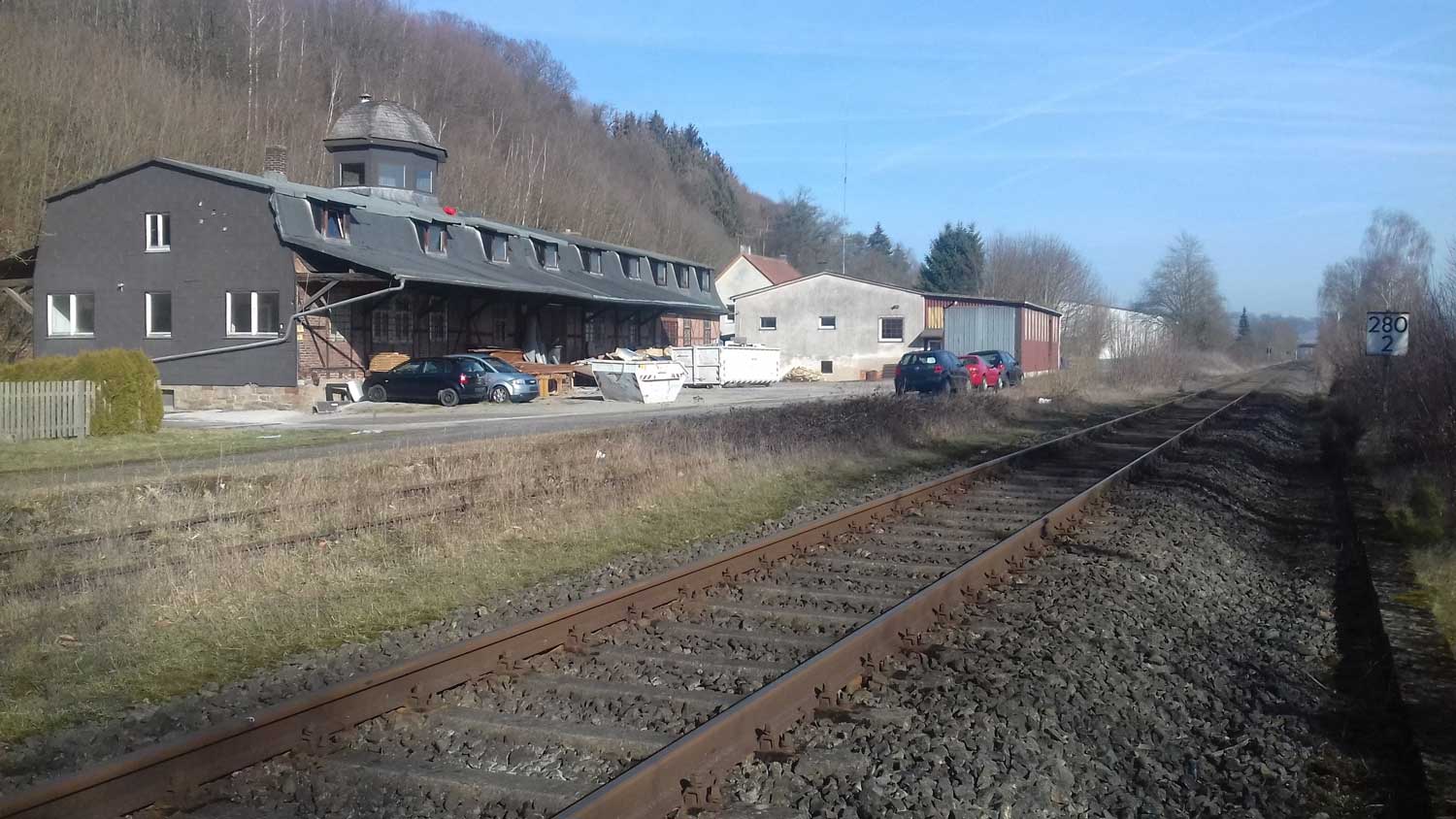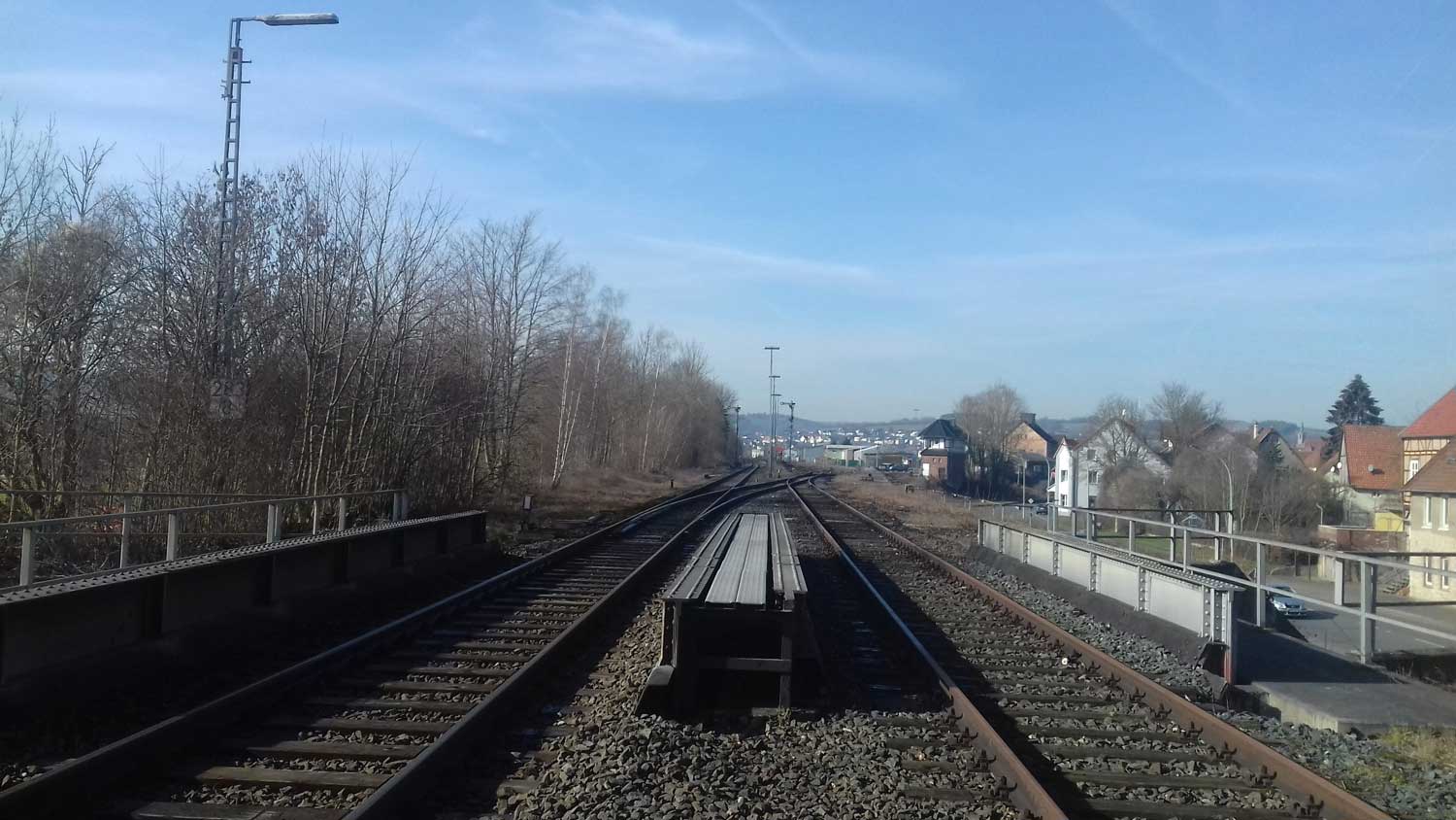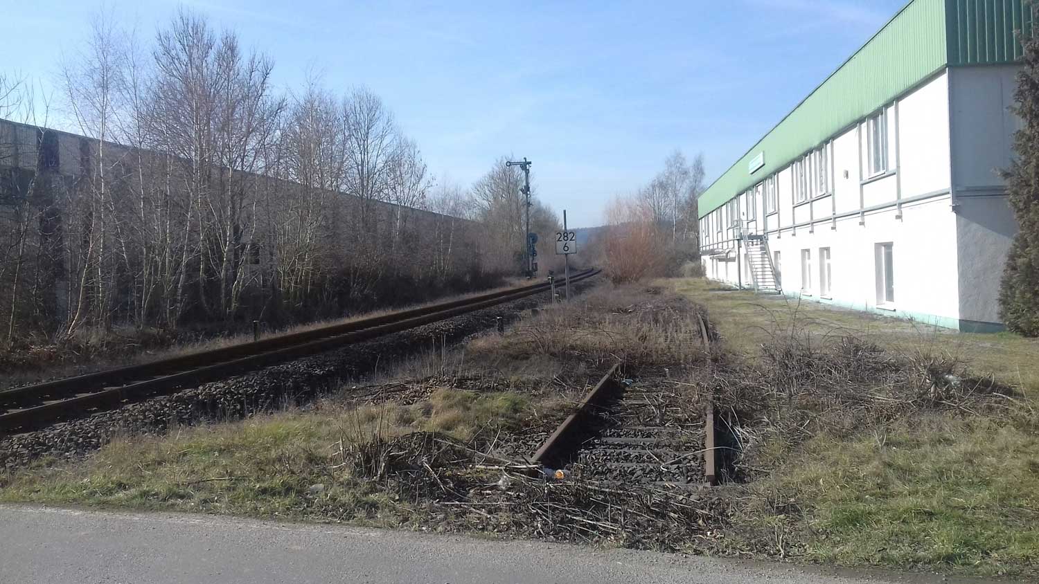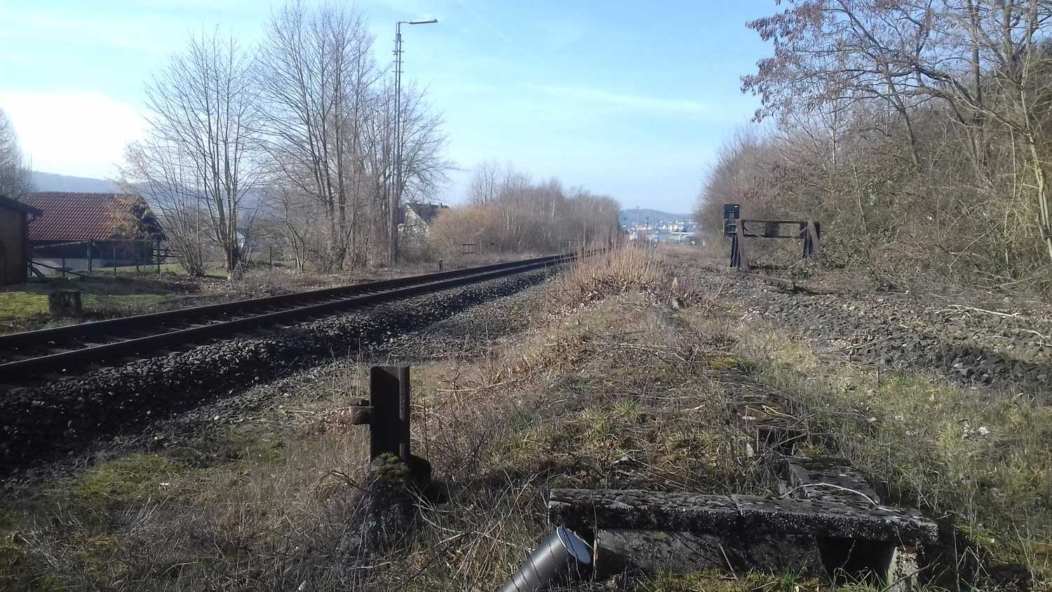 Rechts die Gleise des Streckenastes