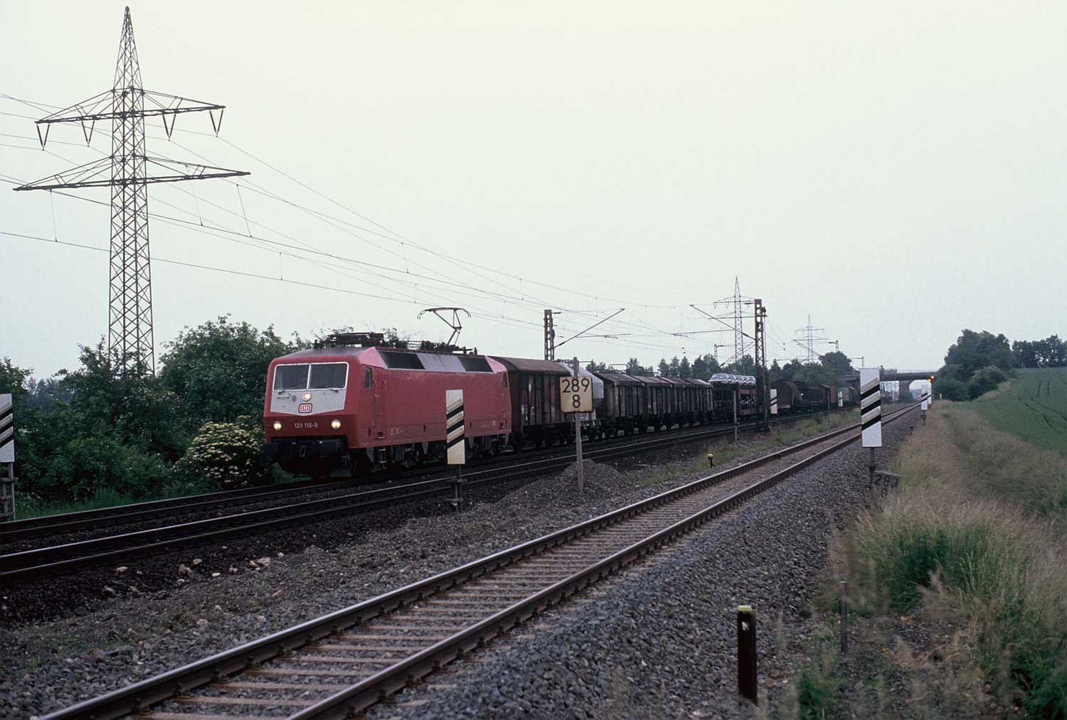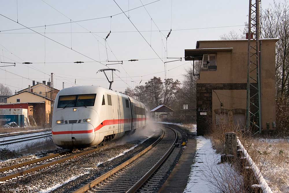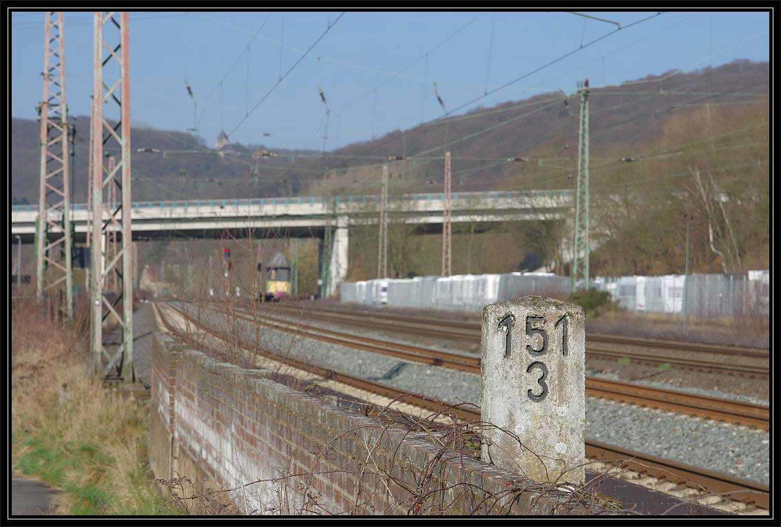 Im Vordergrund: km 1,6 (Stein) der Strecke Kassel Hbf - Frankfurt Hbf