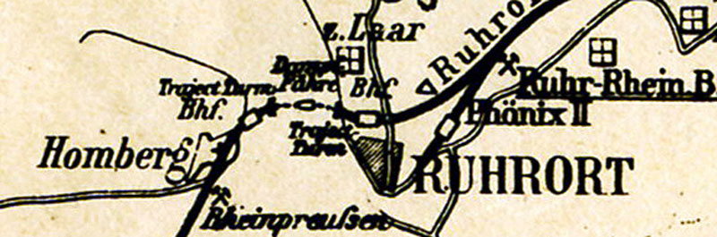 1) Die ursprüngliche Kilometrierung läuft zwischen Krefeld und Duisburg-Ruhrort über die Trajektverbindung Homberg Ruhrort. Obgleich dieser Trajekt schon bald nach dem Bau der Rheinbrücke Friemersheim (Rheinhausen) - Wanheimerort (Duisburg-Hochfeld Süd) (Eröffnung 23.12.1873) eingestellt wurde, besteht diese Kilometrierung der Strecke noch heute. Neu kilometriert wurden nur die Teilstrecken Krefeld-Oppum - Trompet - Homberg (Ndrh) und Duisburg-Ruhrort – Duisburg-Meiderich Süd, ab dort (km 110,8) läuft die alte Kilometerzählung noch heute weiter.