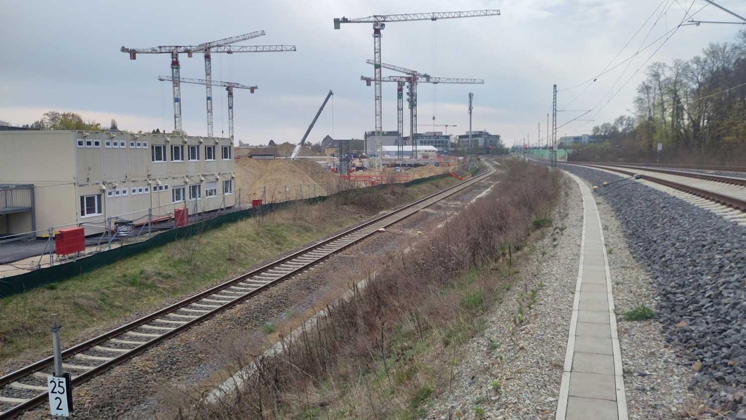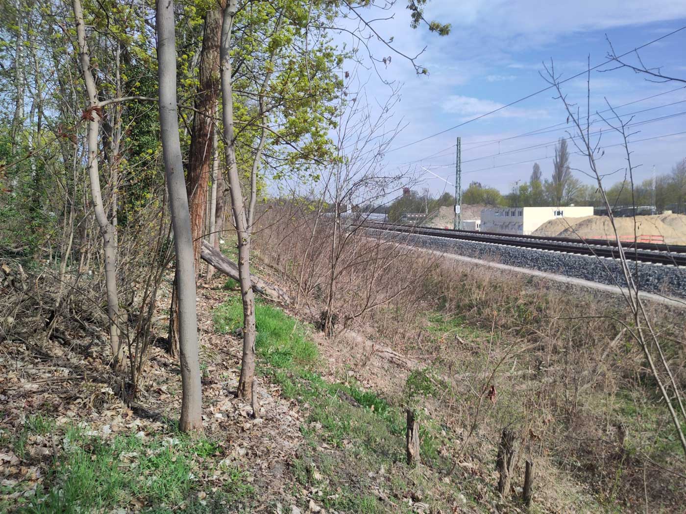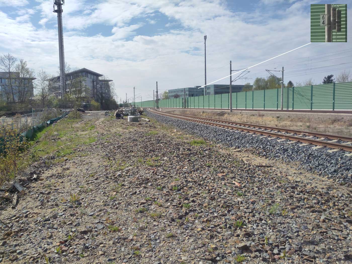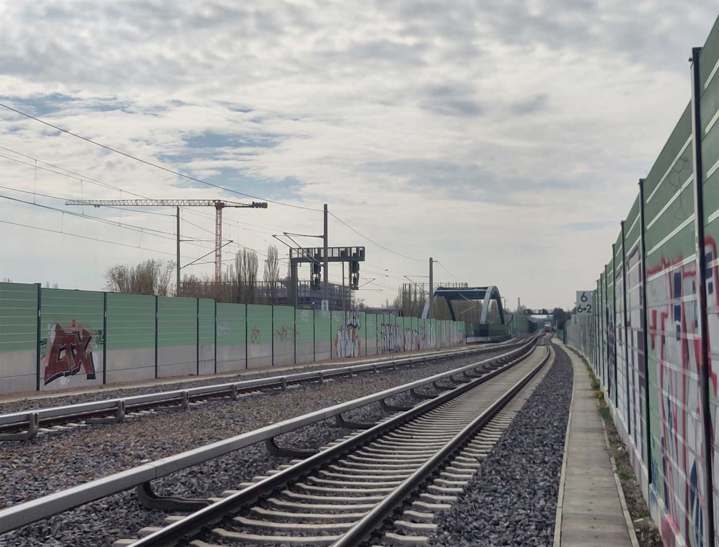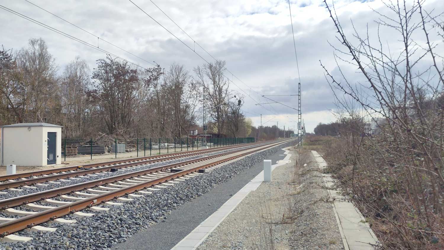 Im Vordergrund BÜ km 0,6 der Strecke