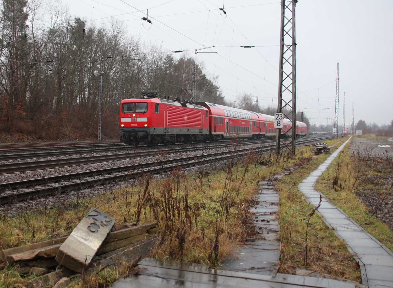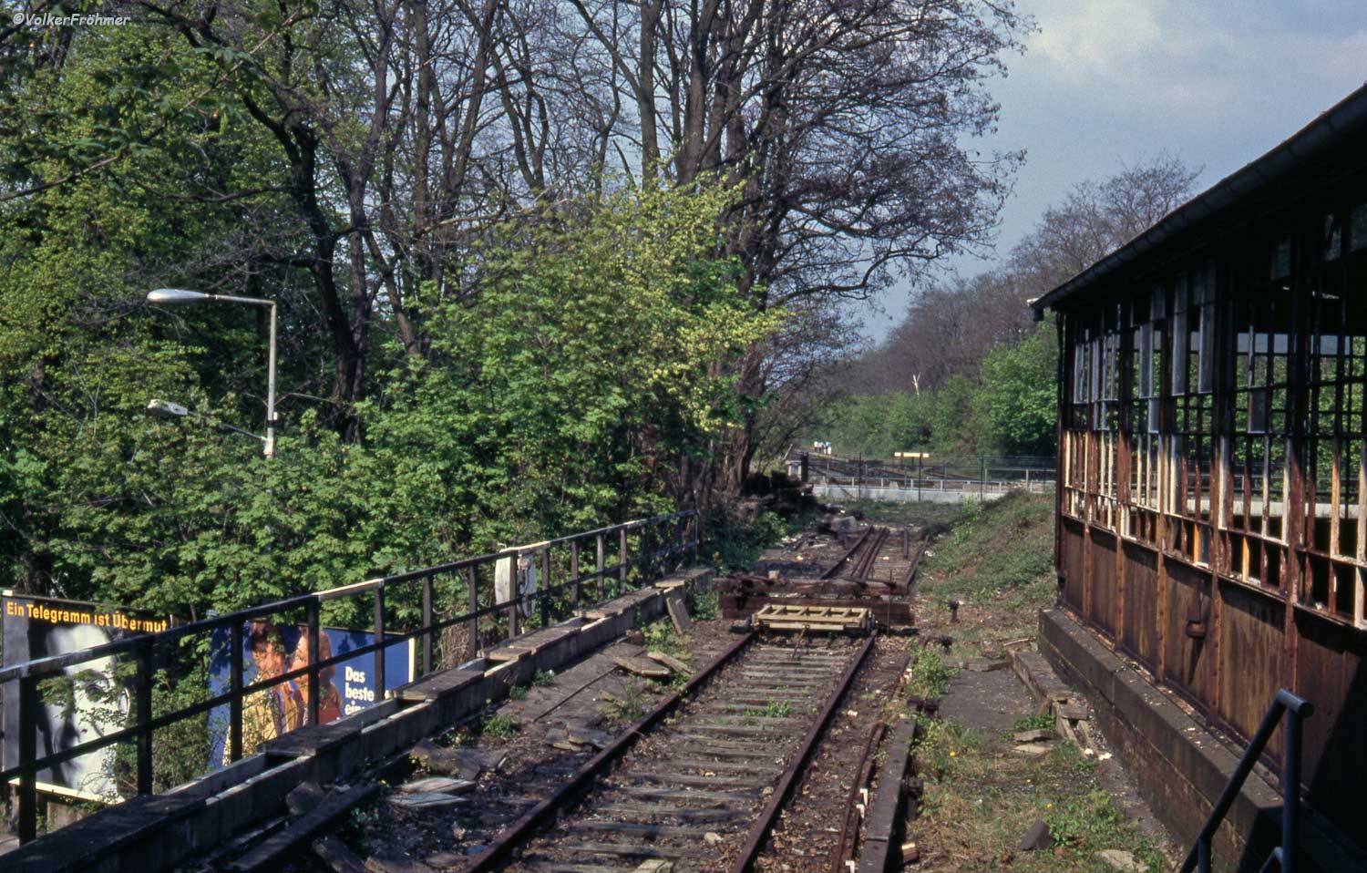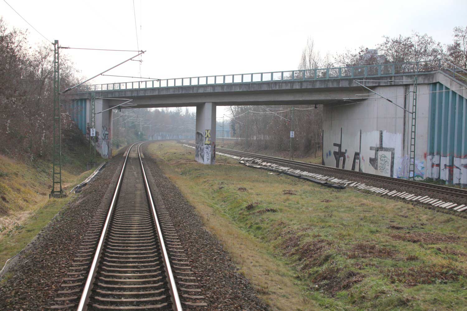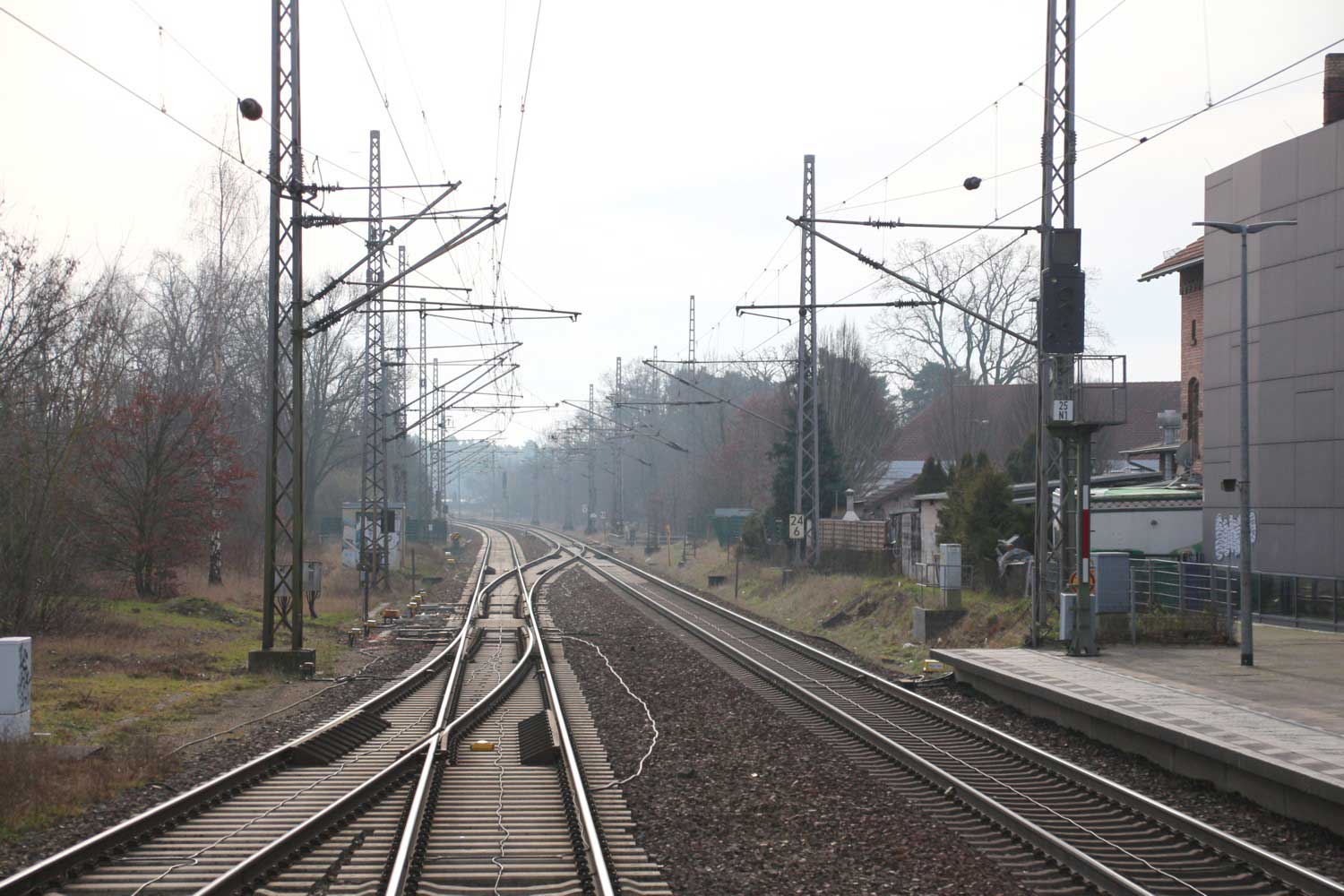 Links die Strecke (Gleis ohne Oberleitung)