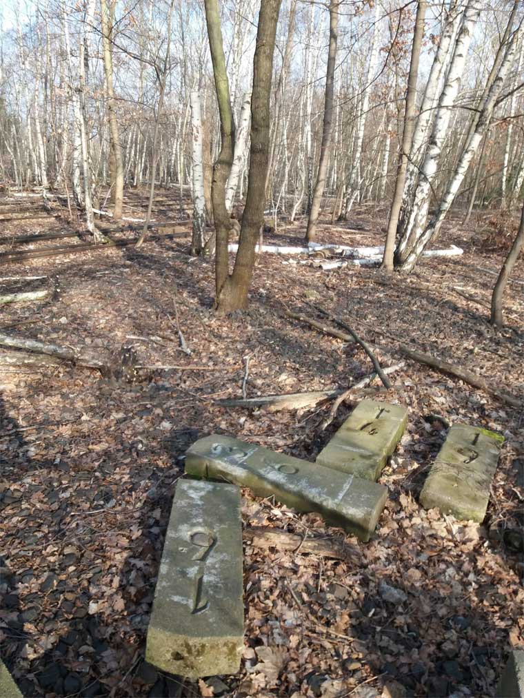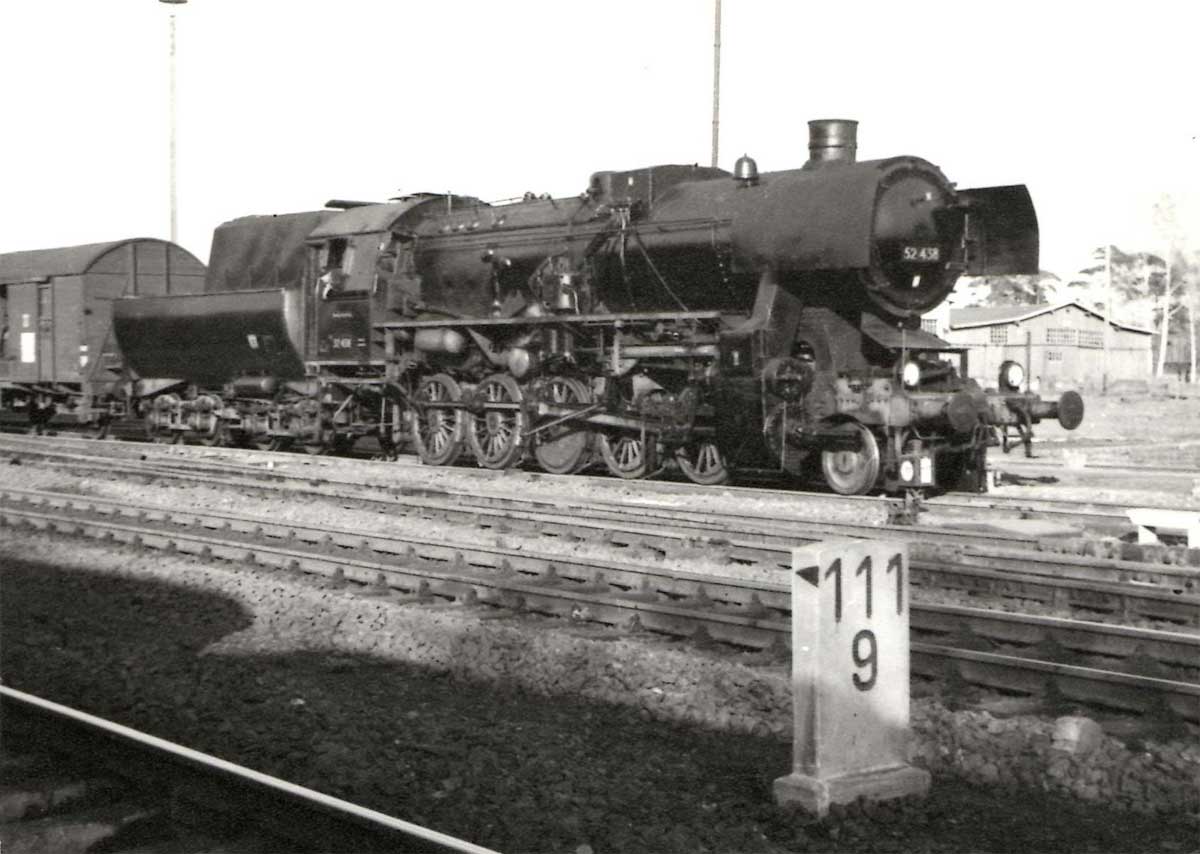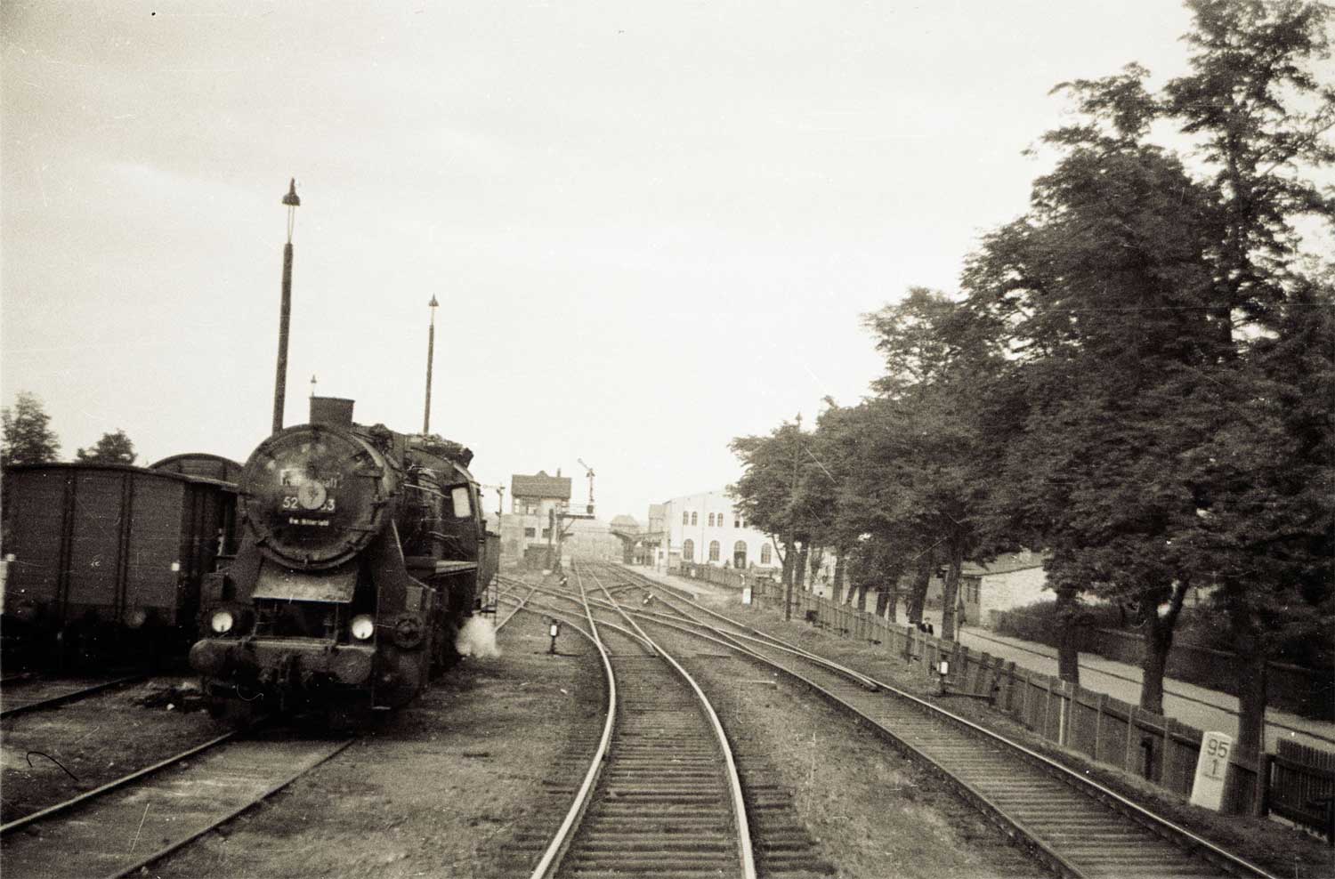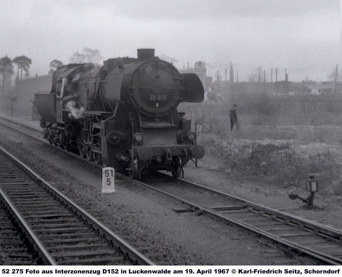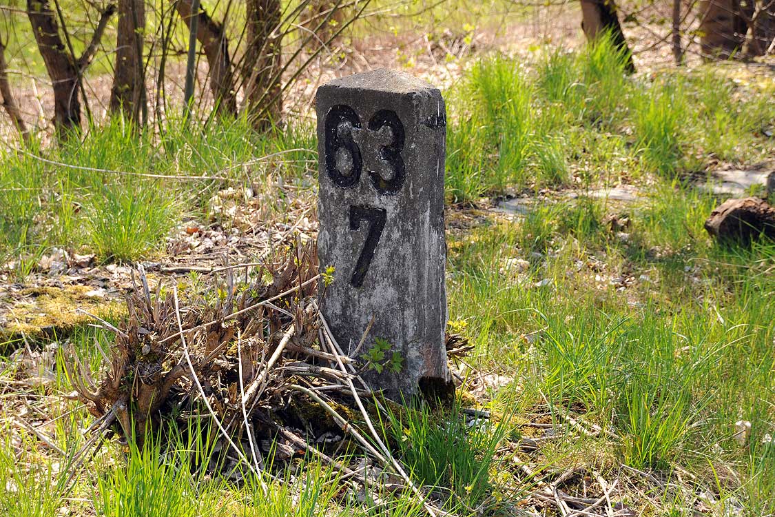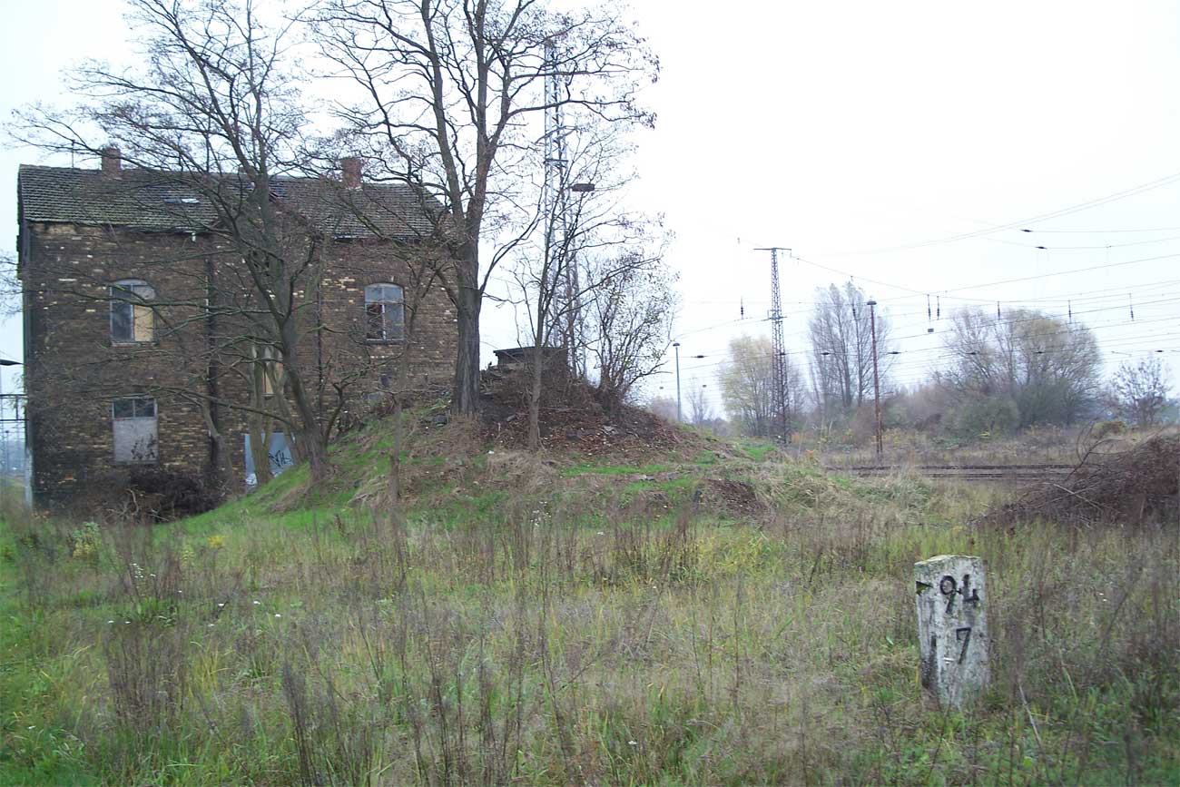km 62,82 der abgehenden StreckeBerlin Anhalter Bf -0,07 - Jüterbog 62,82 - Wittenberg (Provinz Sachsen) 94,76 - Bitterfeld 131,64 - Halle (Saale) Hbf 161,64 (1937/1943) mit weiterlaufender Kilometrierung (Streckenverzweigung mit gemeinsamen Nullpunkt Berlin Anhalter Bf)