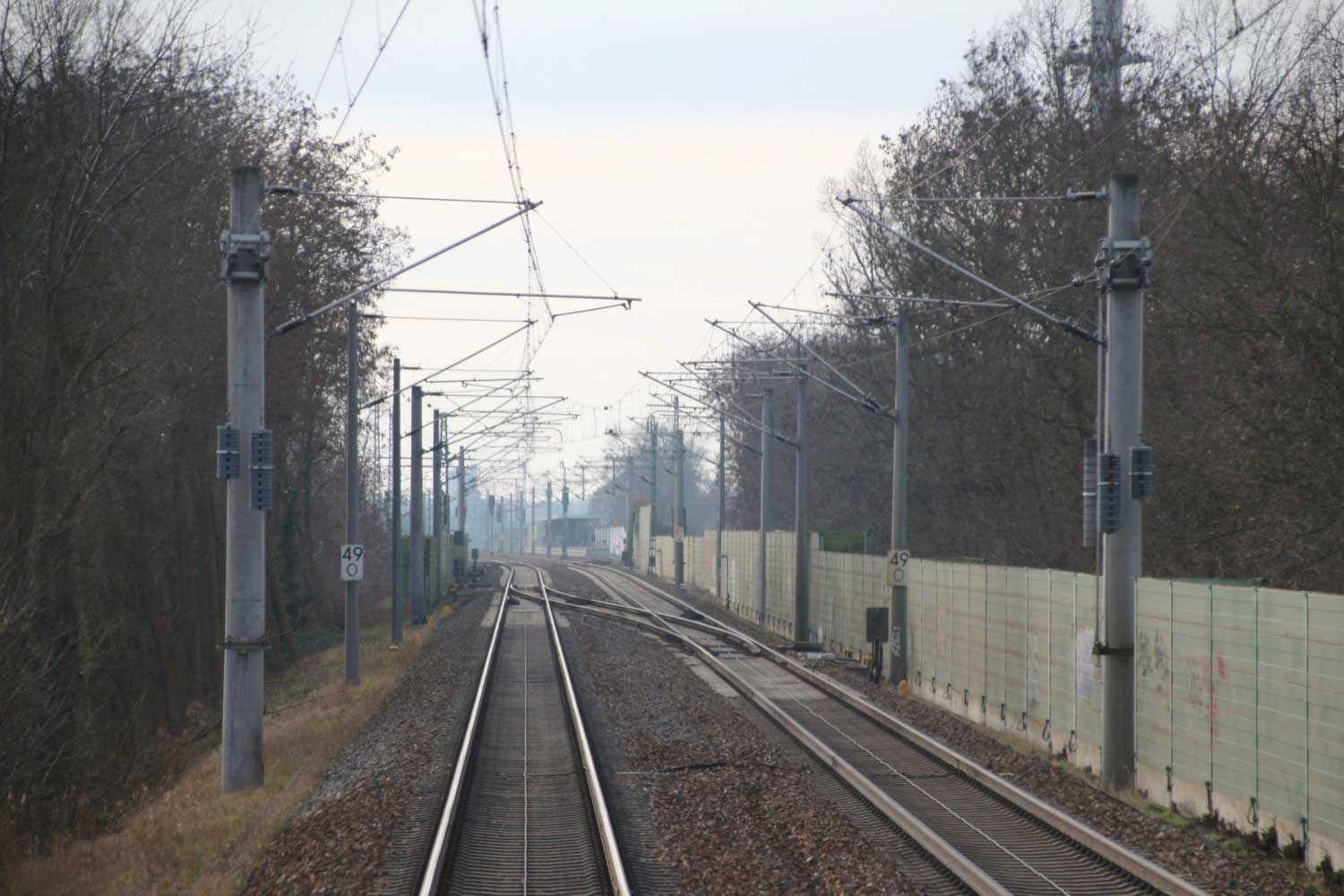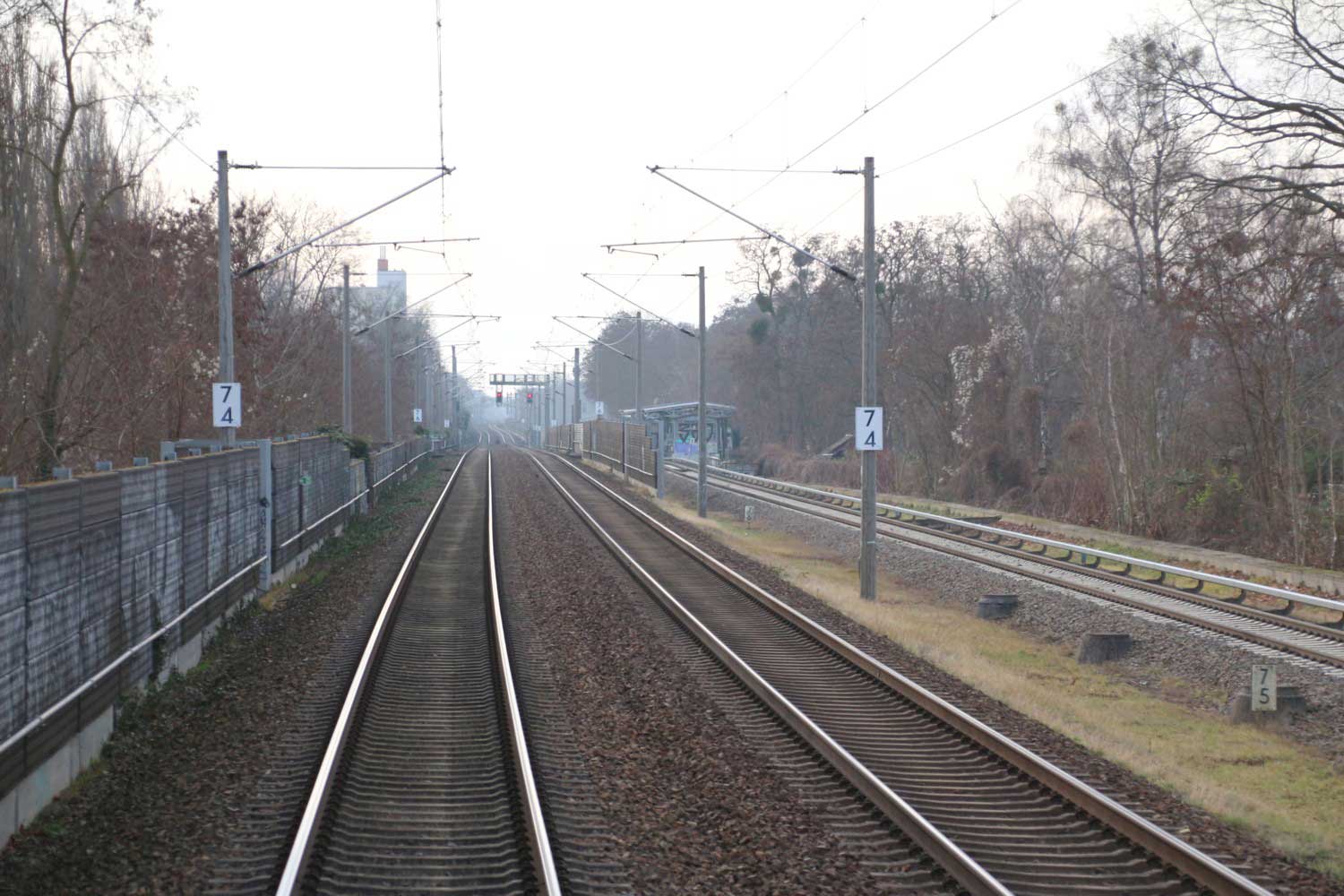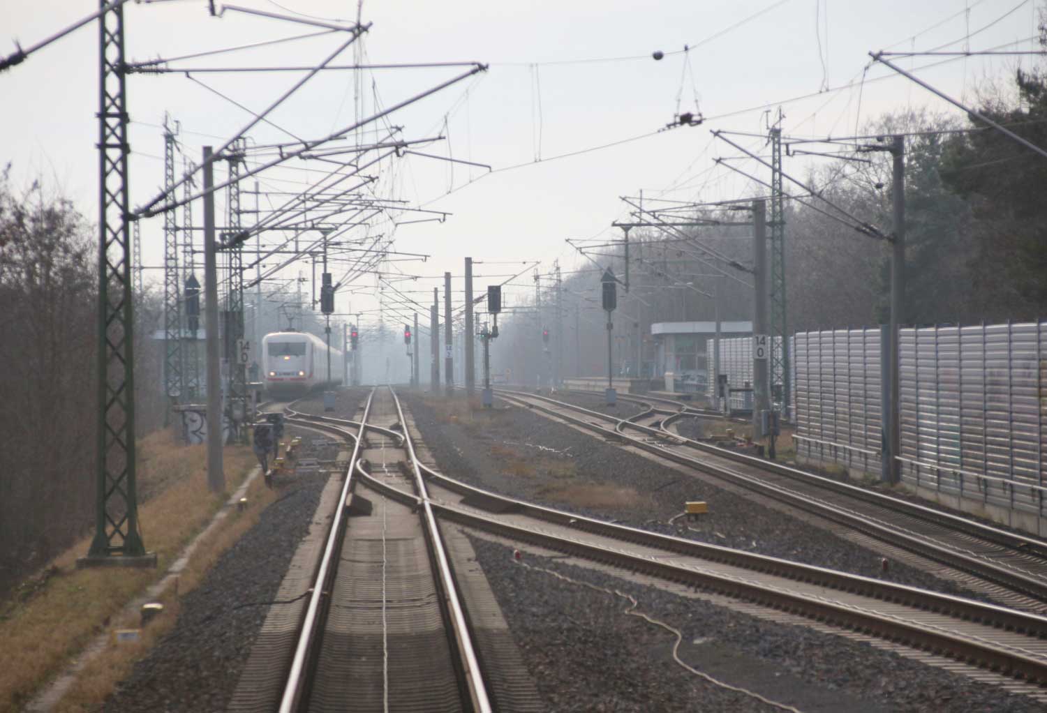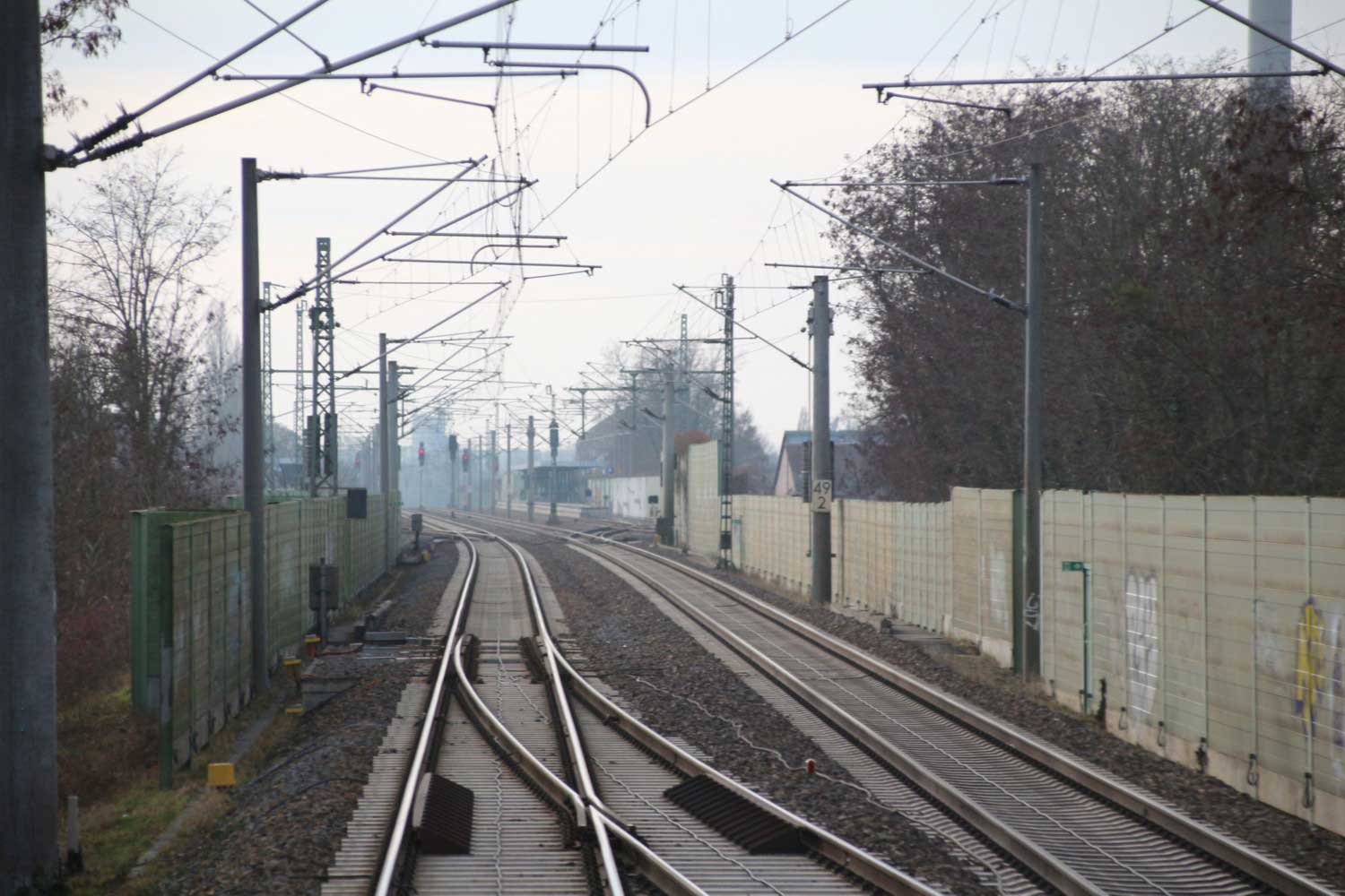Rechts hinter der Schallschutzwand die Strecke