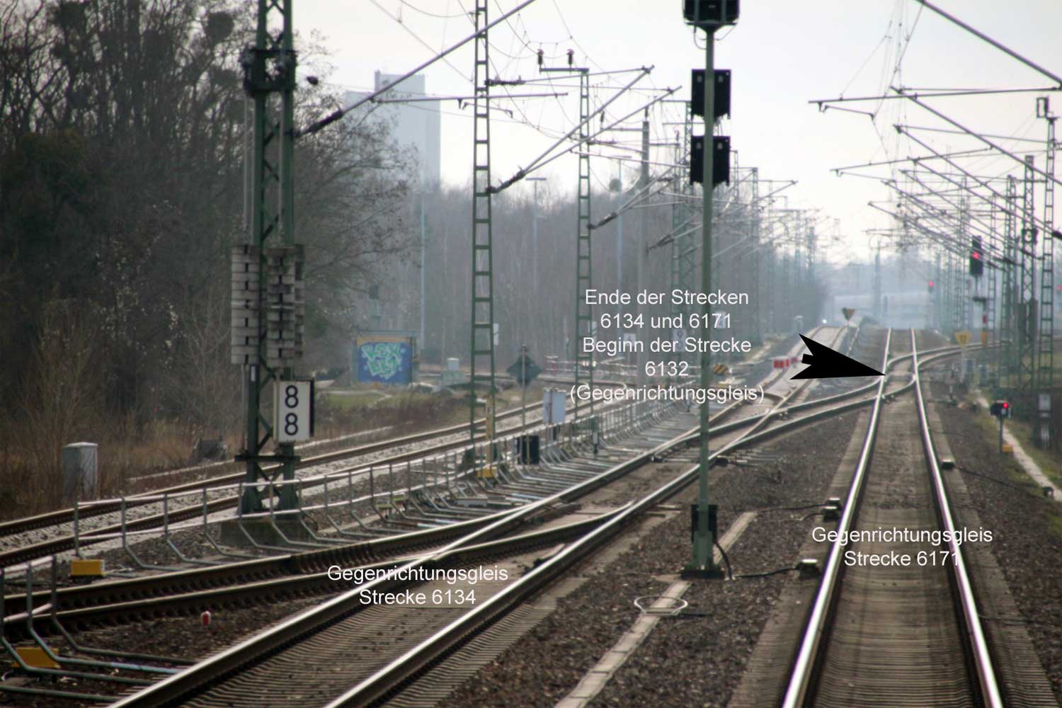 km 159,6 (links) gehört zur Strecke