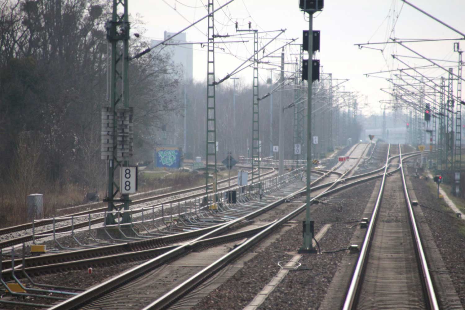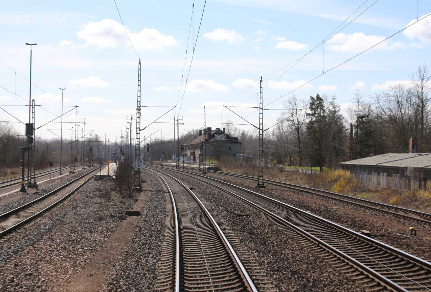 bei km 157,0 zwischen Hohenthurm und Halle (Saale) Hbf am Abzw Halle (Saale) Gbf Abzw Ab  - Blick Richtung Halle (Saale)