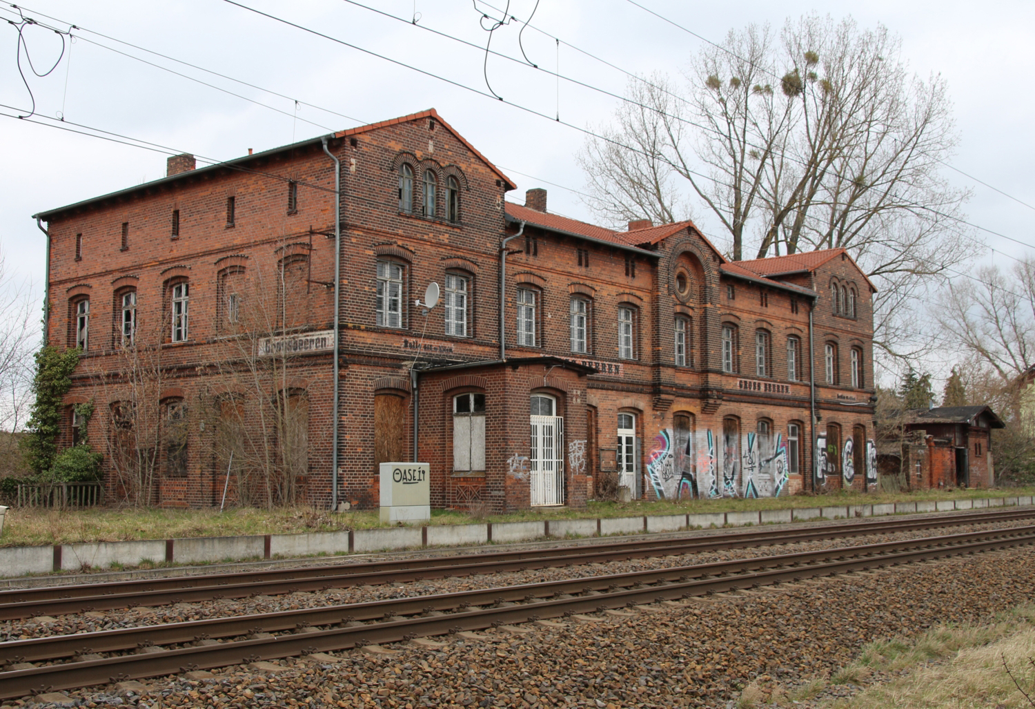 Großbeeren 18,59 km 20,0 der Strecke Michendorf 0,0 - Saarmund 7,78 - Genshagener Heide 16,65 - Hilfsrangierbf Großbeeren 21,53 (Teil des Güteraußenringes)