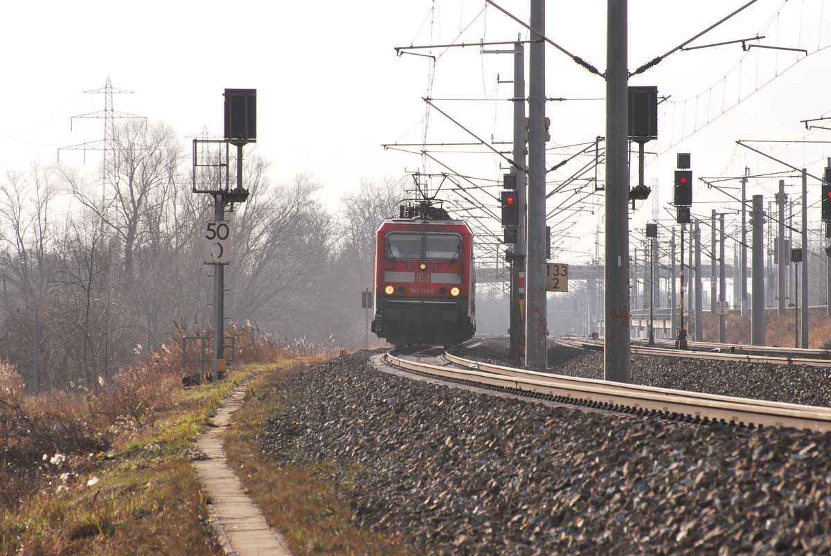 km 155,4 zwischen Hohenthurm und Halle (Saale) Hbf - Blick Richtung Halle (Saale)