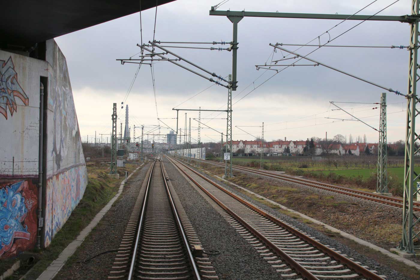 km 159,0 zwischen Hohenthurm und Halle (Saale) Hbf - Blick Richtung Halle (Saale)