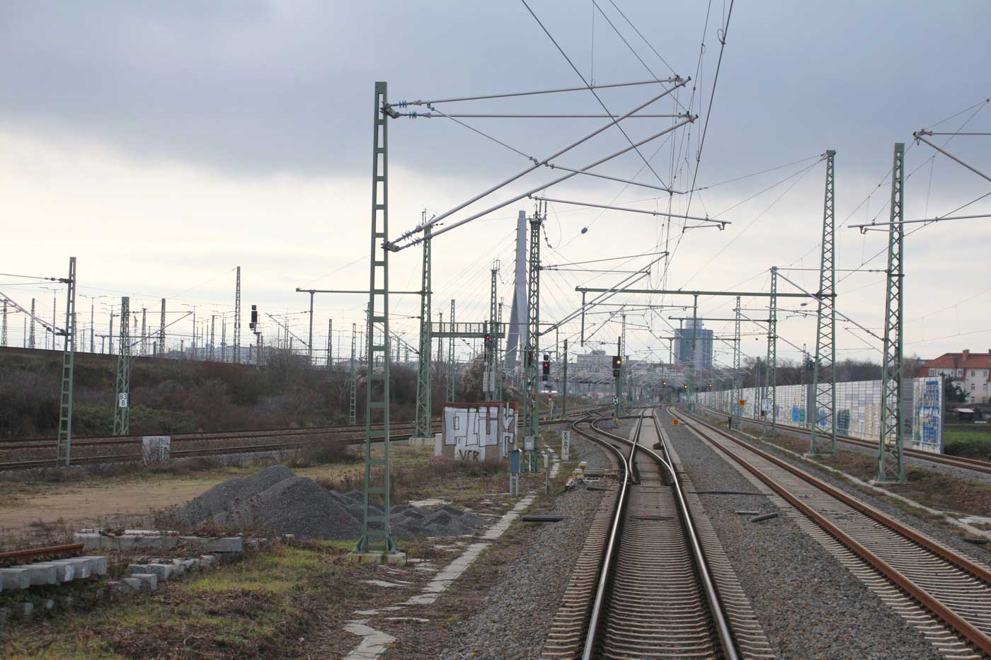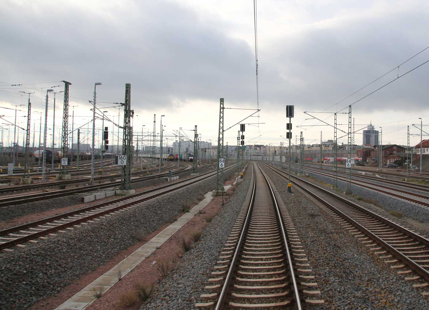 km 160,4 (rechts) in Halle (Saale) Hbf - Blick Richtung Halle (Saale)