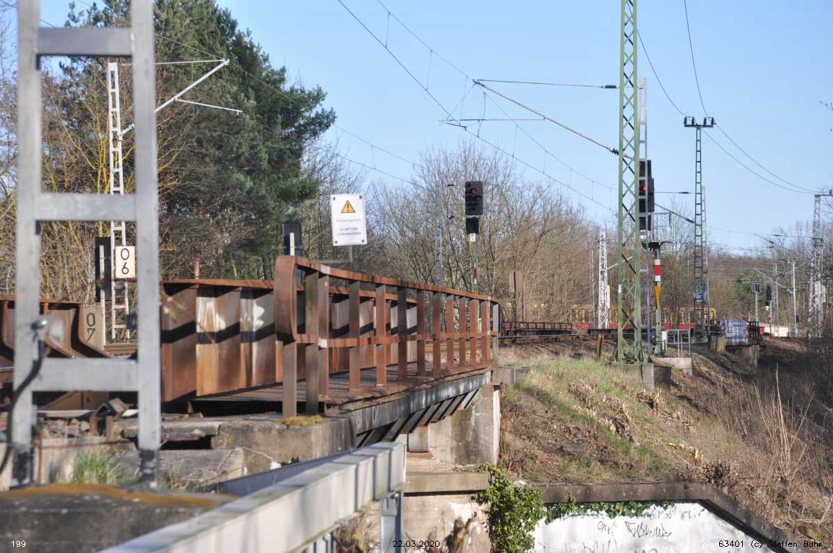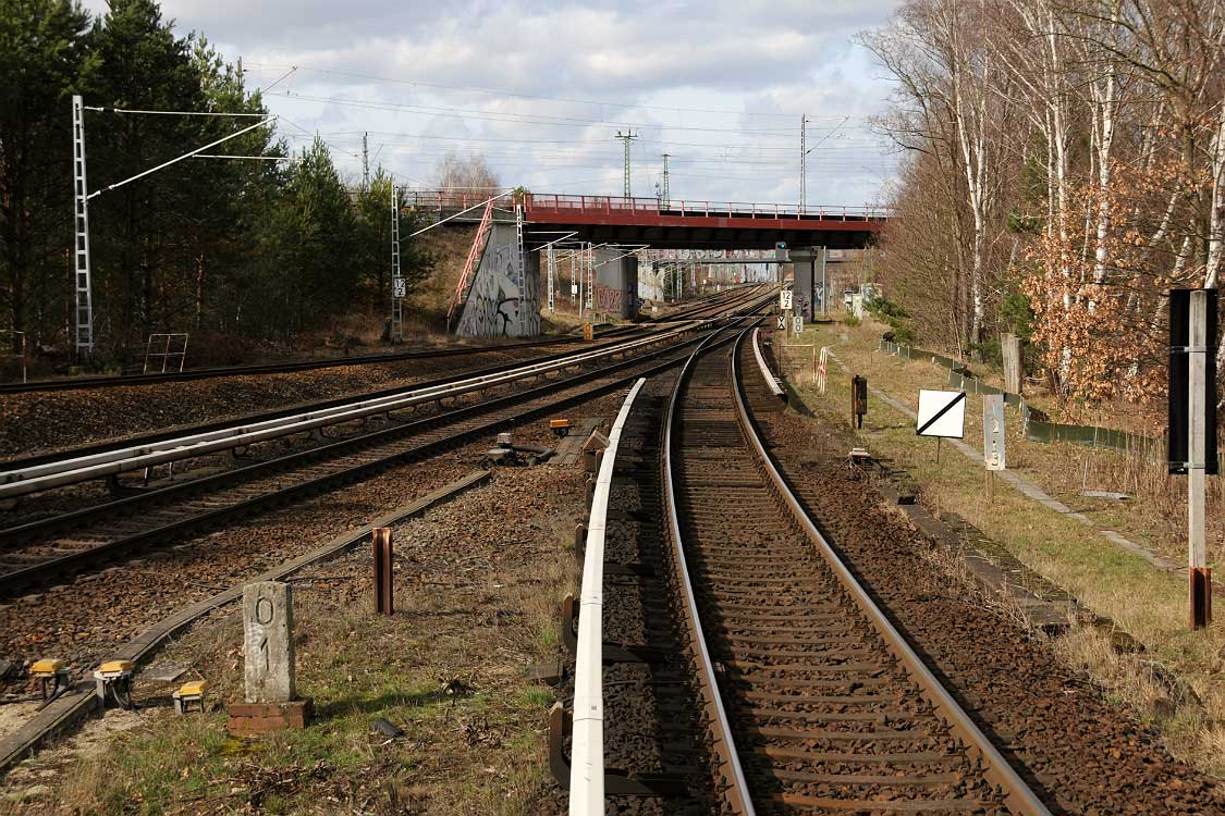 Über die Brücke führen die Gleise des Berliner Außenringes (BAR)