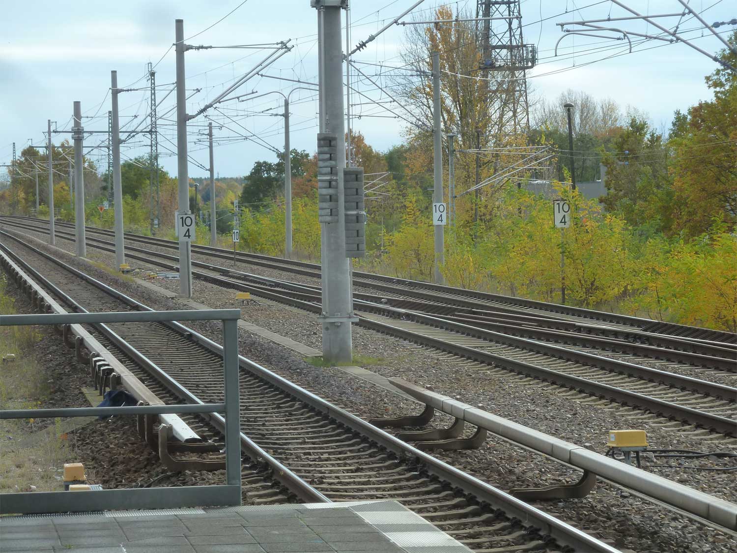 km 12,8 (Richtungsgleis) und km 13,0 (Richtungsgleis) im Bereich Grünauer Kreuz - Blick Richtung Görlitz