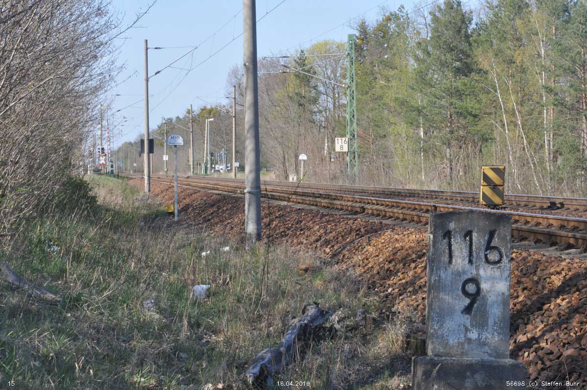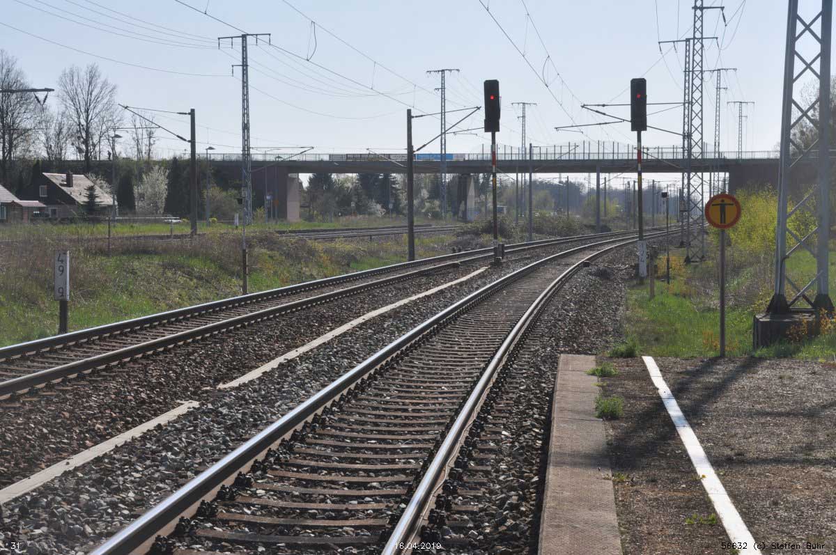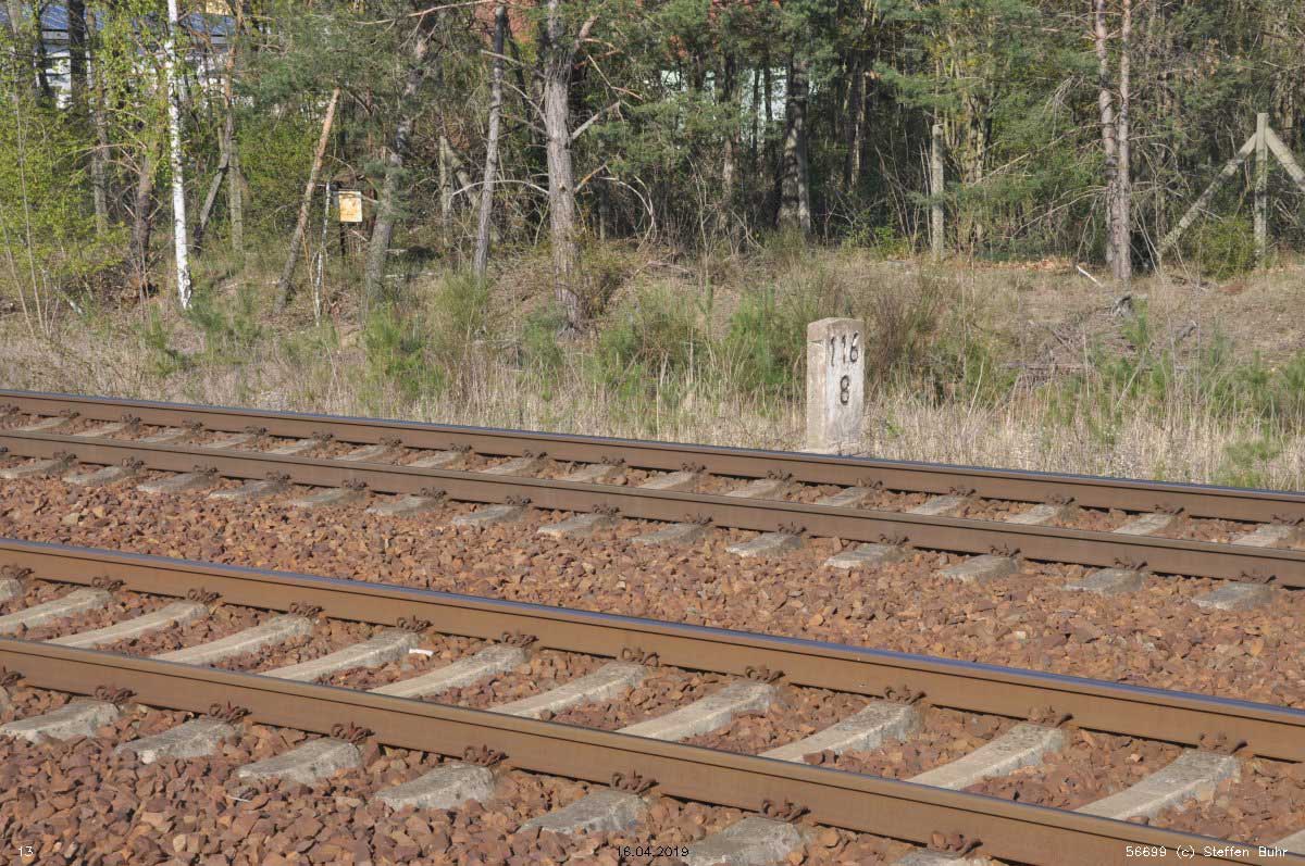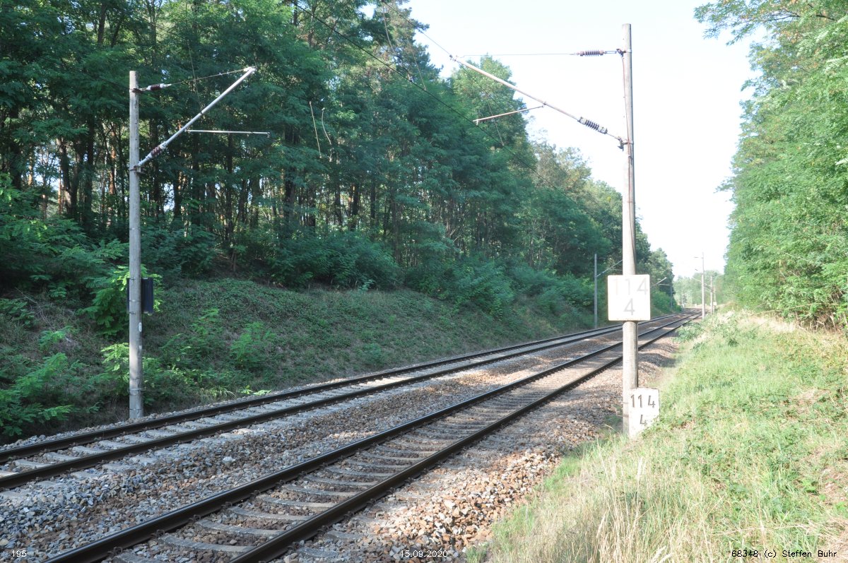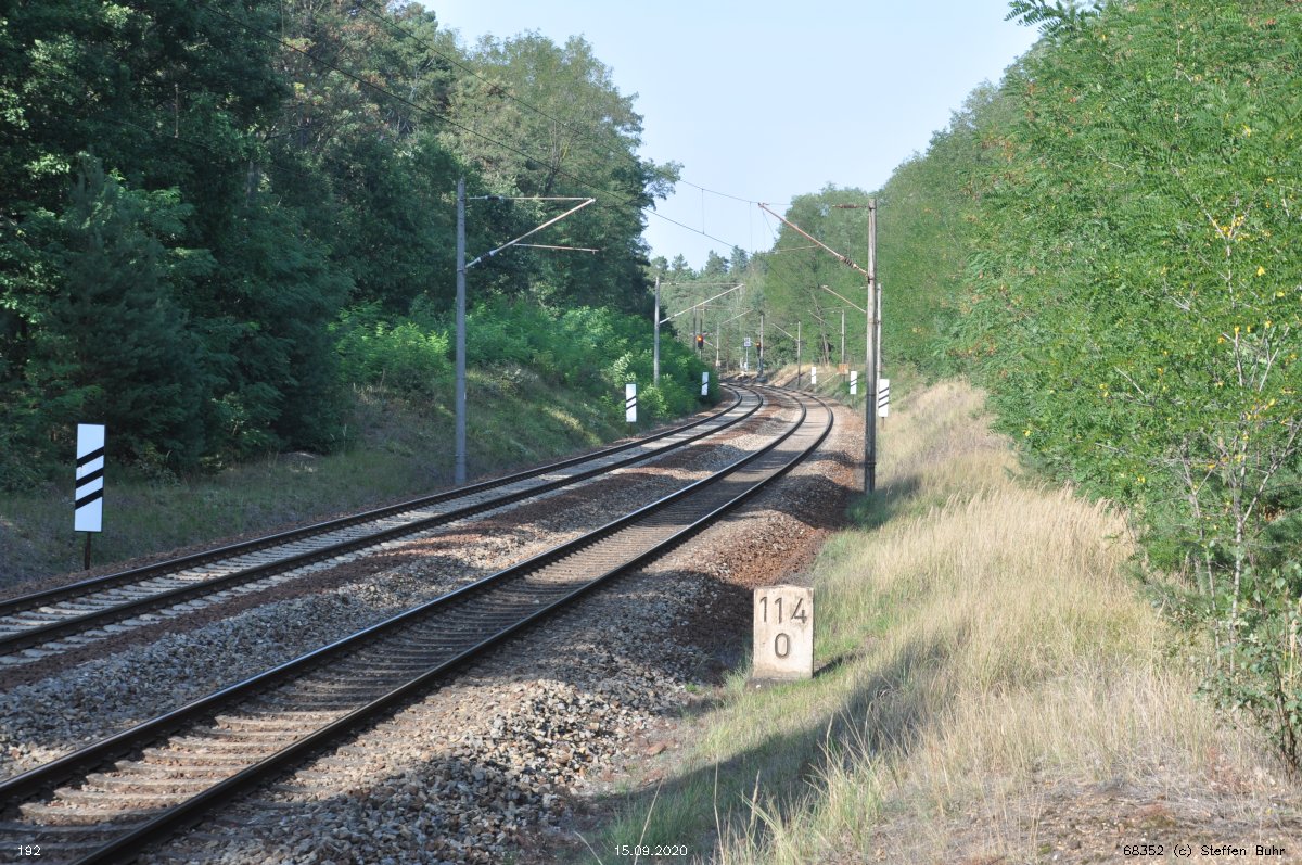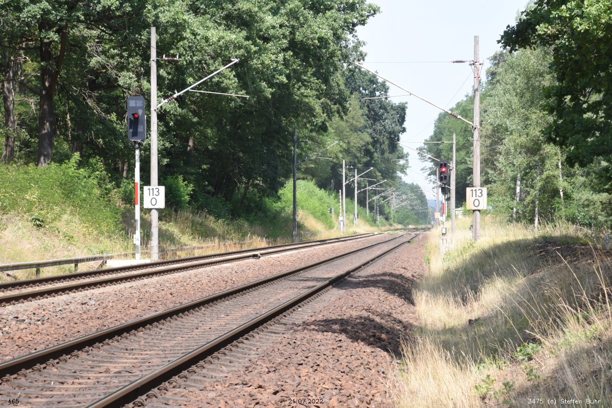 km 87,91 der Strecke Strecke Kohlfurt 0,03 - Hoyerswerda 72,76 - Falkenberg (Elster) (unten) 147,88 - Wittenberg (Provinz Sachsen) [heute: Lutherstadt Wittenberg] 201,93 - Dessau-Roßlau [heute: Roßlau (Elbe)] 233,70