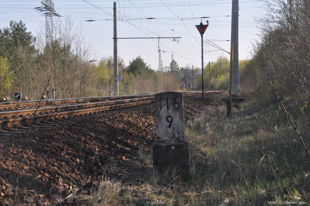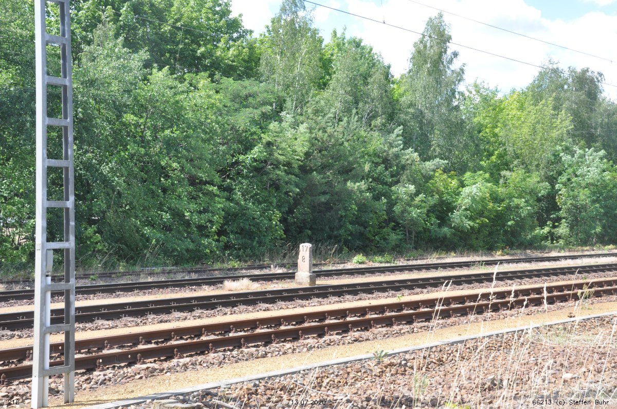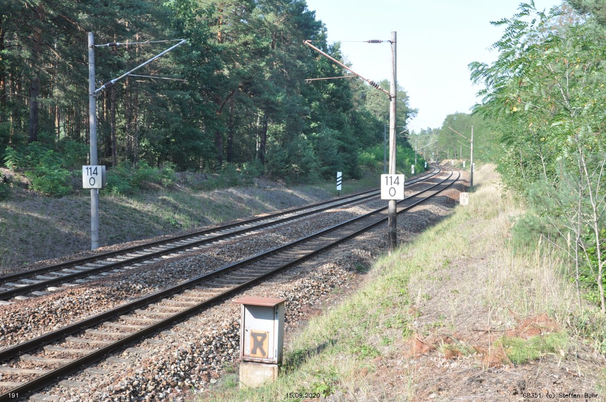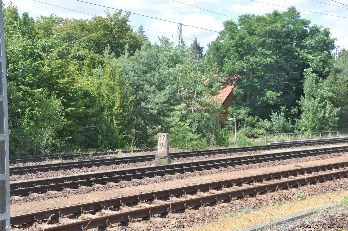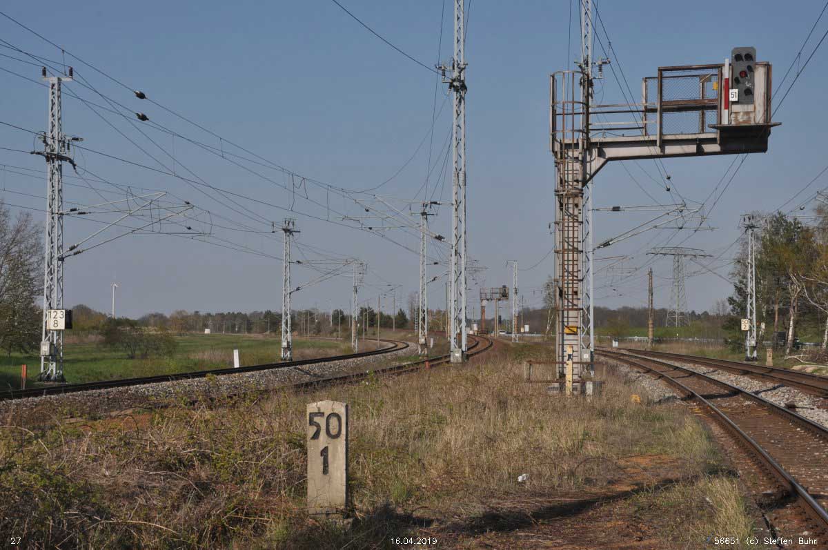 km 87,91 der Strecke Strecke Kohlfurt 0,03 - Hoyerswerda 72,76 - Falkenberg (Elster) (unten) 147,88 - Wittenberg (Provinz Sachsen) [heute: Lutherstadt Wittenberg] 201,93 - Dessau-Roßlau [heute: Roßlau (Elbe)] 233,70