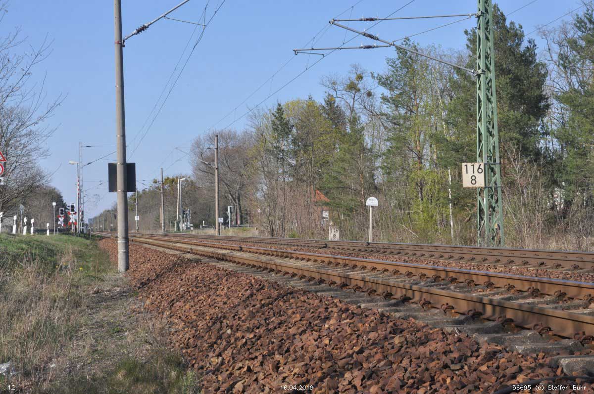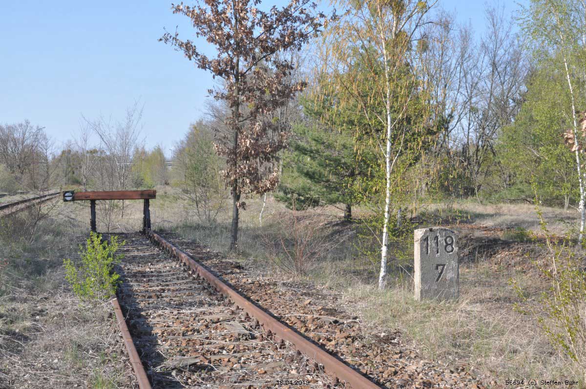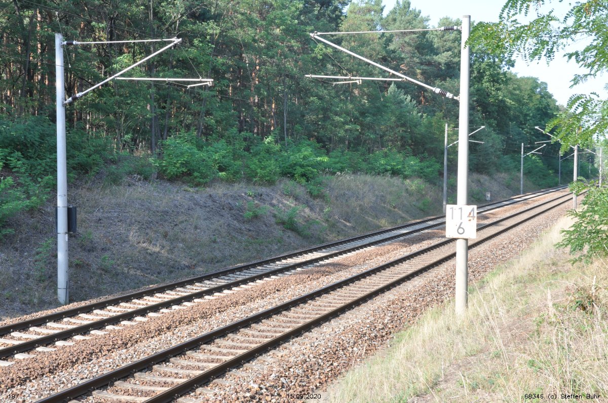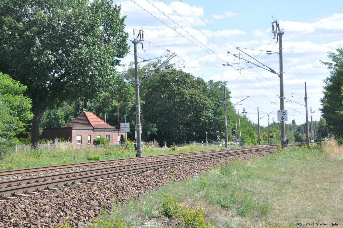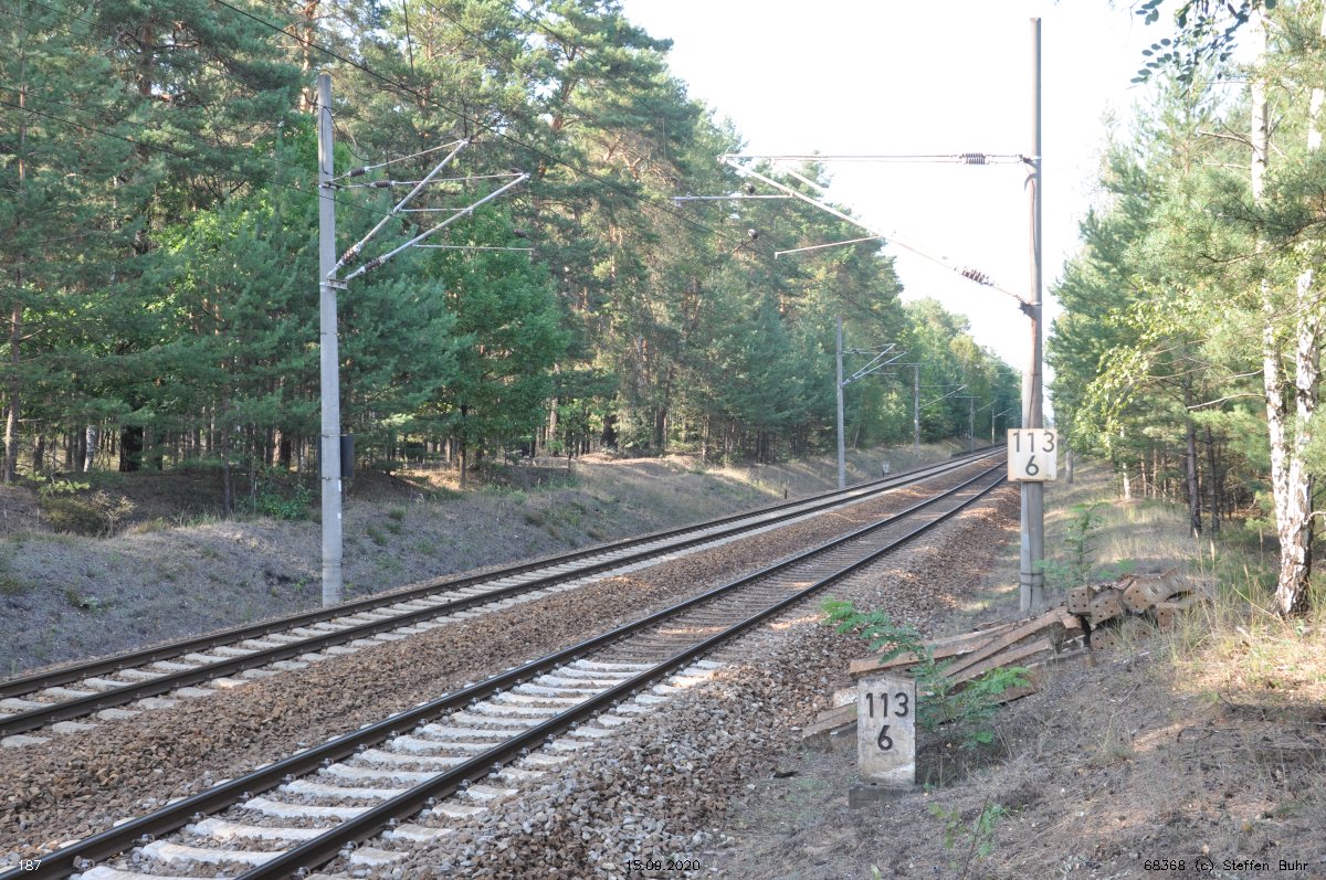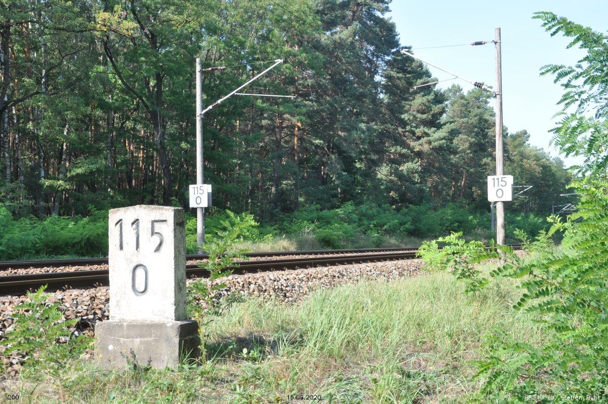km 87,91 der Strecke Strecke Kohlfurt 0,03 - Hoyerswerda 72,76 - Falkenberg (Elster) (unten) 147,88 - Wittenberg (Provinz Sachsen) [heute: Lutherstadt Wittenberg] 201,93 - Dessau-Roßlau [heute: Roßlau (Elbe)] 233,70