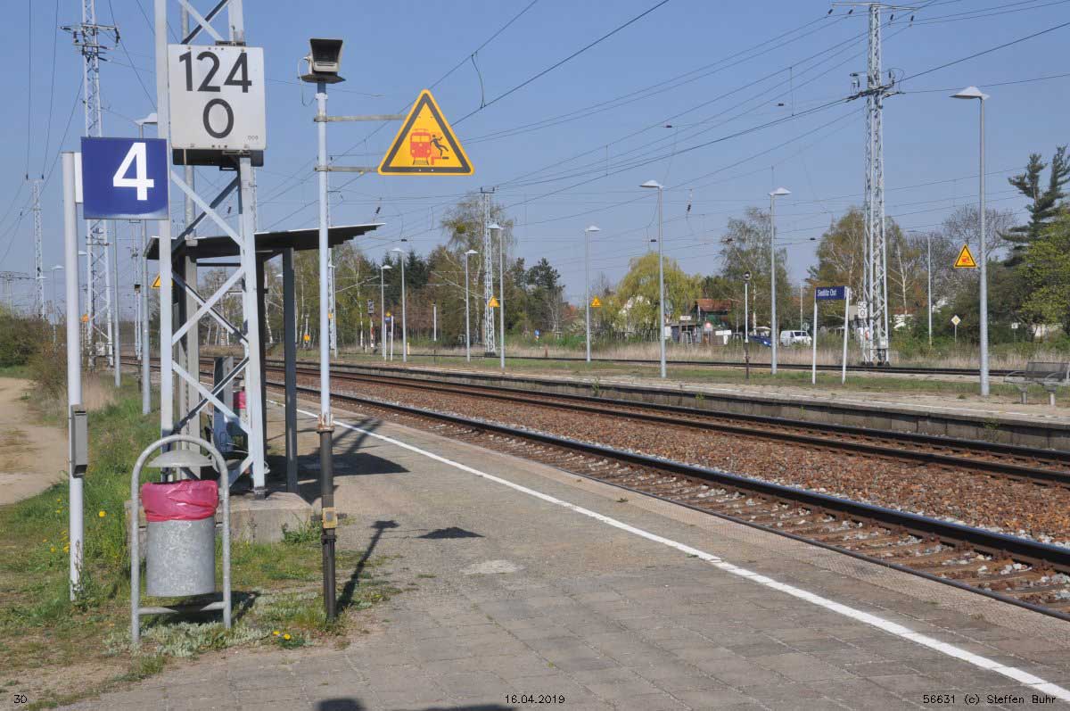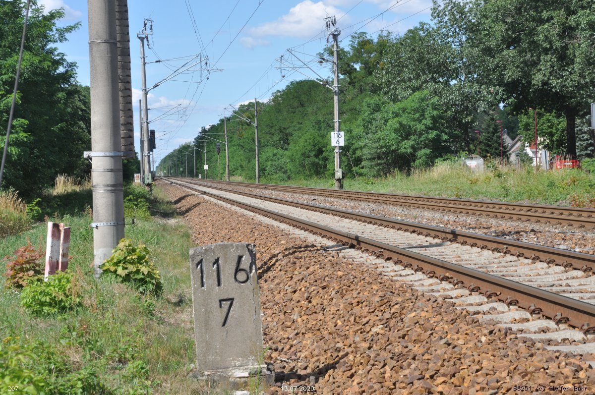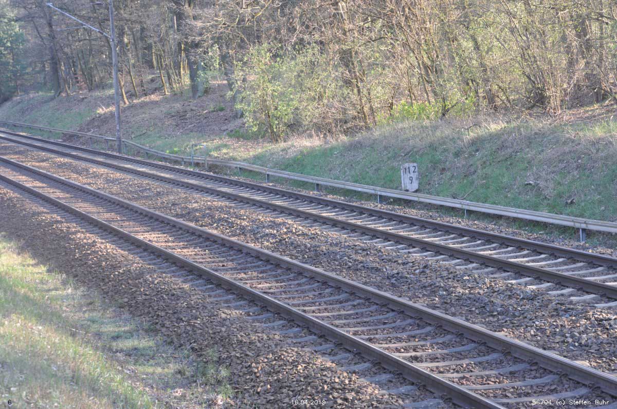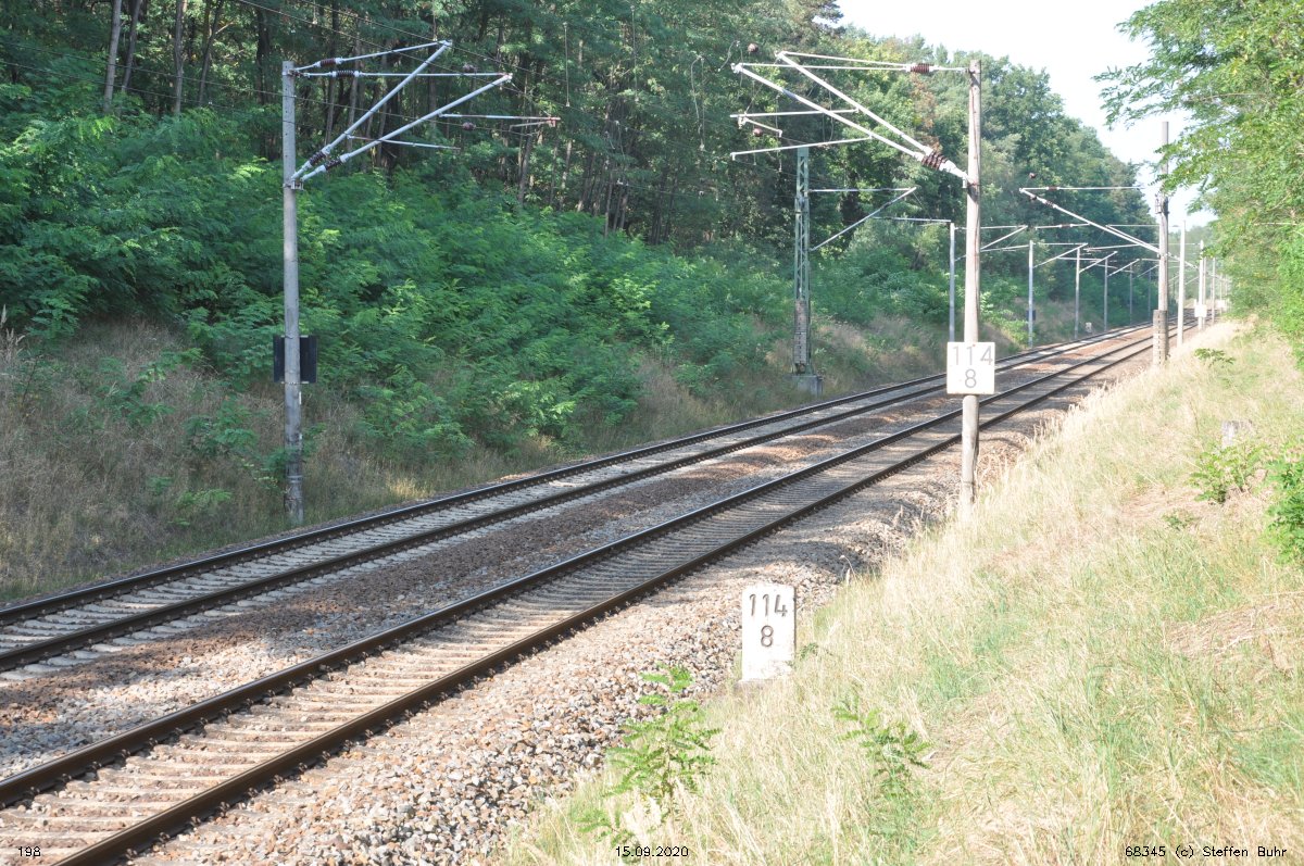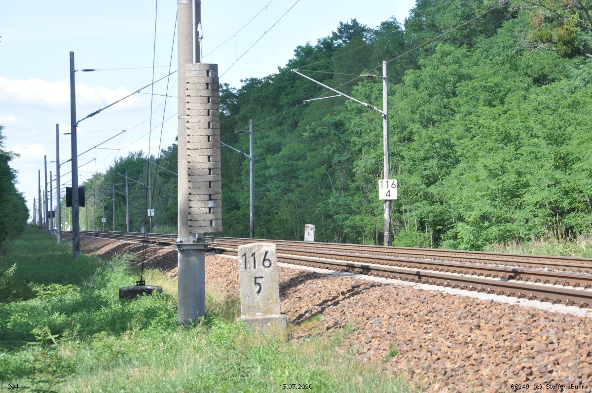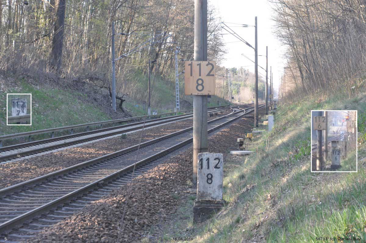 km 87,91 der Strecke Strecke Kohlfurt 0,03 - Hoyerswerda 72,76 - Falkenberg (Elster) (unten) 147,88 - Wittenberg (Provinz Sachsen) [heute: Lutherstadt Wittenberg] 201,93 - Dessau-Roßlau [heute: Roßlau (Elbe)] 233,70