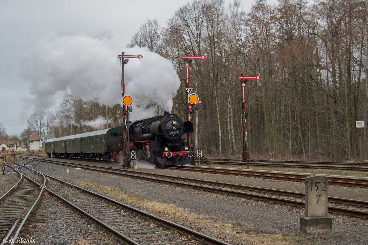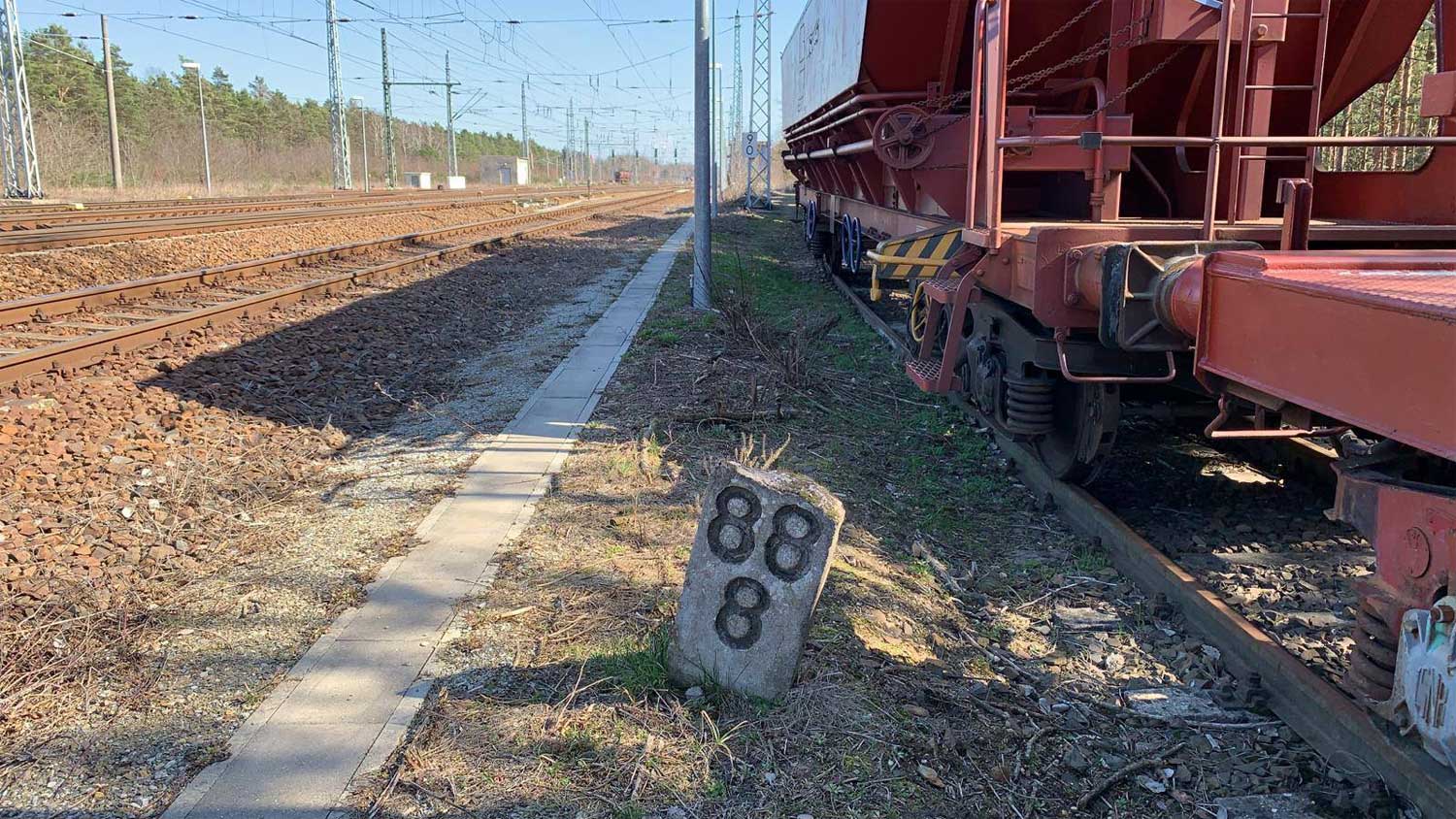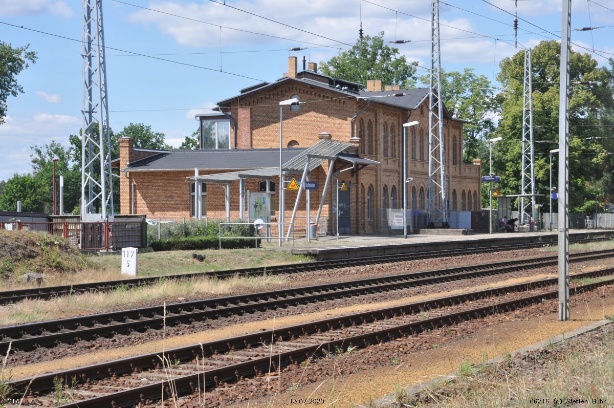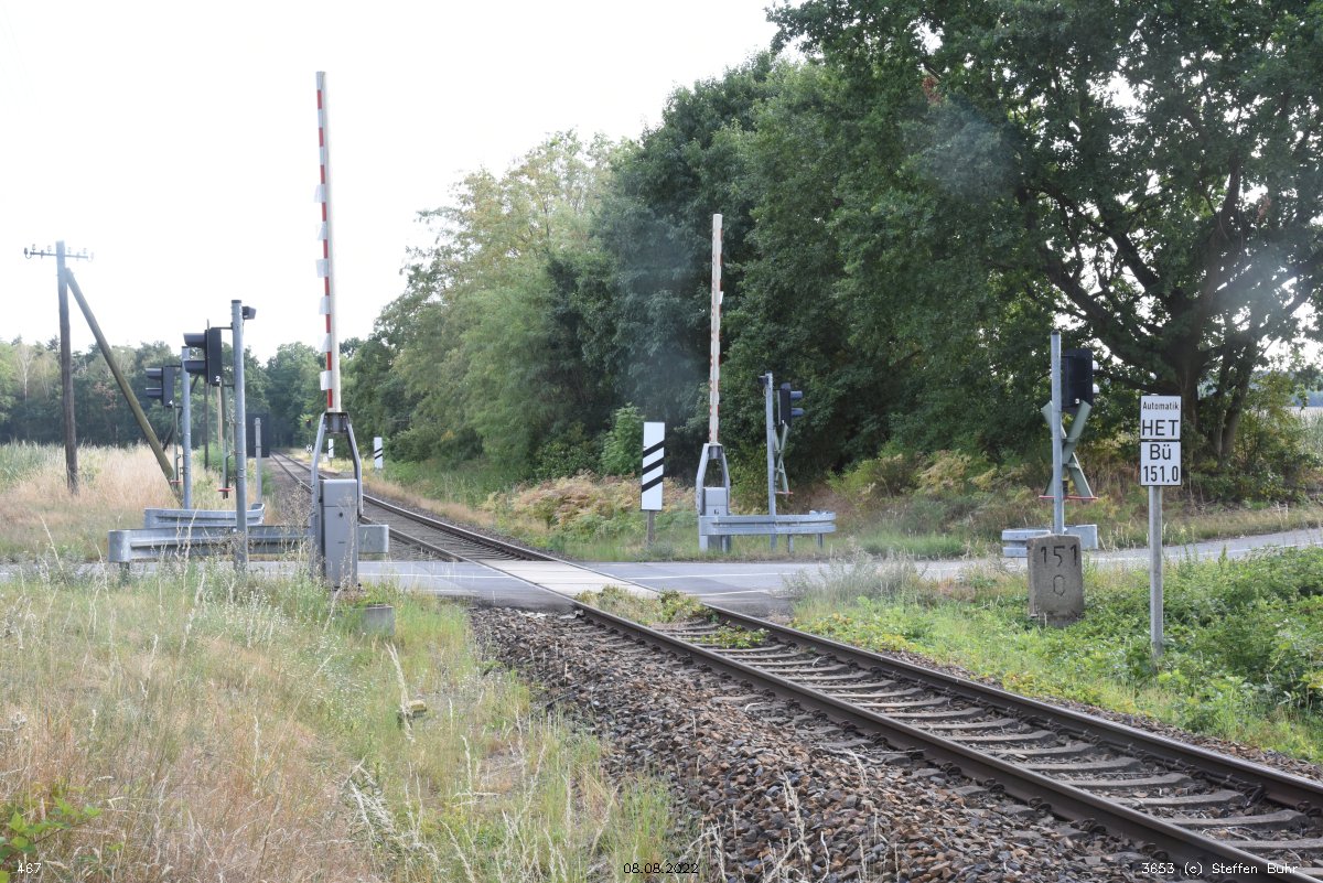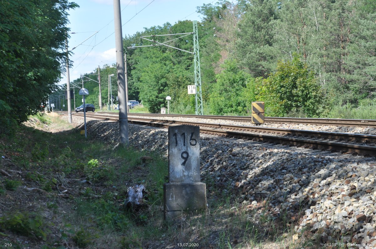 km 87,91 der Strecke Strecke Kohlfurt 0,03 - Hoyerswerda 72,76 - Falkenberg (Elster) (unten) 147,88 - Wittenberg (Provinz Sachsen) [heute: Lutherstadt Wittenberg] 201,93 - Dessau-Roßlau [heute: Roßlau (Elbe)] 233,70