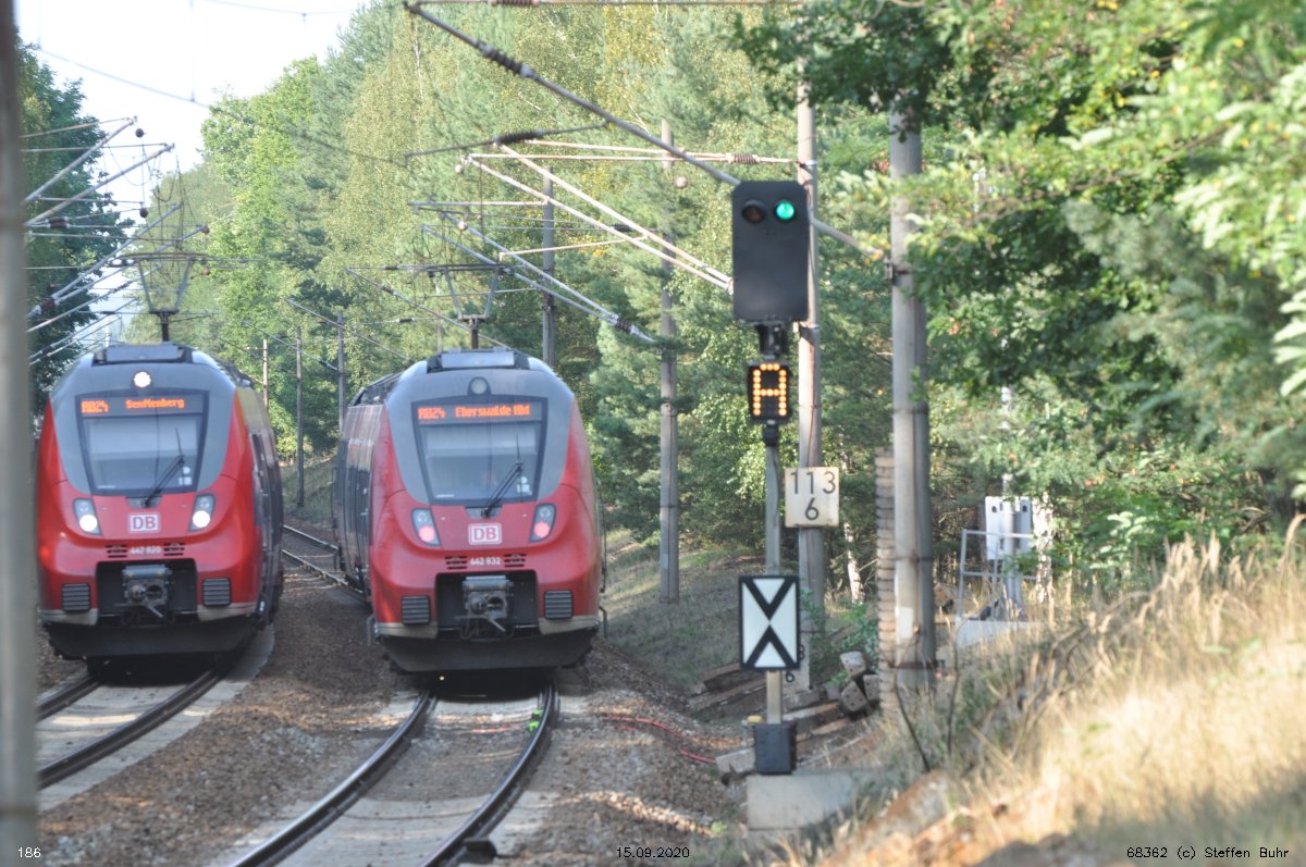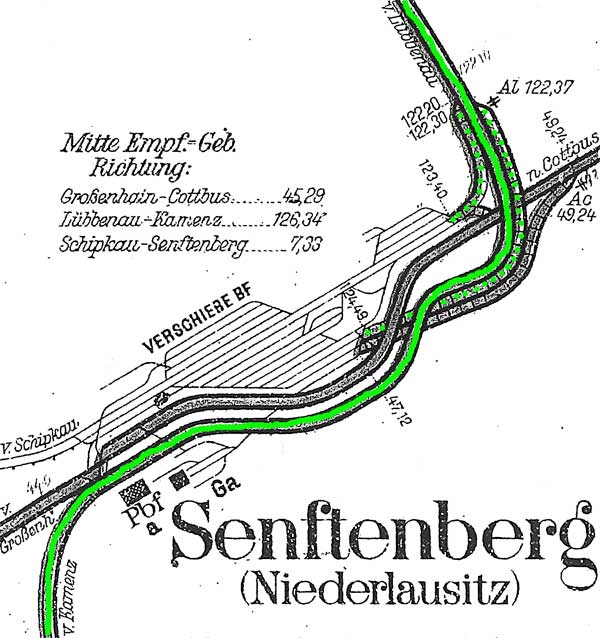 Senftenberg 126,34 km 45,29 der Strecke Großenhain Cottb Bf 0,23 - Senftenberg 45,29 - Cottbus 79,67 - Frankfurt (Oder) Pbf 152,85 (Personenzuggleise)/152,79 (Güterzuggleise)