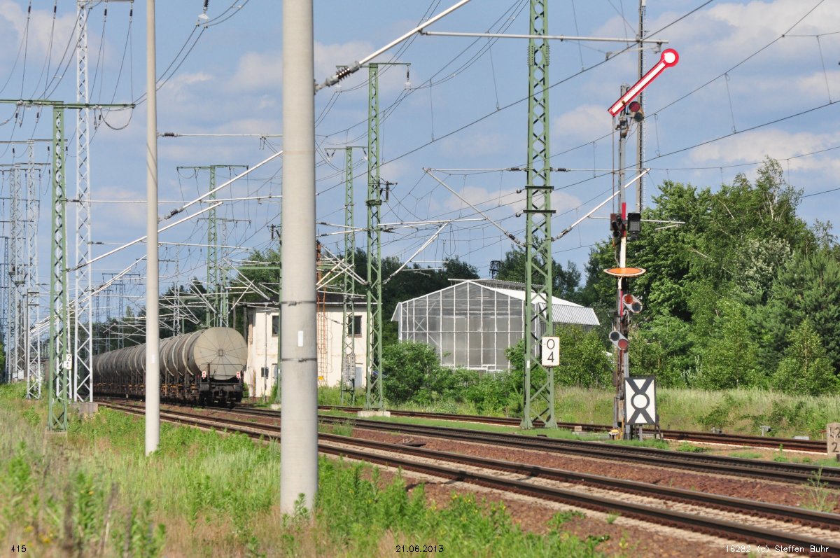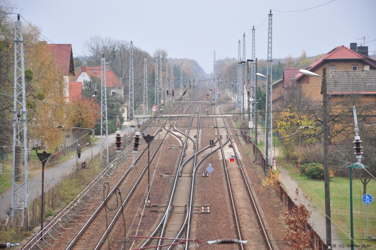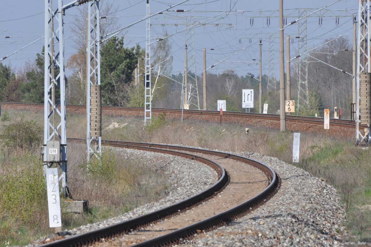 Hohenbocka Nord 133,64 Verbindungskurve zur Strecke Kohlfurt 0,03 - Hoyerswerda 72,76 - Falkenberg (Elster) (unten) 147,88 - Wittenberg (Provinz Sachsen) [heute: Lutherstadt Wittenberg] 201,93 - Dessau-Roßlau [heute: Roßlau (Elbe)] 233,70