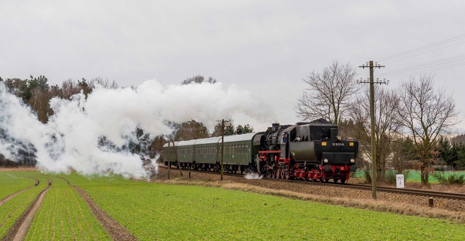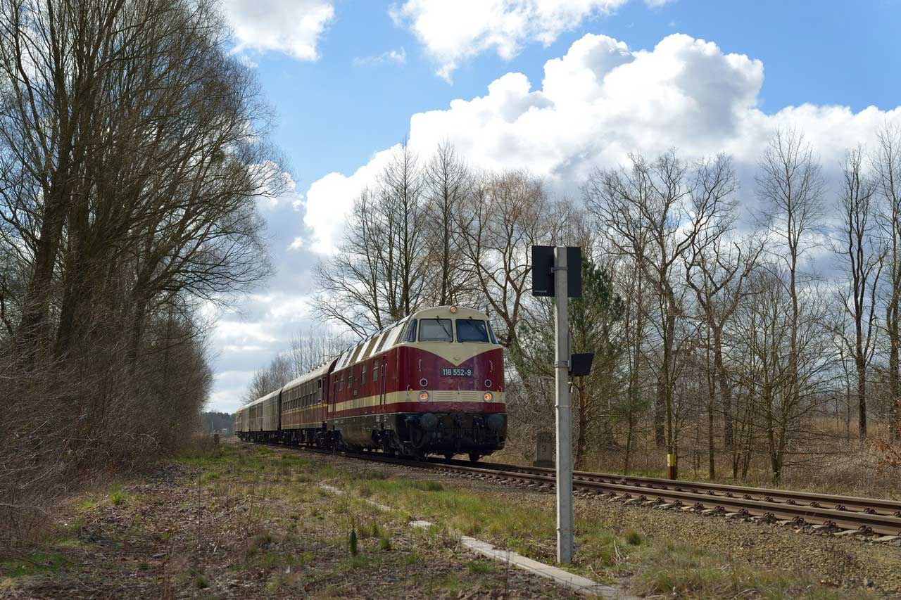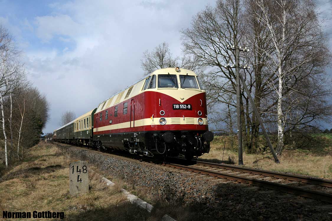 km 151,3 vor Cunnersdorf (b Kamenz) - Sonderzug mit 118 552
