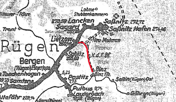 19 | Berlin Nordbf 0,0 - Berlin-Schönholz 3,85 - Löwenberg Reichsb (Mark) 44,25 - Neustrelitz Reichsb 98,53 - Neubrandenburg 133,73 - Stralsund 222,64 - Saßnitz 272,72 - Saßnitz Hafen 274,46 (1937/1943) |