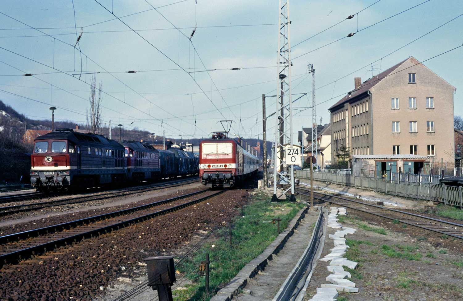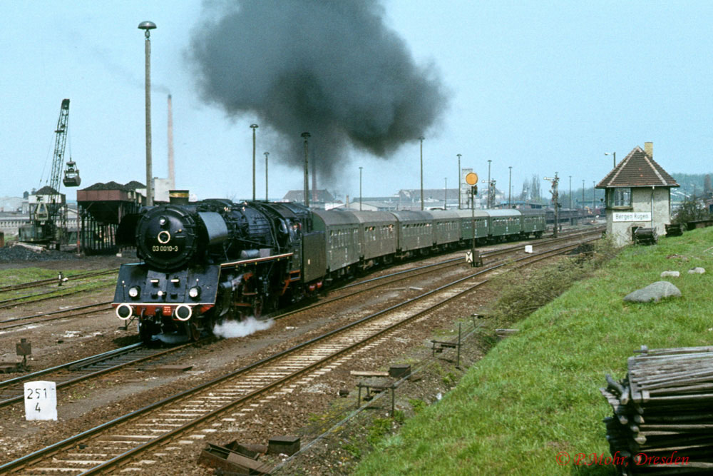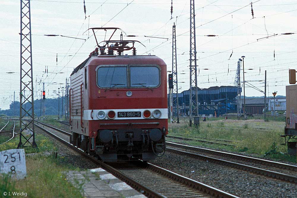 19 | Berlin Eberswalder Straße 0,01 - Berlin-Schönholz 3,85 - Grenze Berlin West/DDR 16,31 - Oranienburg 27,41 - Löwenberg (Mark) 44,25 - Neustrelitz 98,53 -Neubrandenburg 133,73 - Stralsund 222,64 - Saßnitz 272,72 - Saßnitz Hafen 274,46 (1967) |