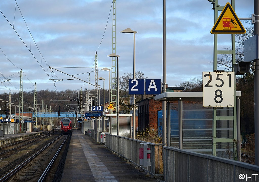 Neustrelitz Reichsb | 98,53 | km 0,0 der Strecke Neustrelitz 0,0 - Waren (Müritz) 34,05 - Lalendorf 69,73 - Plaaz 80,86 - Rostock Hbf 113,20 - Warnemünde Hbf 126,30 (auch 126,48) |