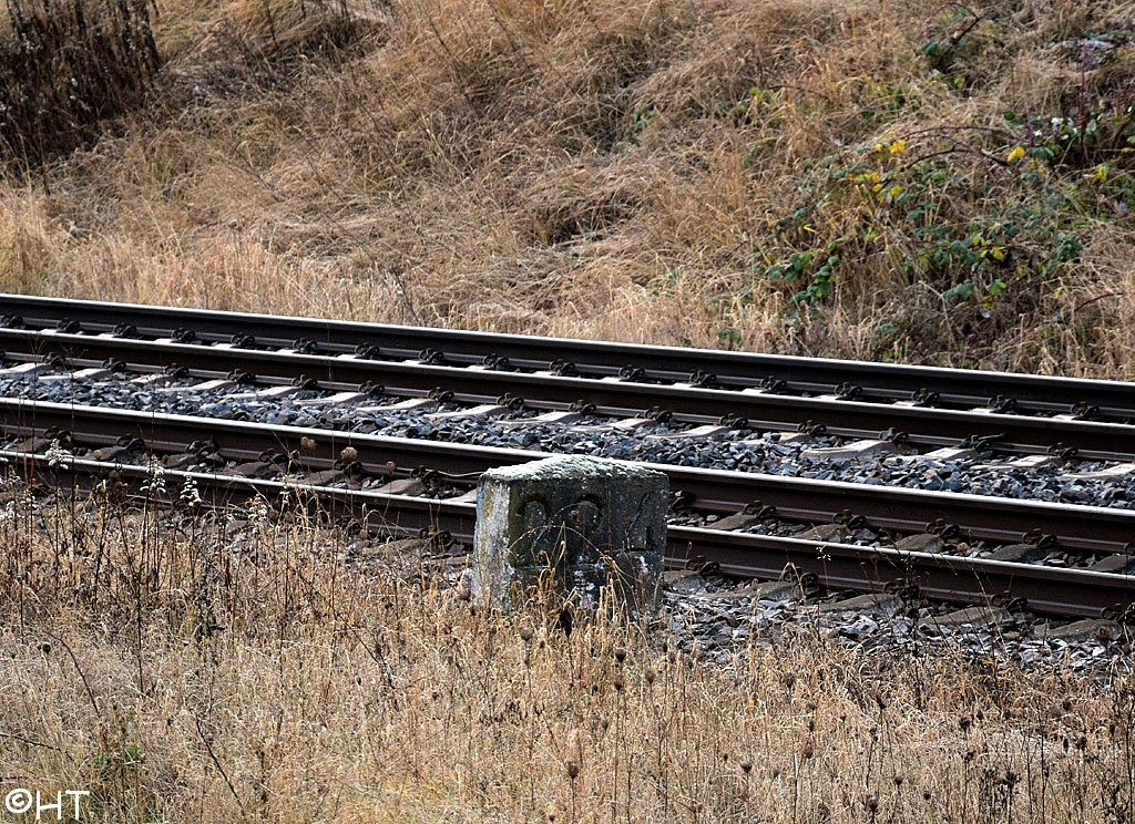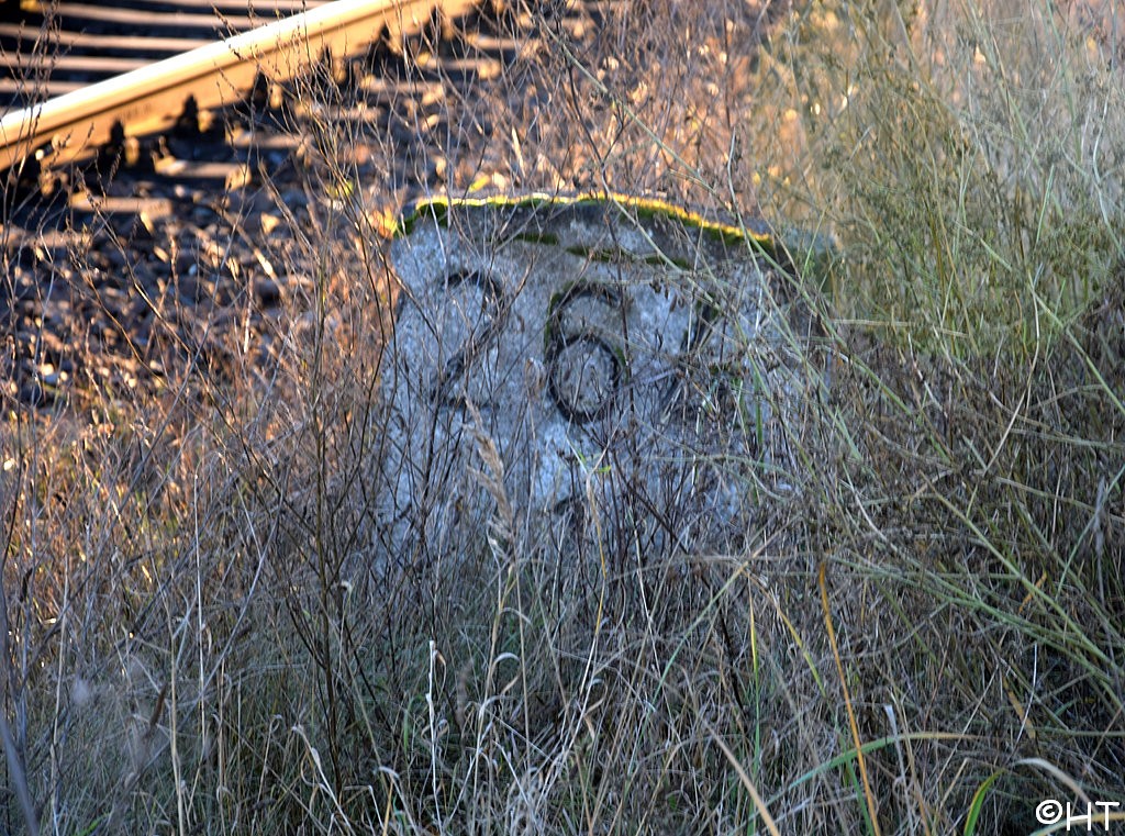 Rechts versteckt ein Stein - gehört zur Strecke nach Saßnitz Hafen