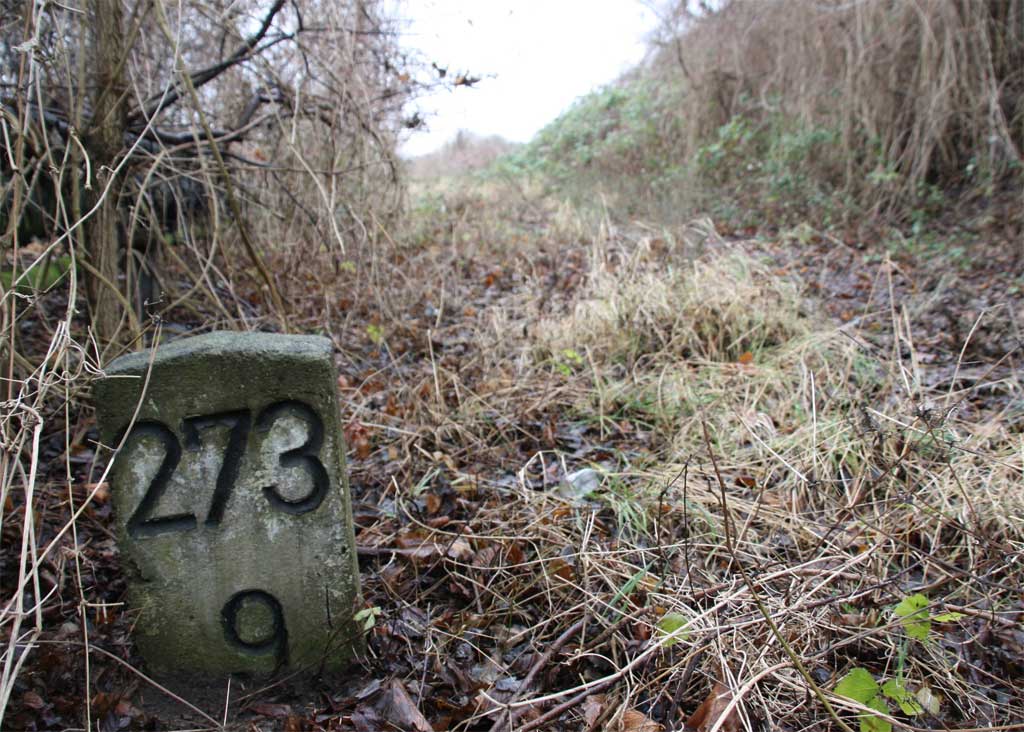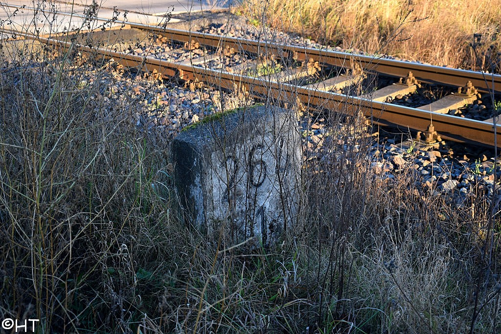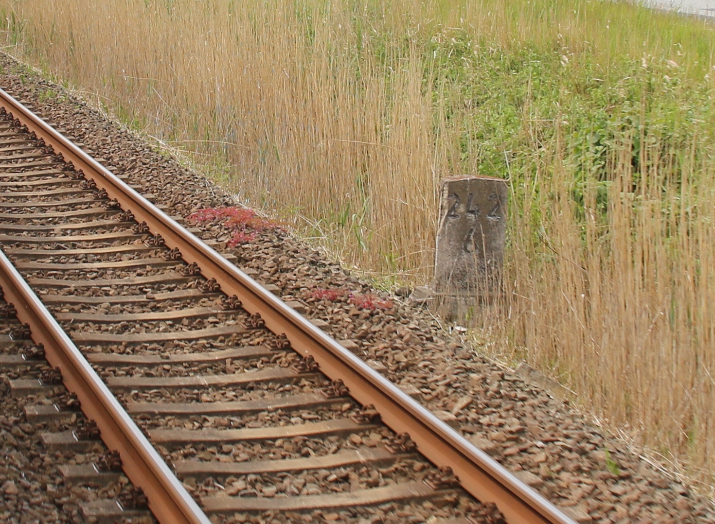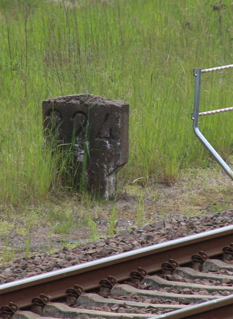 Der Stein zeigt die Kilometrierung von Berlin aus an.