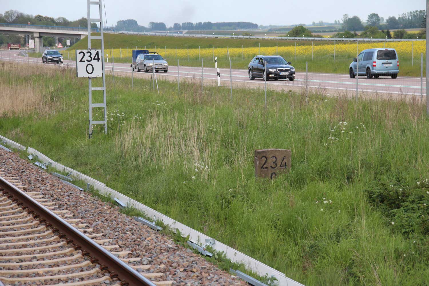 km 272,6 in Saßnitz - Blick Richtung Stralsund