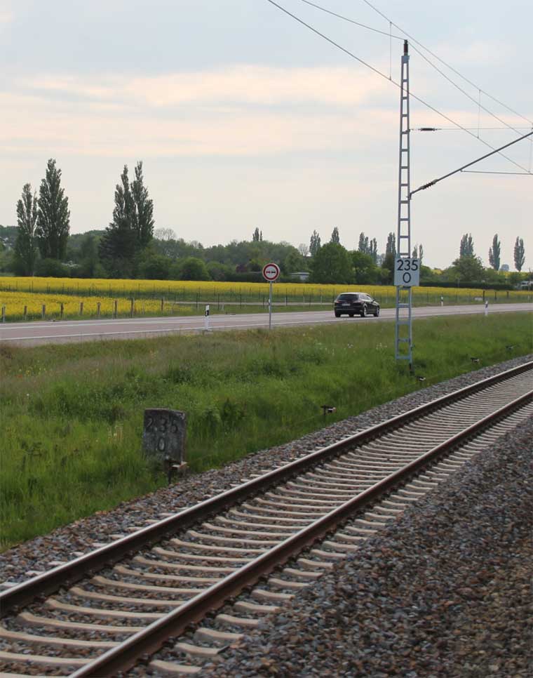 km 273,8 in Saßnitz - Blick Richtung Stralsund - Berlin