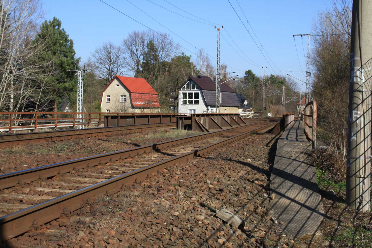 Rechts das ehemalige Gleis der Verbindung Wensickendorf - Sachsenhausen (Nordbahn)/Fichtengrund