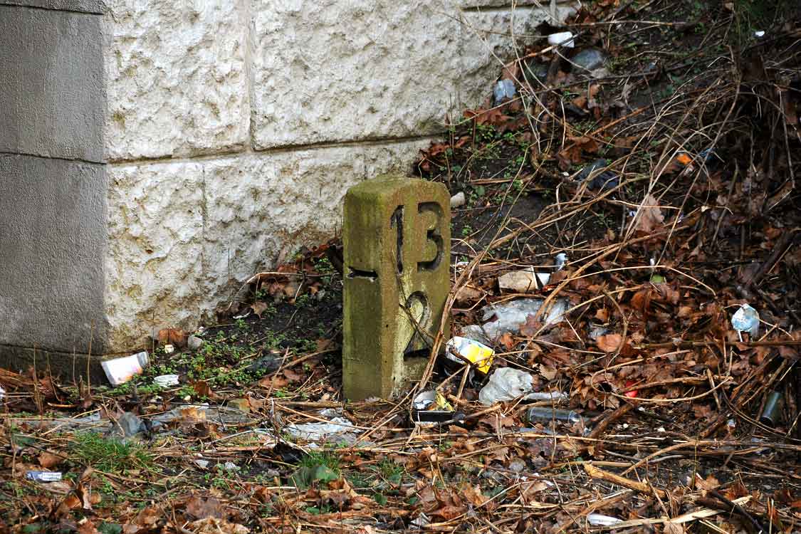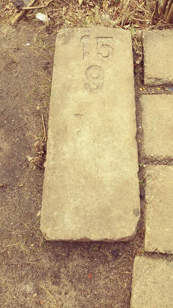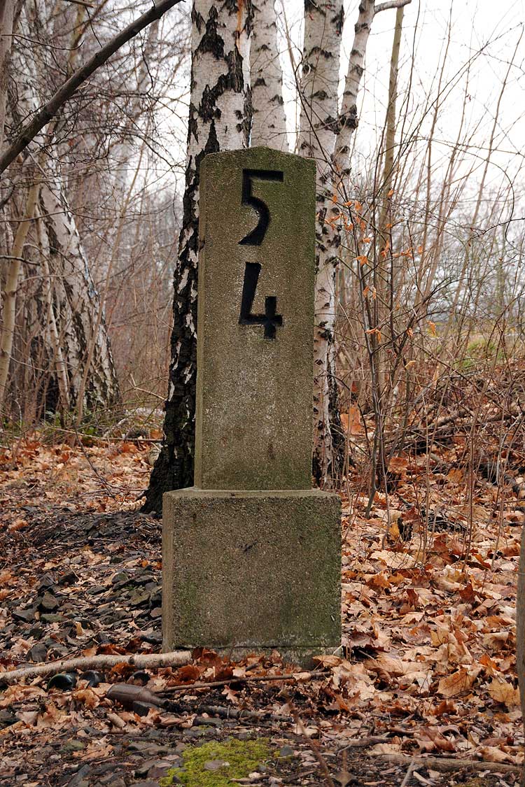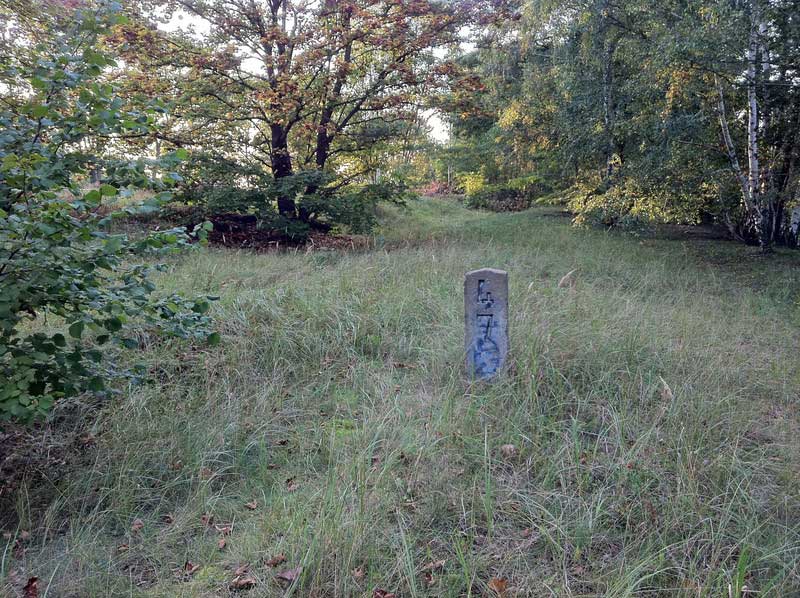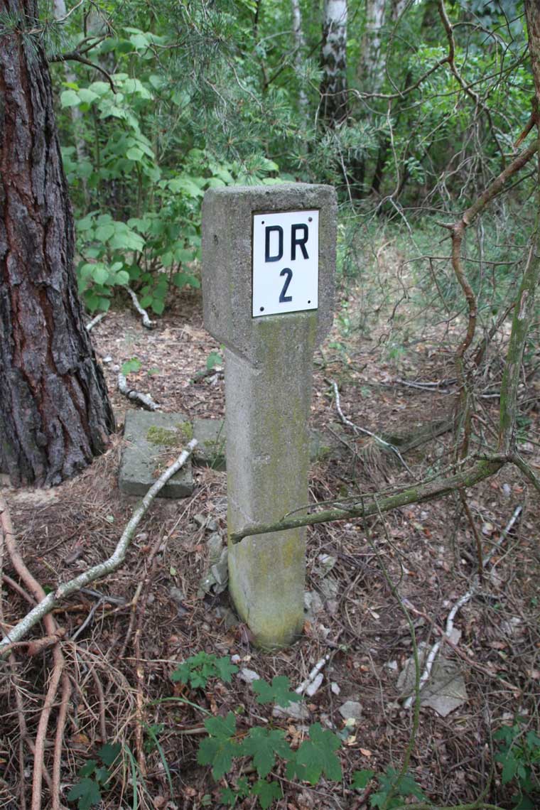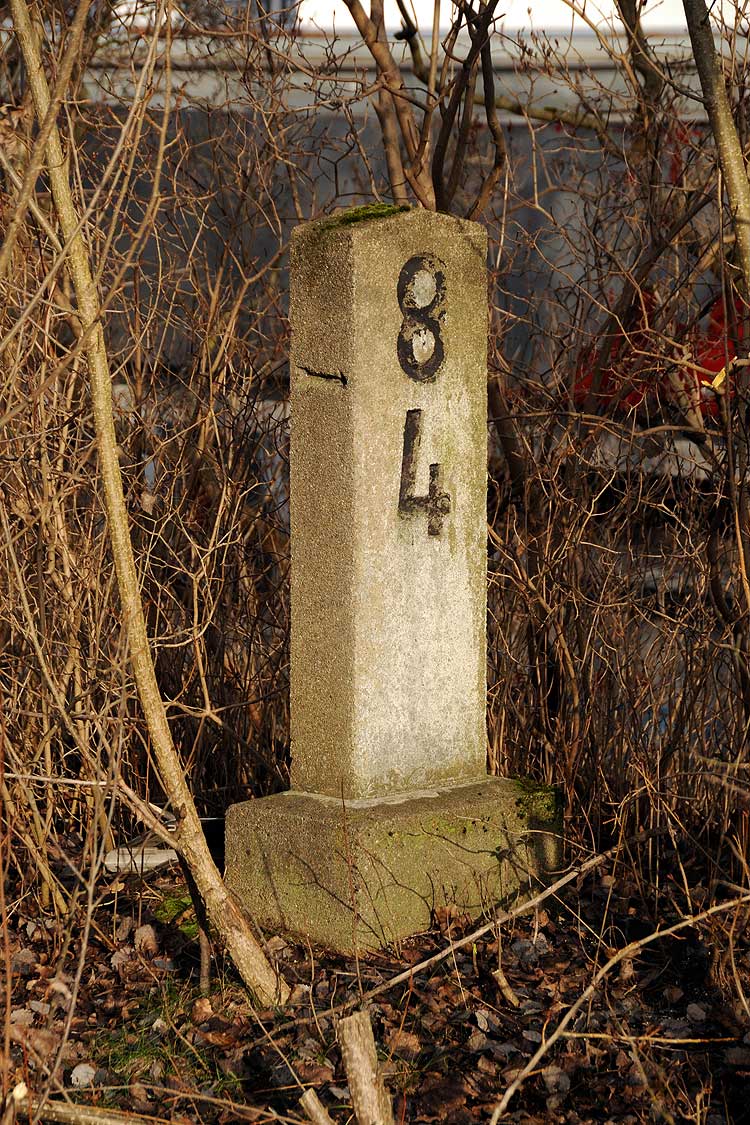 km 29,2 (Stein und Tafel) in Sachsenhausen (Nordbahn) - Blick Richtung Berlin