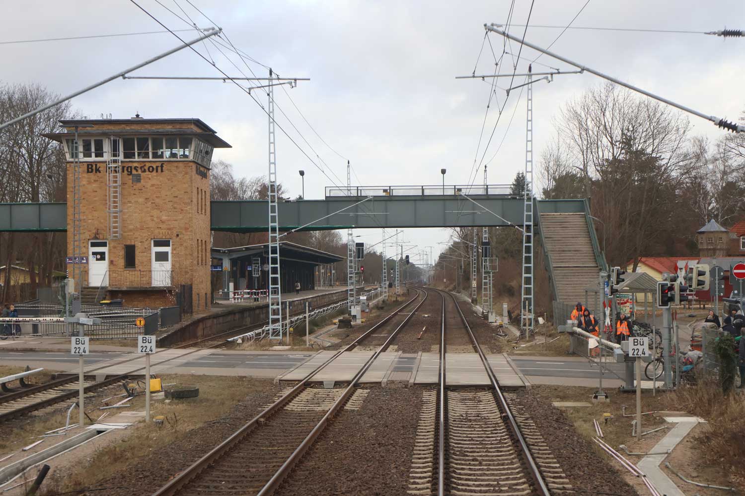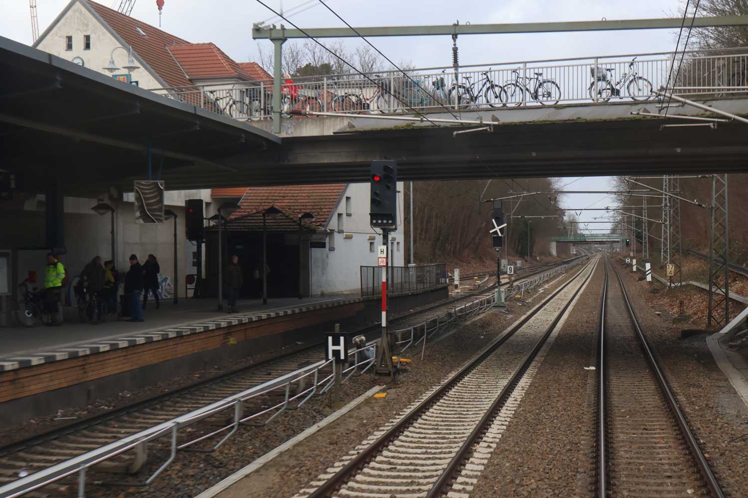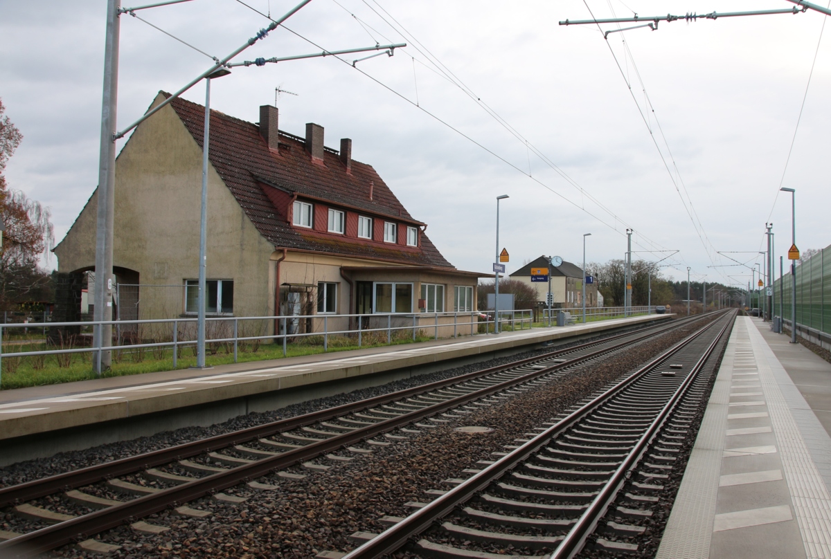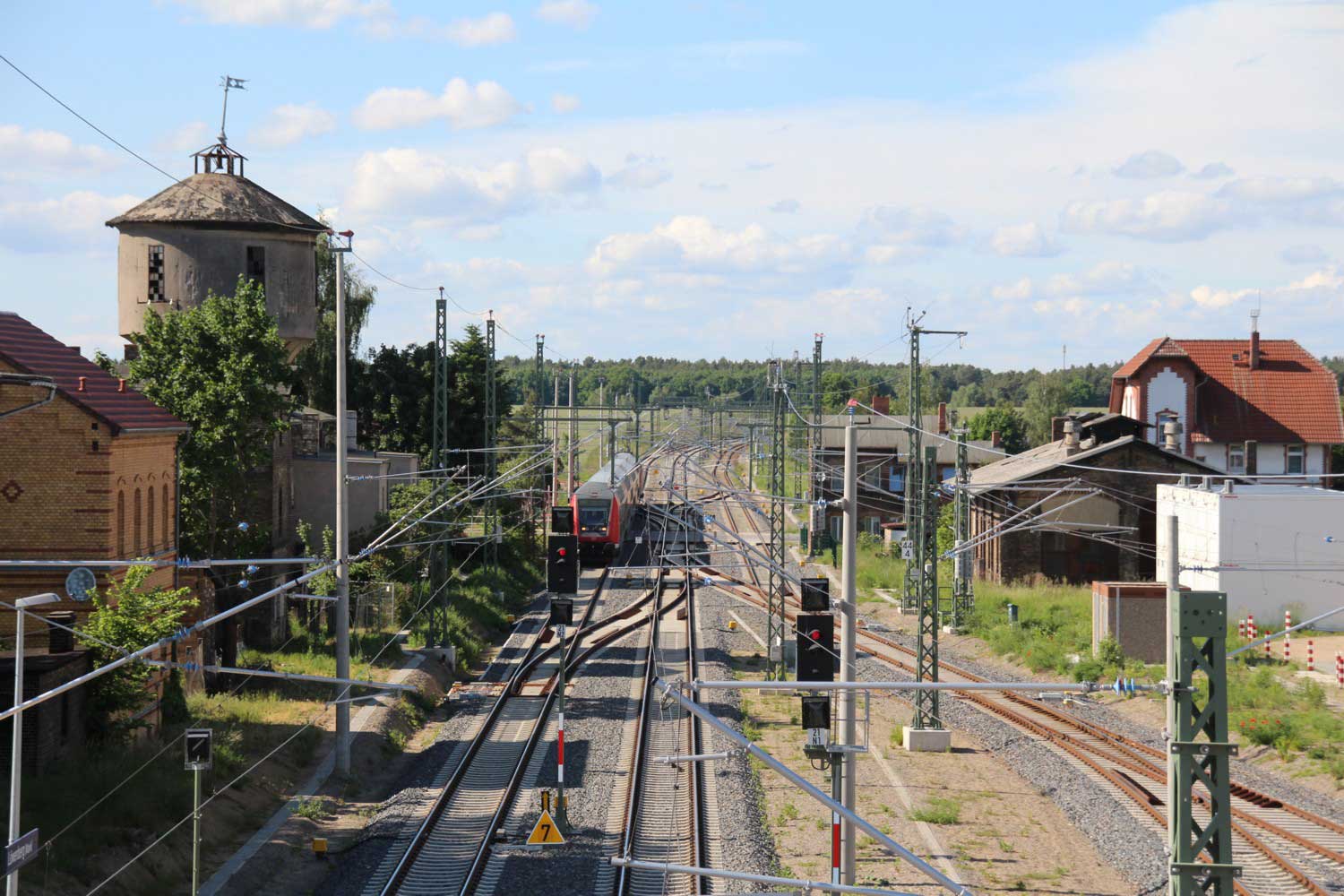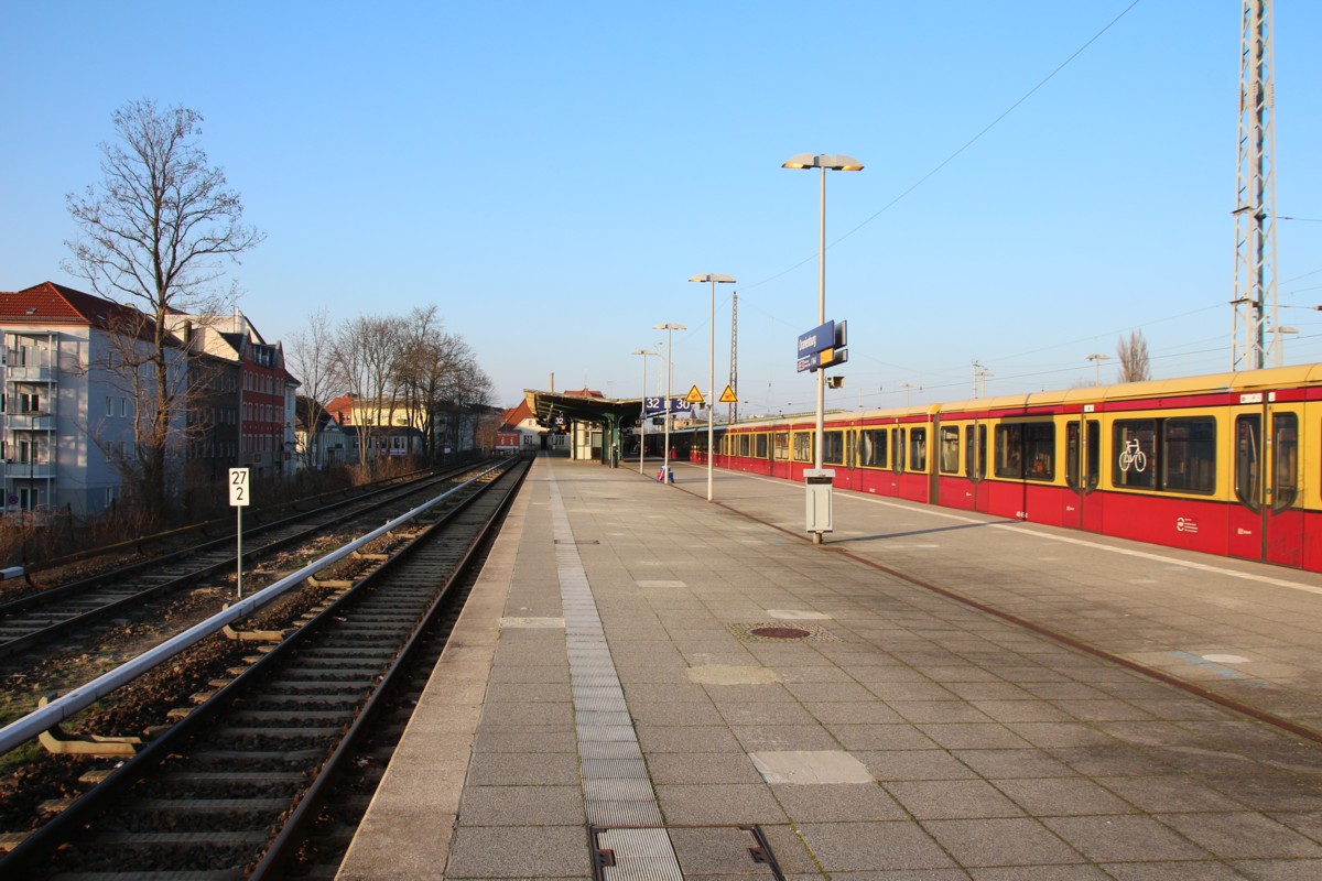 Im Hintergrund der Haltepunkt Sachsenhausen (Nordbahn),