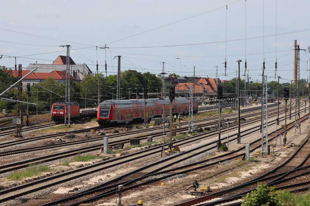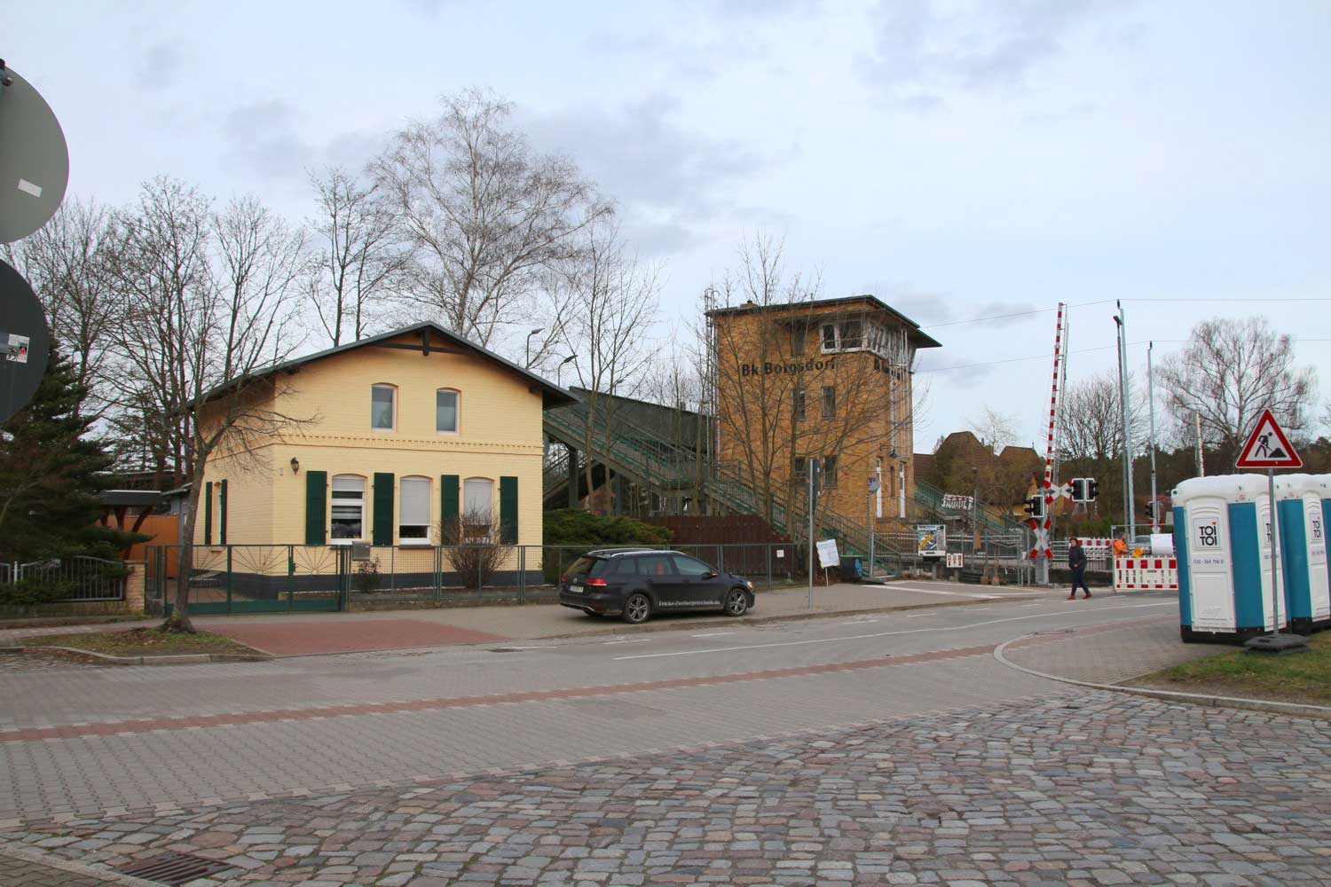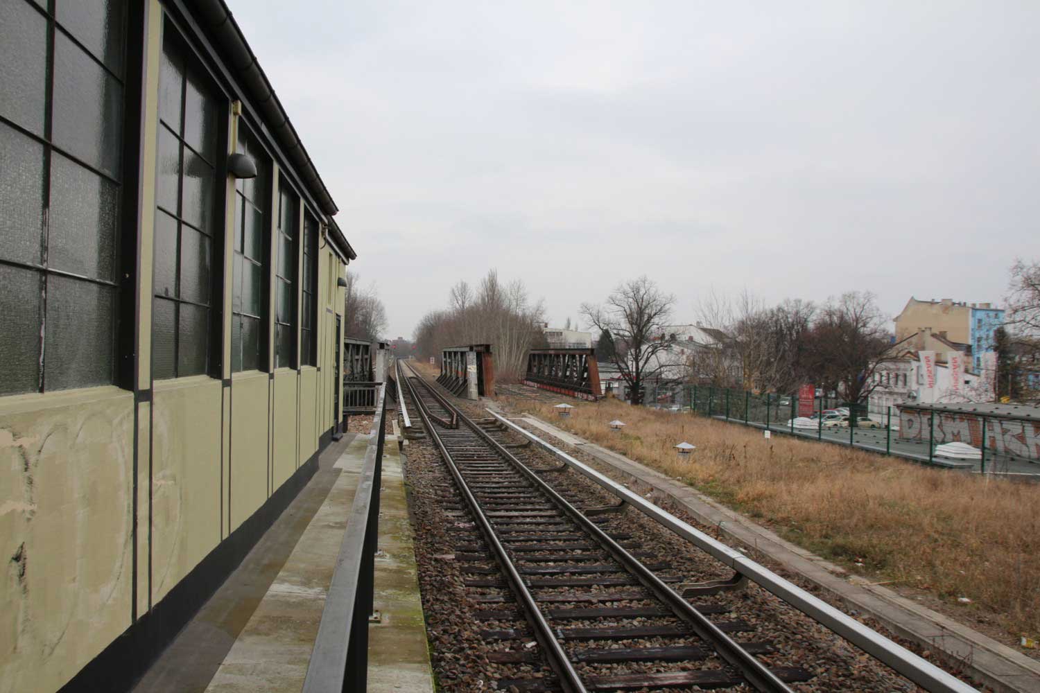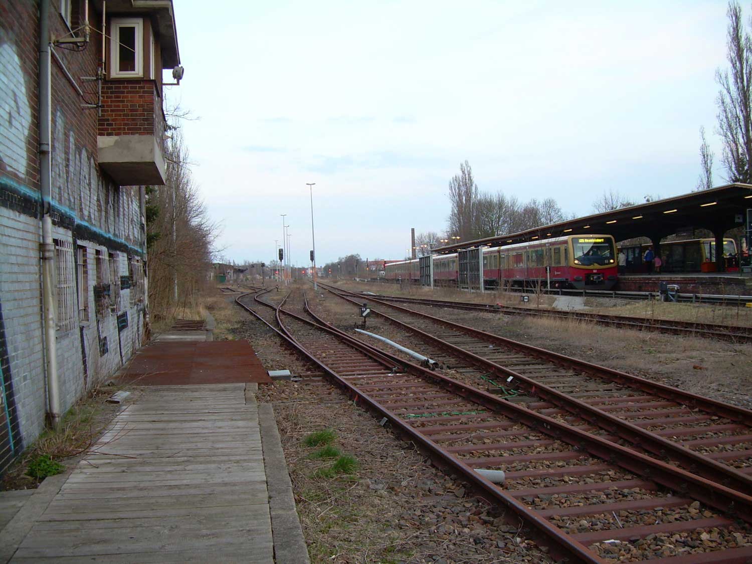 Im Hintergrund der Haltepunkt Sachsenhausen (Nordbahn),