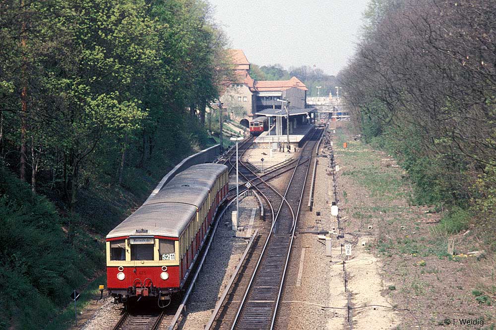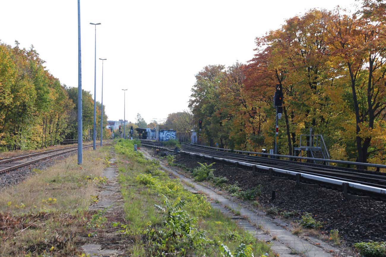 rechts das ehemalige Gleis des Streckenast Abzw Fichtengrund Ost - Fichtengrund Süd (bis 1964 bis nach Oranienburg)