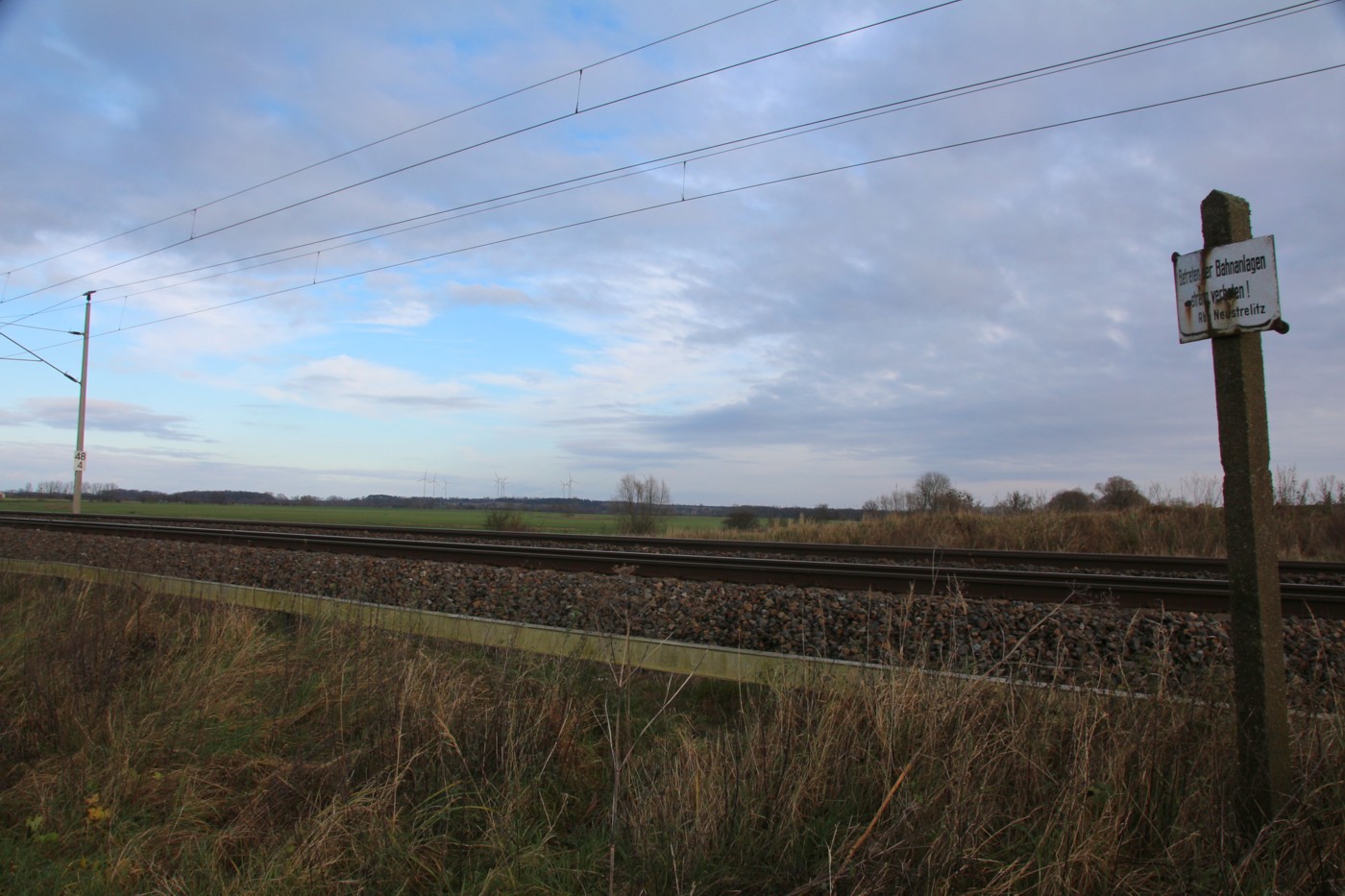 km 142,36 der Strecke Ludwigslust 0,0 - Parchim 25,90 - Karow (Meckl) 61,00 - Waren (Müritz) 95,79 - Neubrandenburg 142,36 | ||