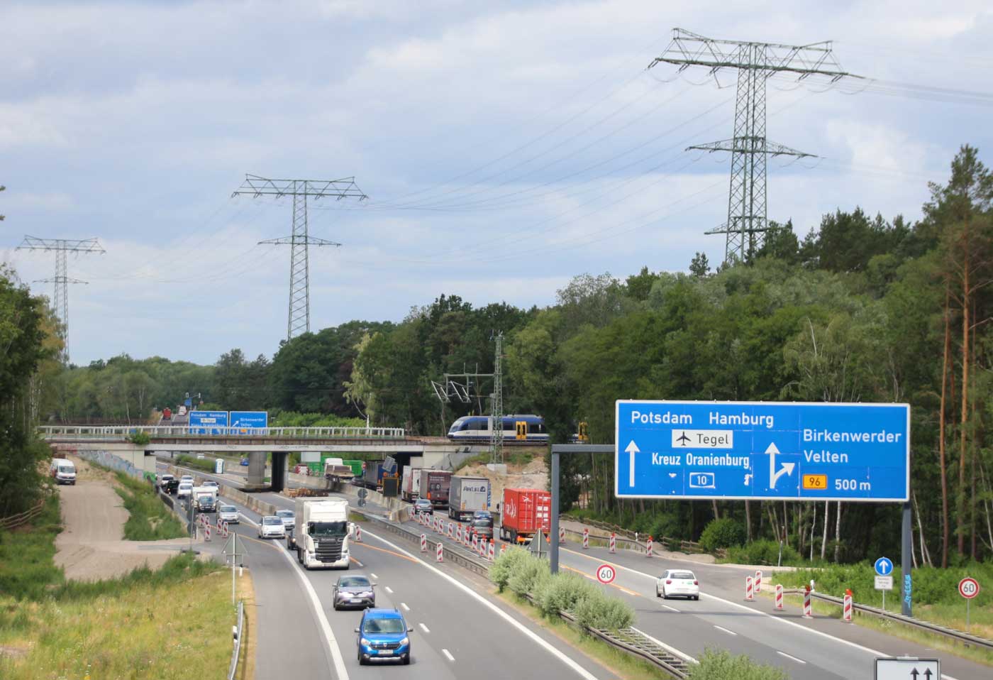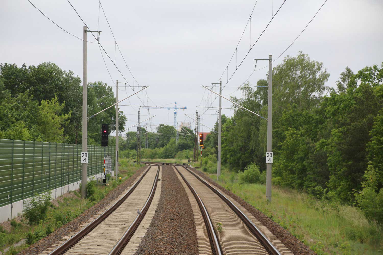 km 28,8 zwischen Oranienburg und Sachsenhausen (Nordbahn) - Blick Richtung Berlin