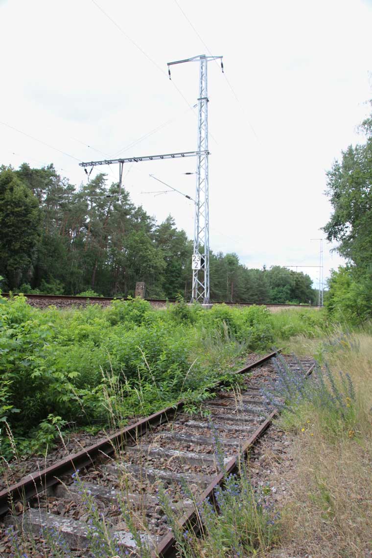 Im Vordergrund das ehemalige Gleis der Verbindung Wensickendorf - Sachsenhausen (Nordbahn)/Fichtengrund