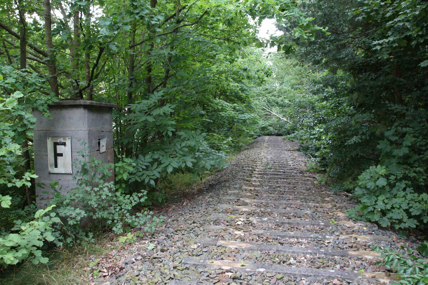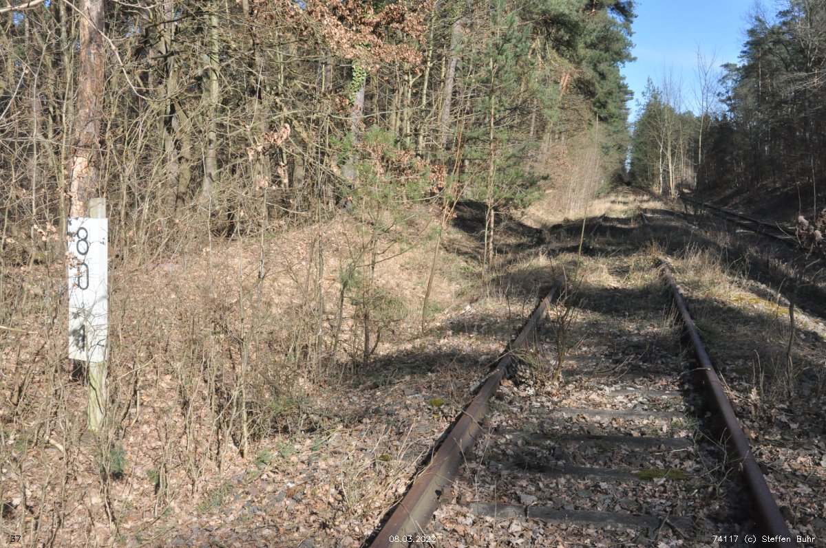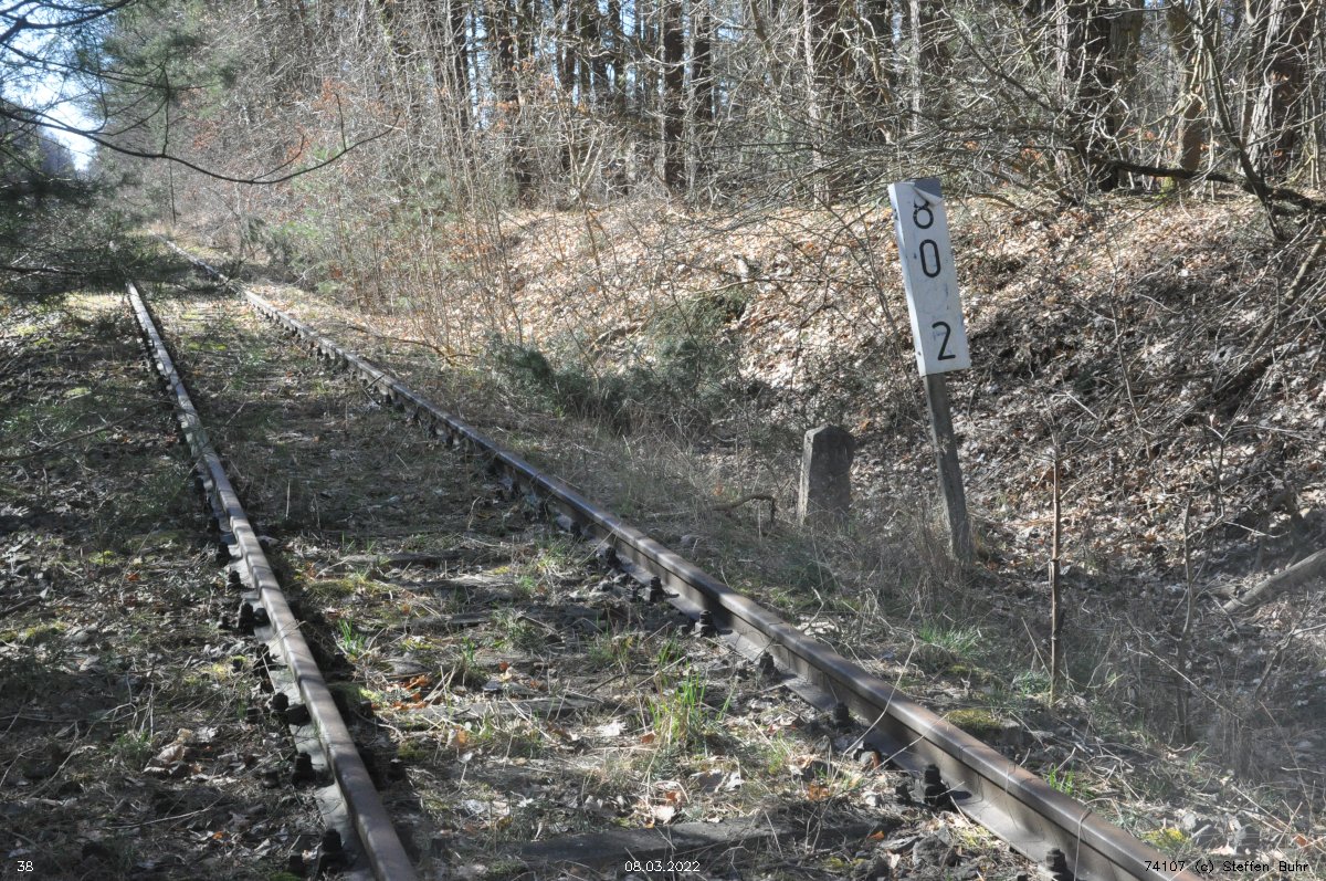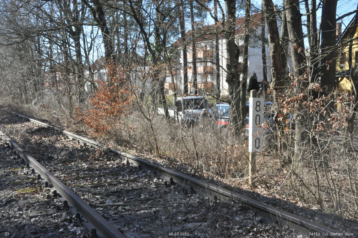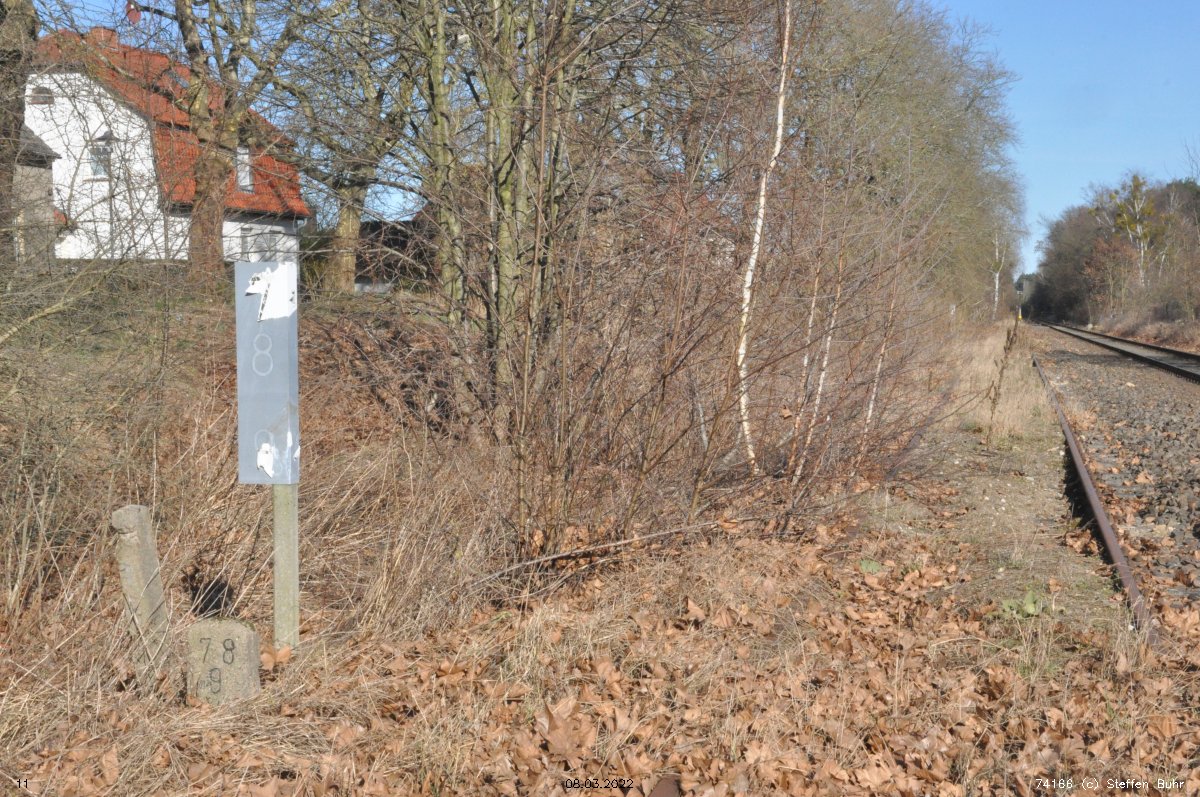 km 82,30 der abgehenden Strecke (Berlin Nordbf 0,0) - Fährkrug 82,30 - Fürstenwerder Reichsb 114,06 mit weiterlaufender Kilometrierung (Streckenverzweigung mit gemeinsamen Nullpunkt Berlin Nordbf)