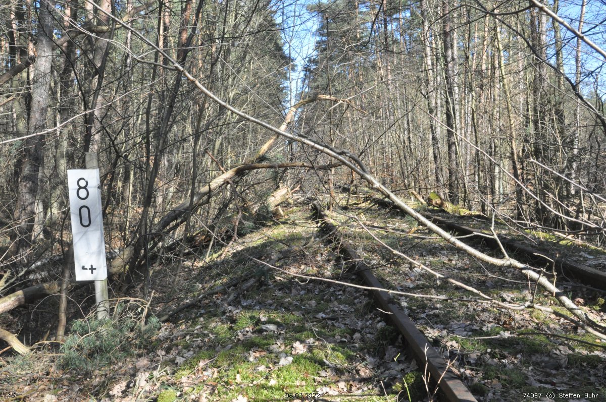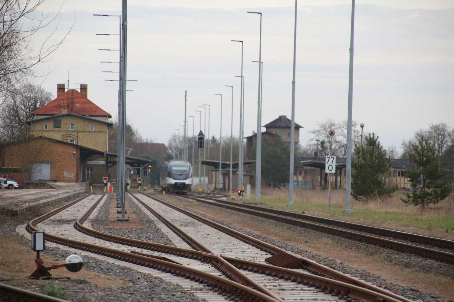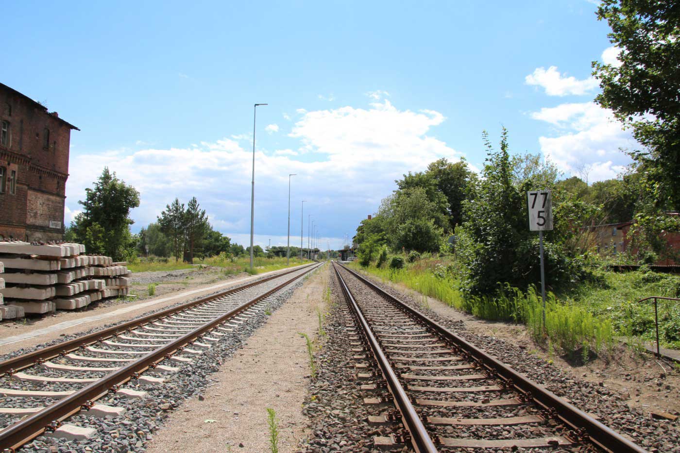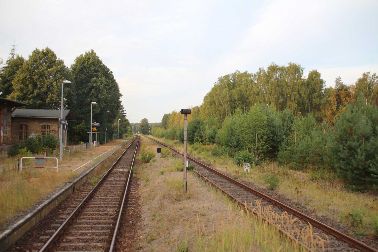 Templin 77,32 km 92,68 der Strecke [Berlin Nordbf (bis 1950 Berlin Stettiner Bf) -0,28] - Britz 50,02 - Templin 92,68 - Streckenunterbrechung - [Fürstenberg (Havel) 123,19] (6759)
