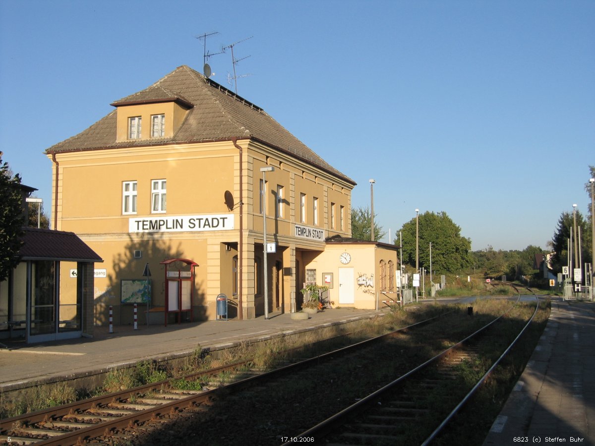 Templin Stadt 78,70 km 91,37 der Strecke [Berlin Nordbf (bis 1950 Berlin Stettiner Bf) -0,28] - Britz 50,02 - Templin 92,68 - Streckenunterbrechung - [Fürstenberg (Havel) 123,19] (6759)
