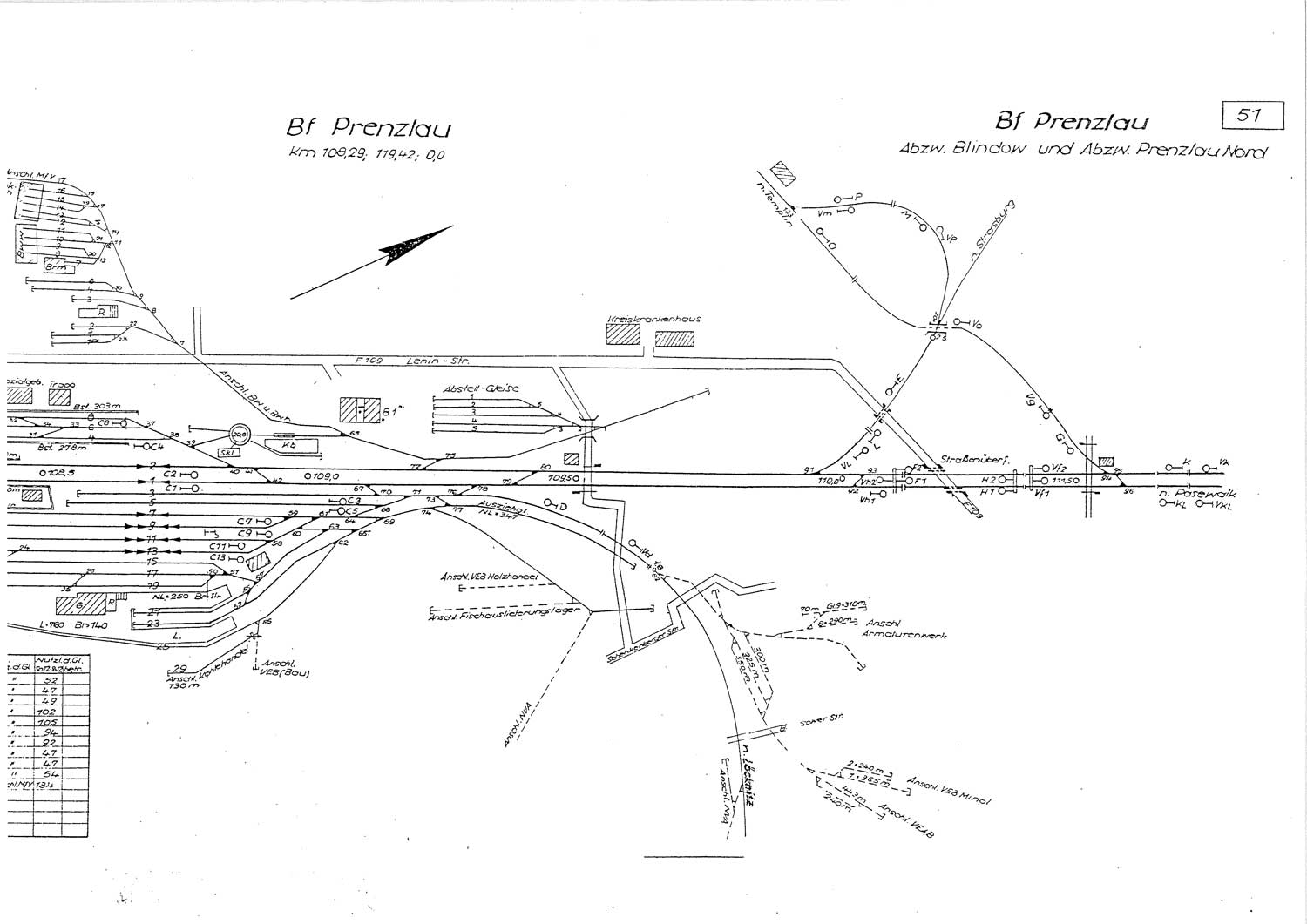 Abzw. Prenzlau Nord 116,83 km 2,51 der Strecke Prenzlau 0,0 - Dedelow 6,6 - Straßburg (Meckl) 26,06 mit Zweigstrecke (Prenzlau 0,0) - Dedelow 6,6 - Fürstenwerder 22,39