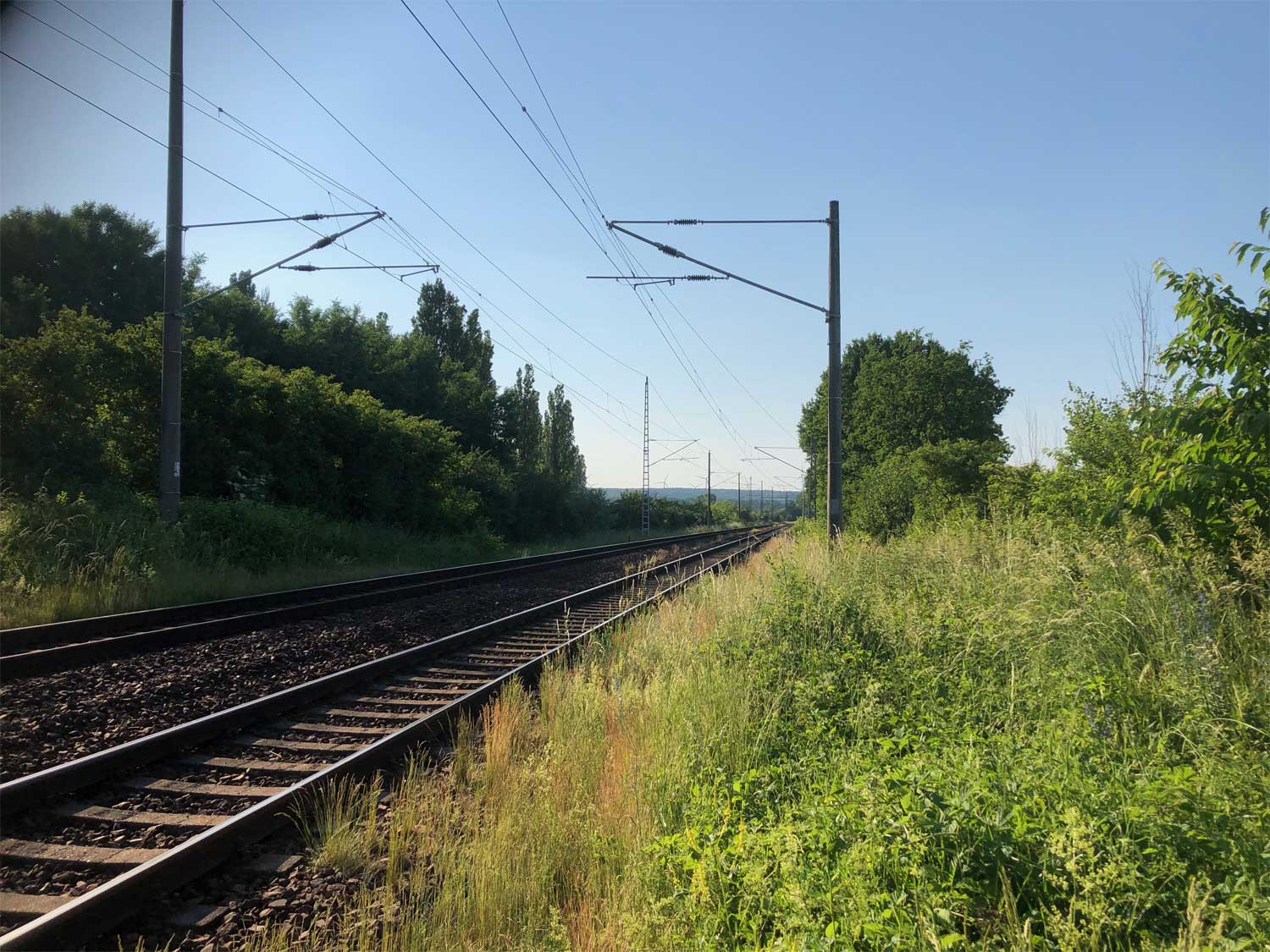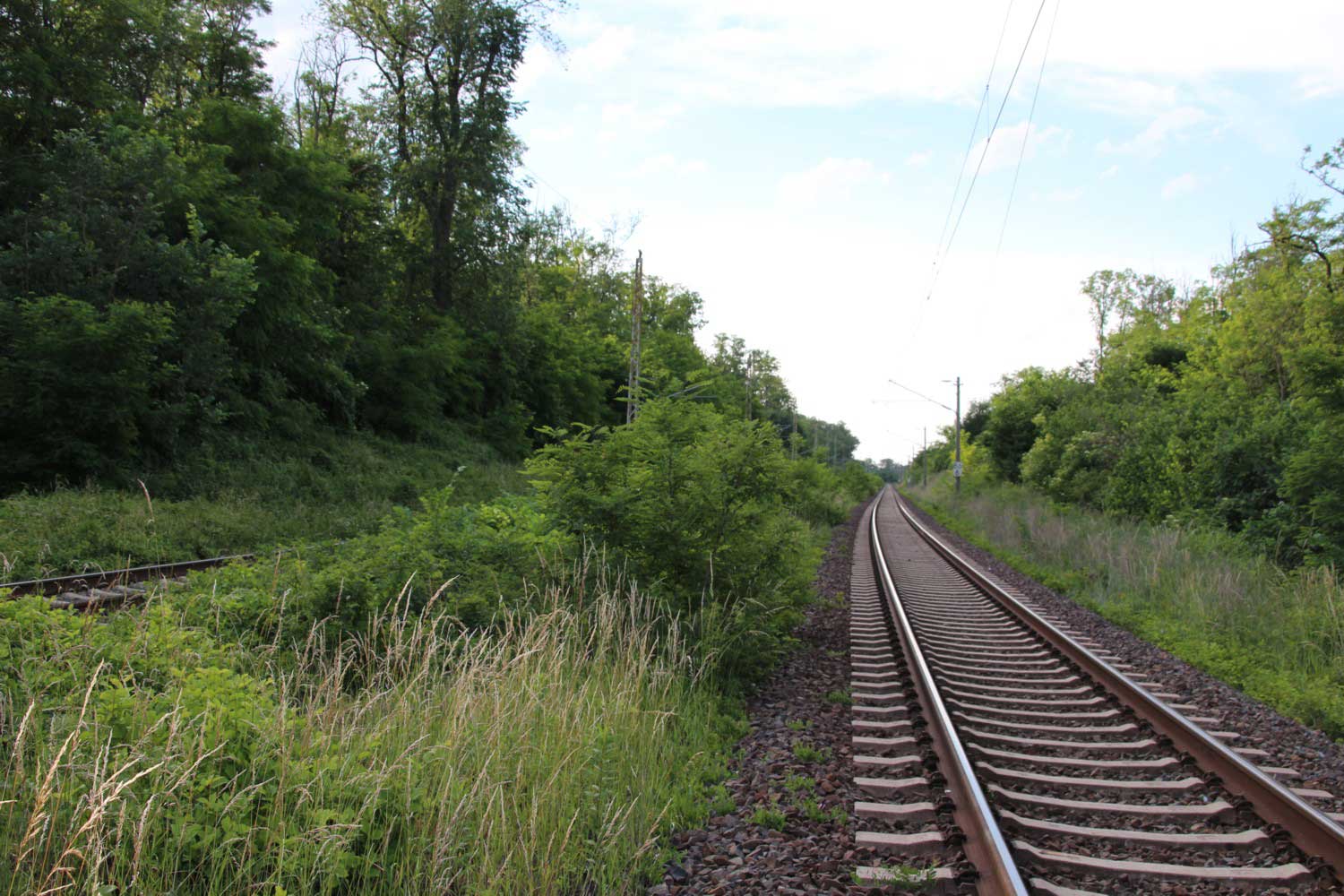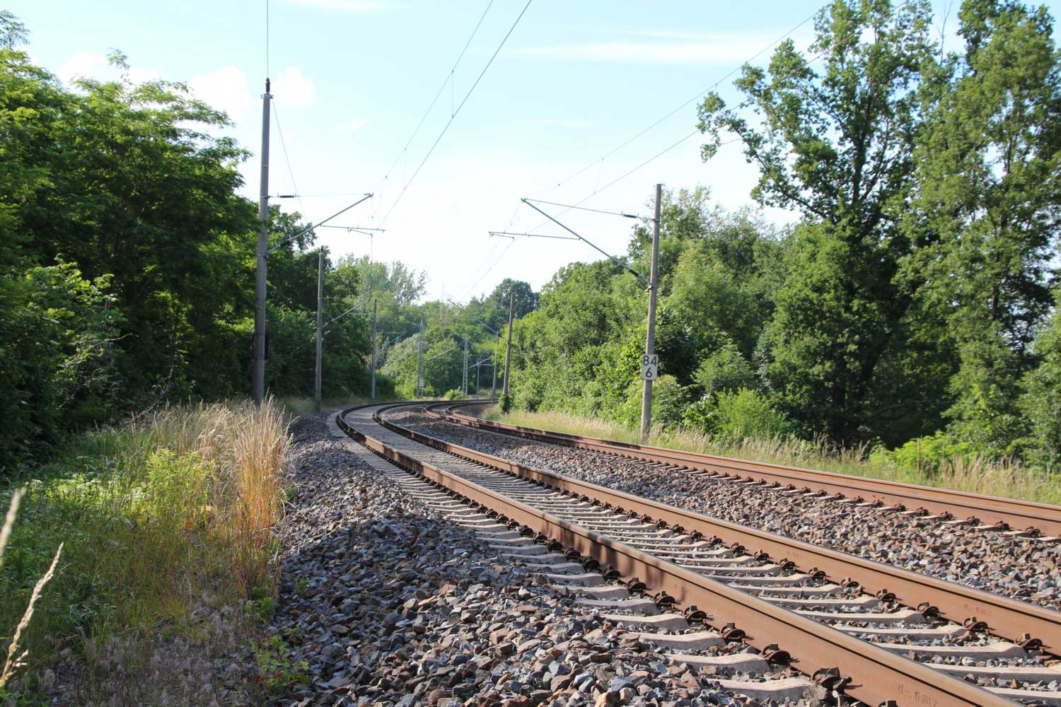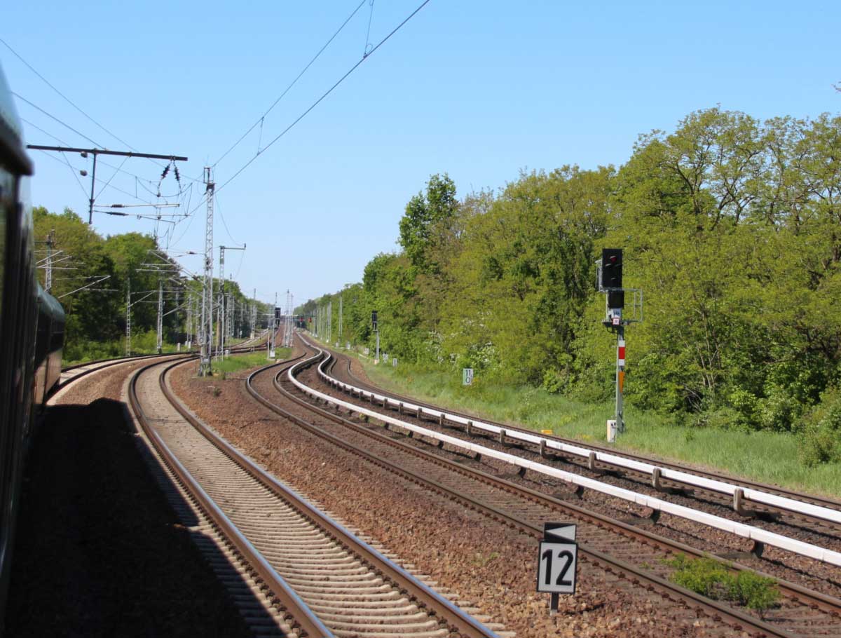 Ganz rechts im Bild ist noch das Schienenprofil der Verbindungskurve