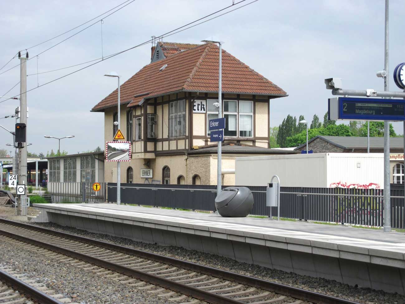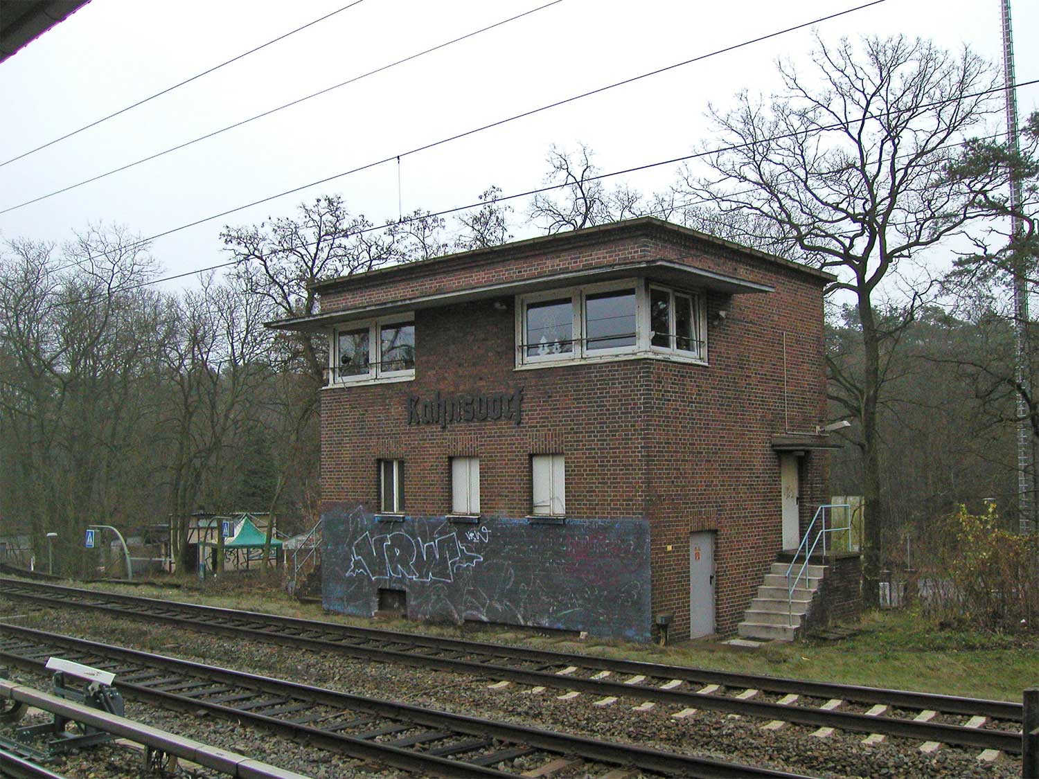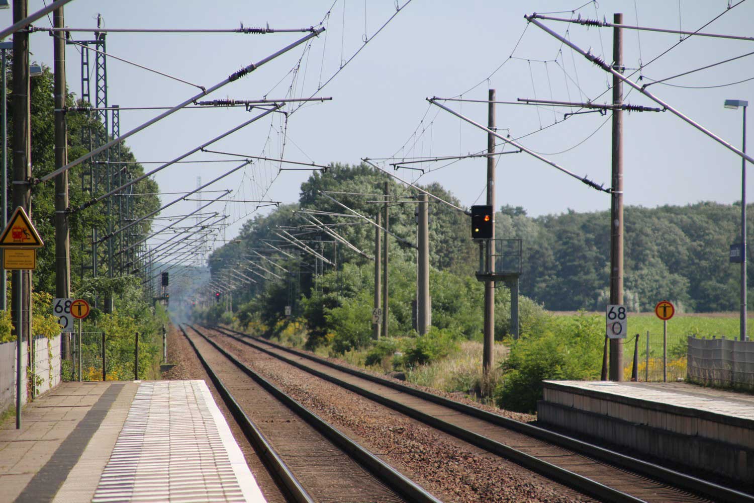 km 152,85 der Strecke Großenhain Cottb. Bf 0,0 - Senftenberg 45,29 - Cottbus 79,67 - Frankfurt (Oder) Pbf 152,85 (Personenzuggleise)/152,79 (Güterzuggleise) | ||
