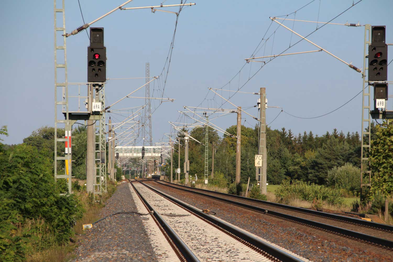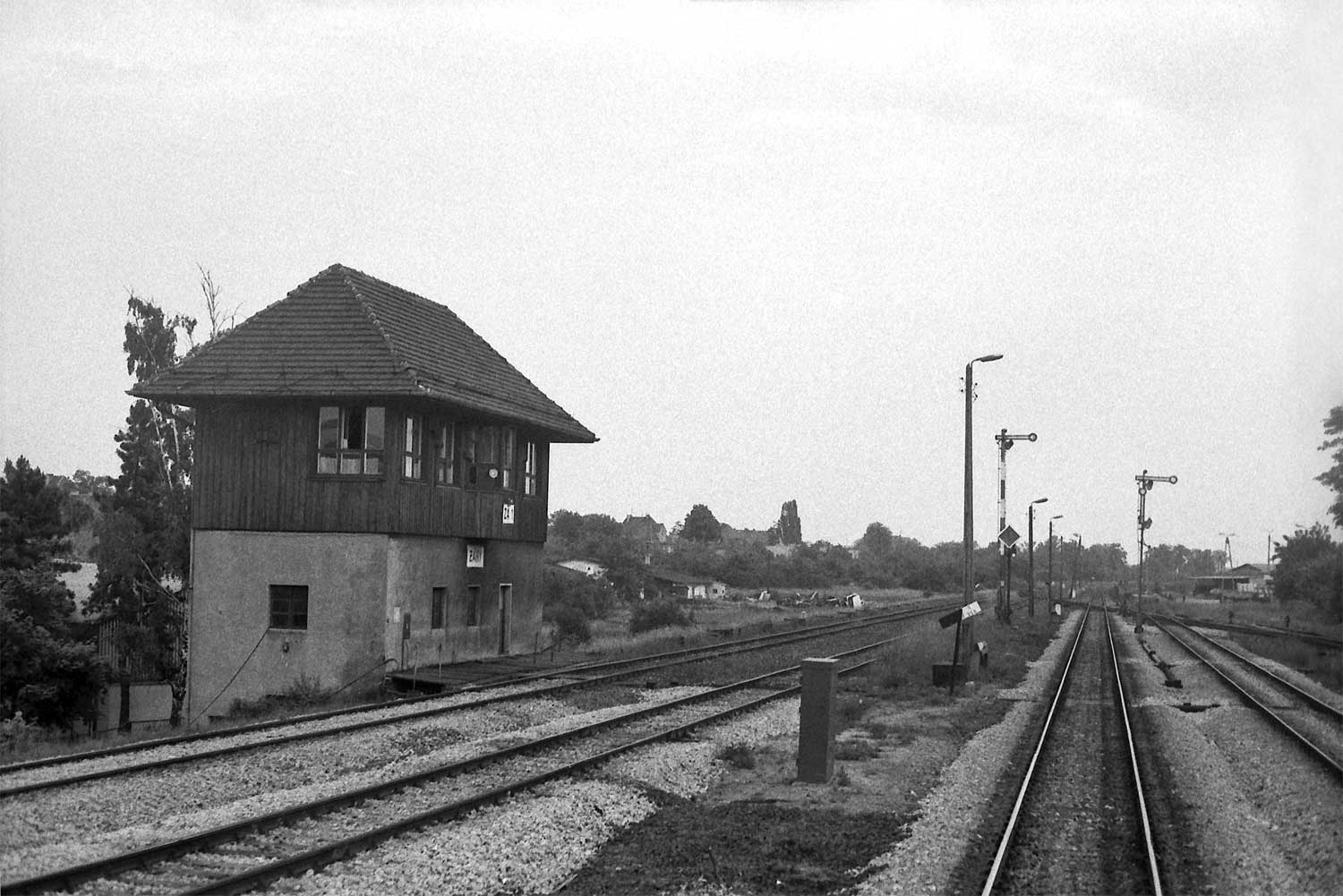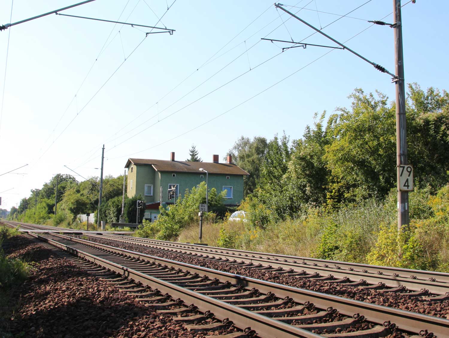 km 152,79 der Strecke Großenhain Cottb. Bf 0,0 - Senftenberg 45,29 - Cottbus 79,67 - Frankfurt (Oder) Pbf 152,85 (Personenzuggleise)/152,79 (Güterzuggleise) | ||