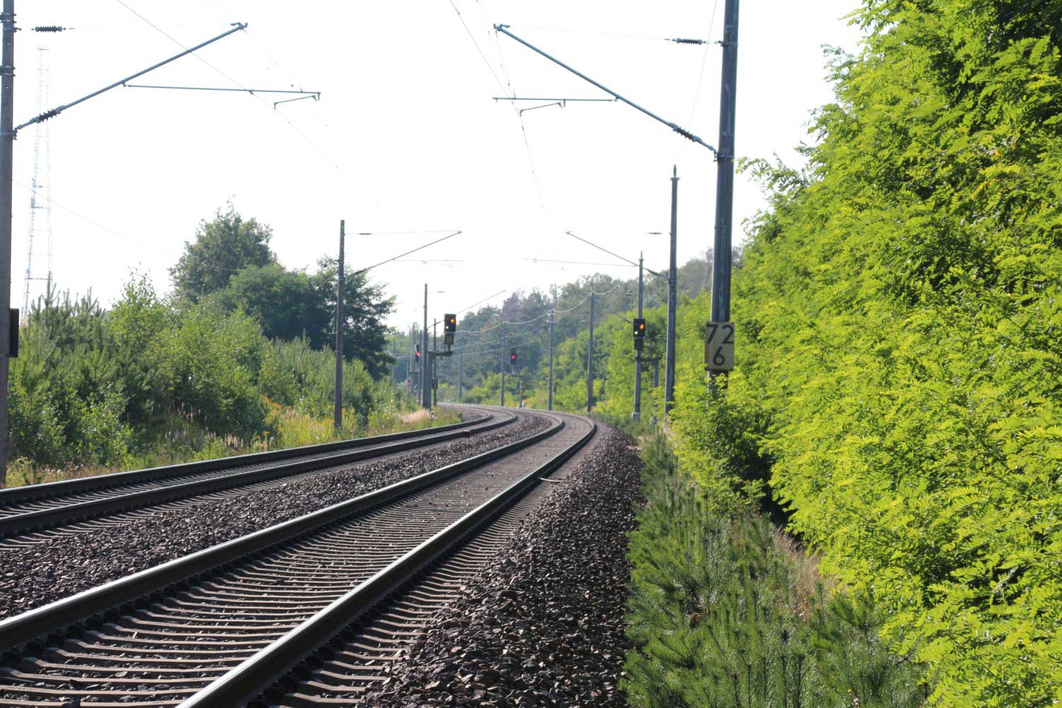 km 72,5 PKP/km 213,3 DR (vor 1945) zwischen Ruszów (Rauscha) und Węgliniec (Kohlfurt)