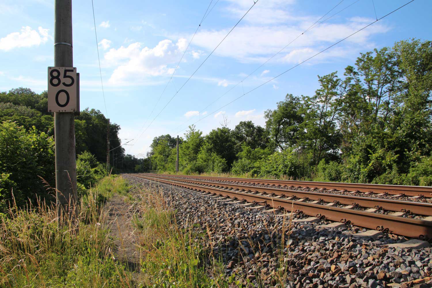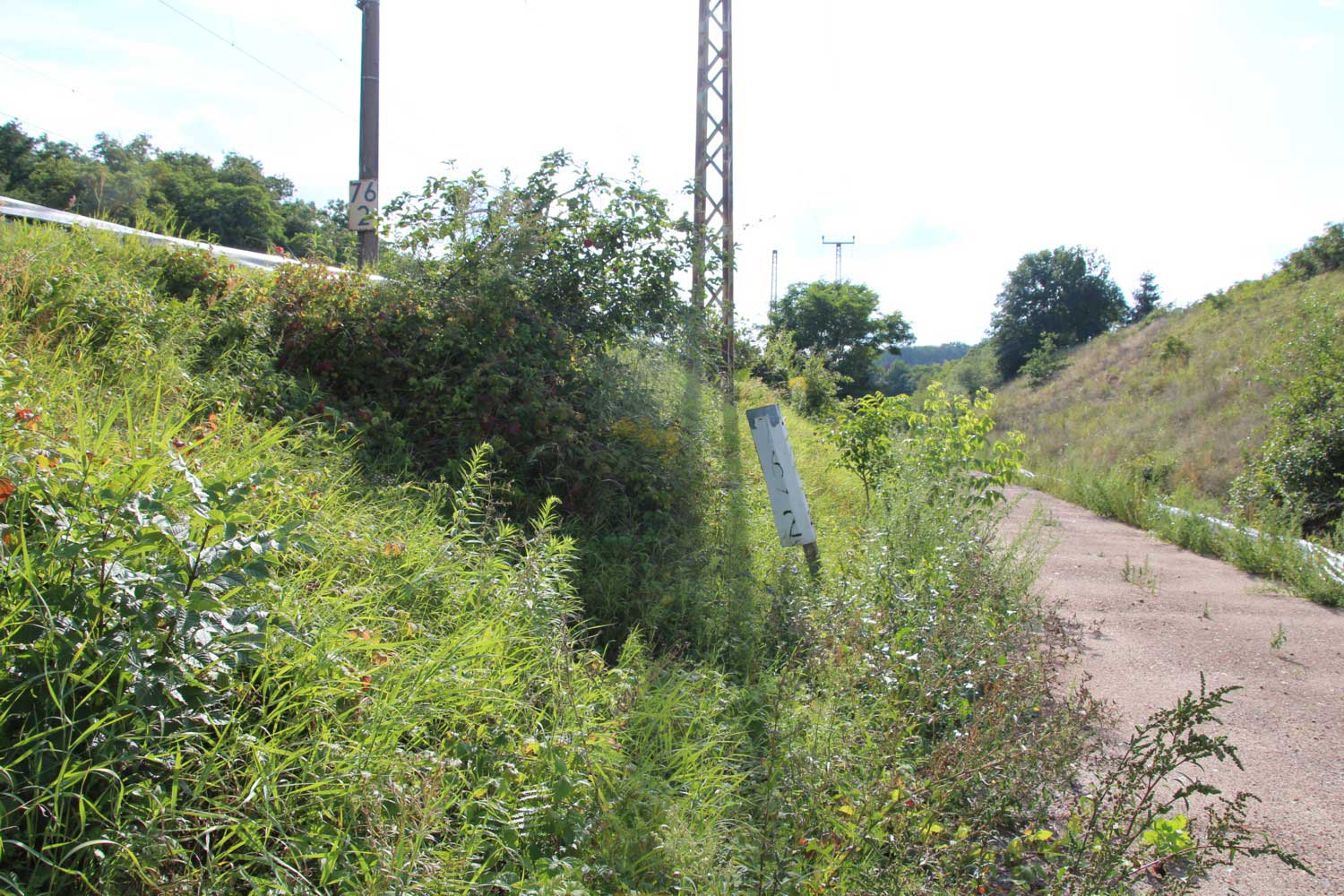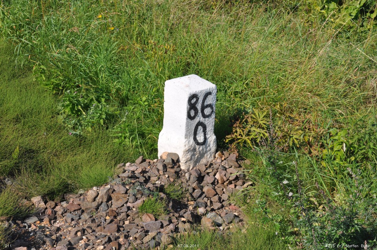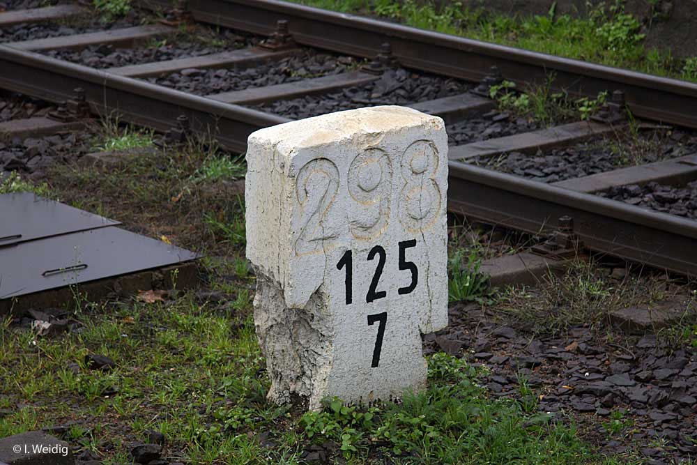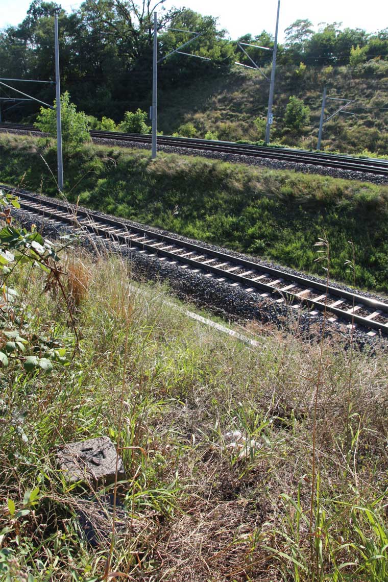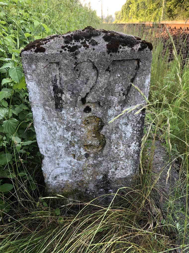 Links hinter dem Stein km 126,2 befindet sich ein weiterer Stein. Er gehört zur Strecke