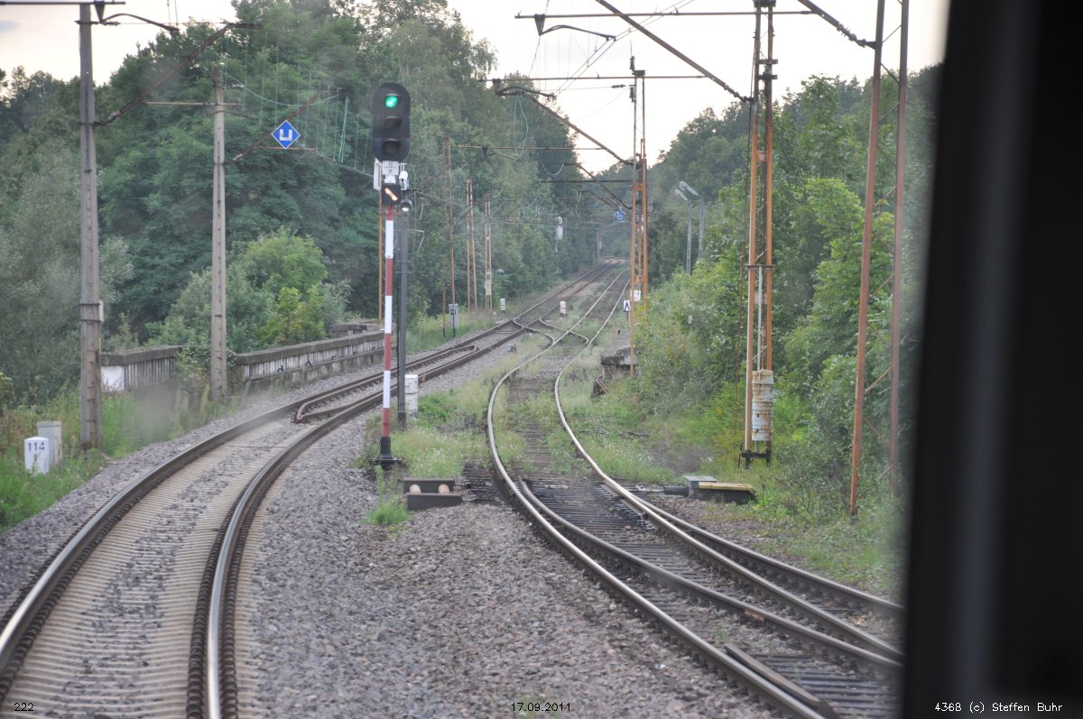 ► | km 3,84 der abgehenden Strecke (Berlin Schlesischer Bf 0,10) - Berlin-Rummelsburg, Stw. VnK 3,84 - Kaulsdorf 11,74 (VnK-Strecke: Verbindungsstrecke nach Kaulsdorf) | |