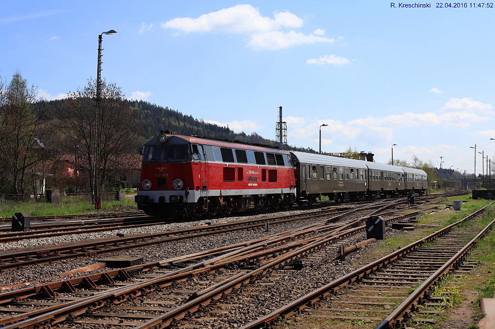 SP32-149, Personenzug: Wałbrzych Gł. (Waldenburg-Dittersbach) - Kłodzko Gł.(Glatz Hbf), Świerki Dolne (Niederkönigswalde), 25.04.2003
